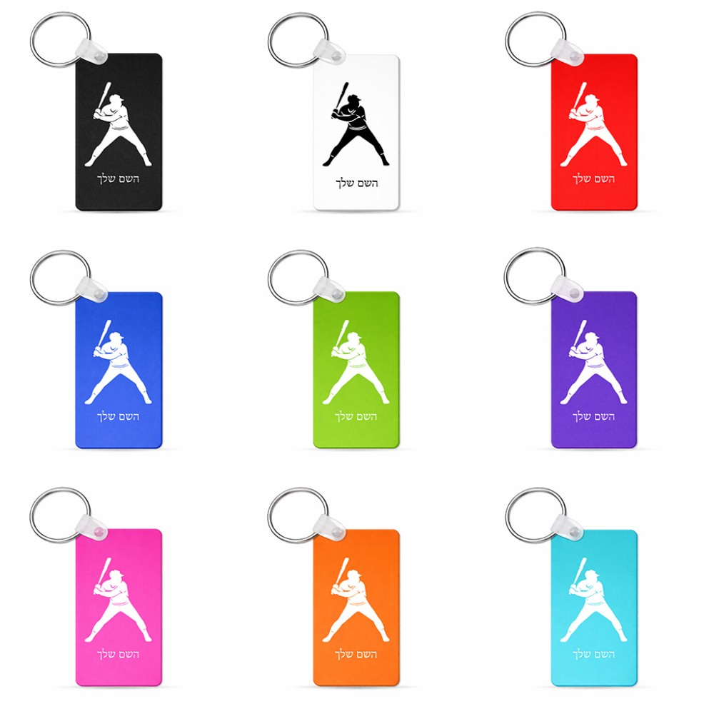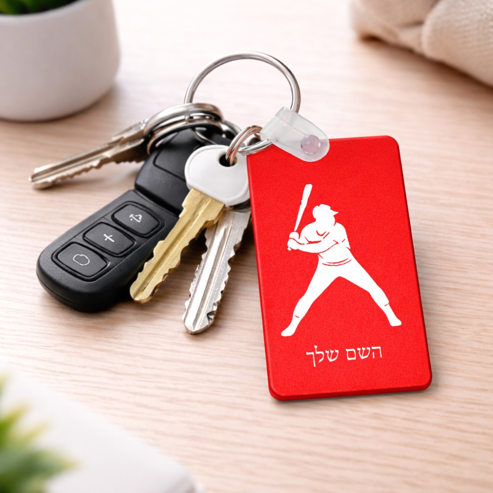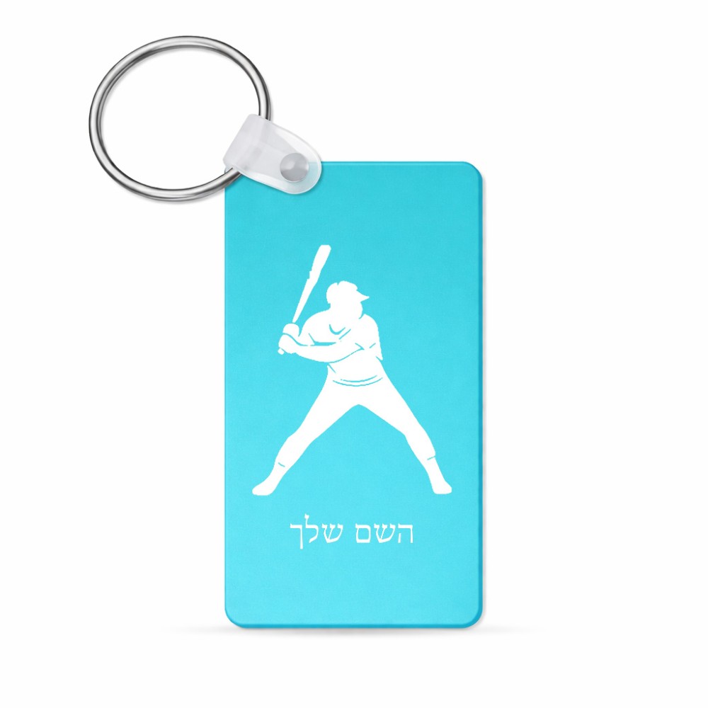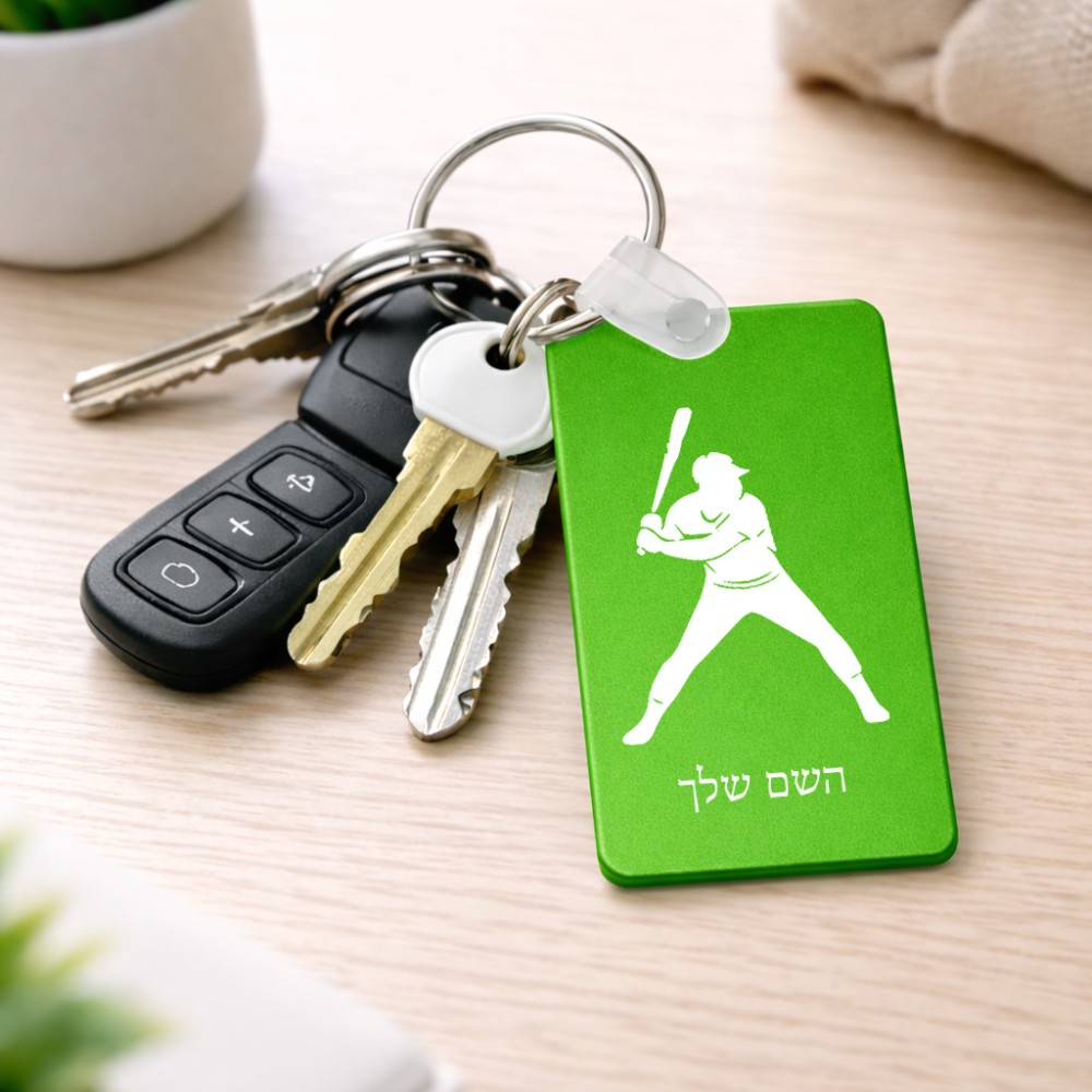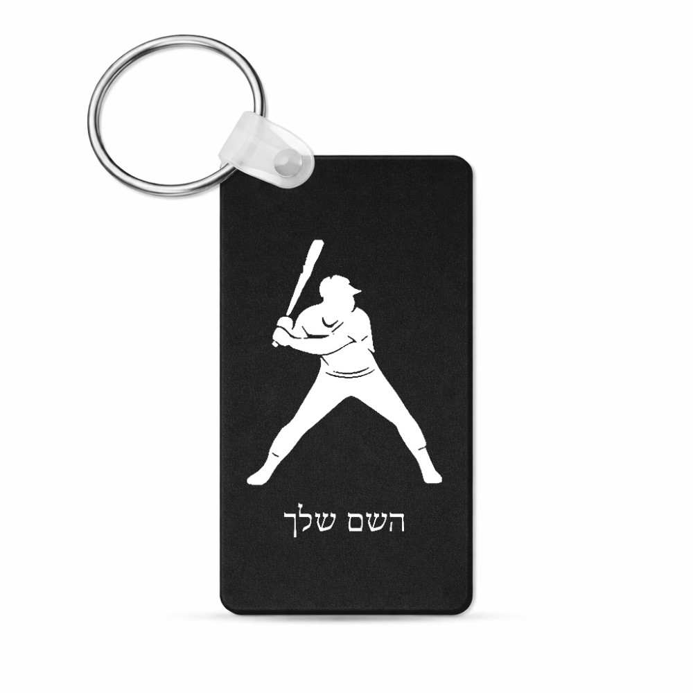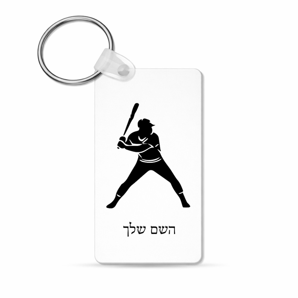מחזיק מפתחות בצורת מלבן בעיצוב אישי עם השם שלך בעיצוב שחקן בייסבול גודל המחזיק 6 × 4 ס"מ. את השם המבוקש ניתן לציין בהזמנה, אם לא צויין אנחנו ניצור קשר לבירור.