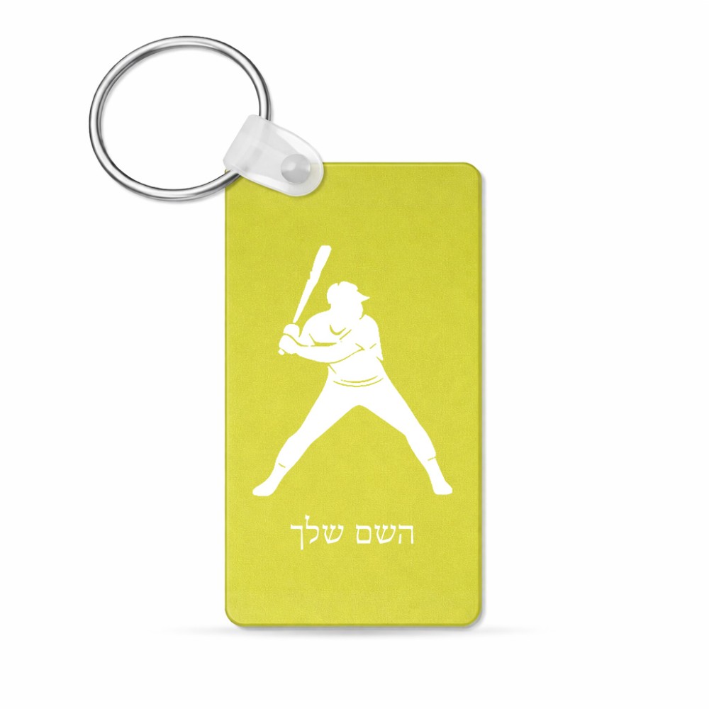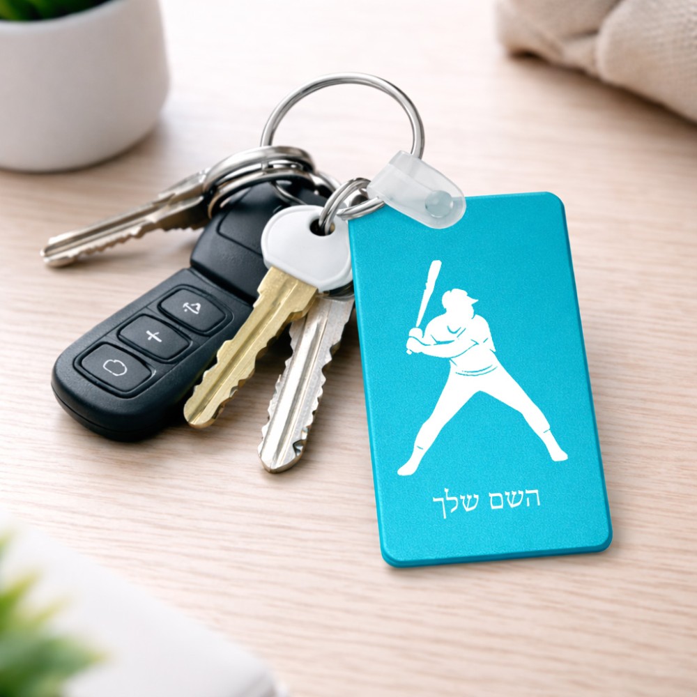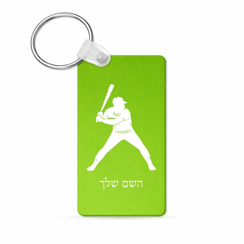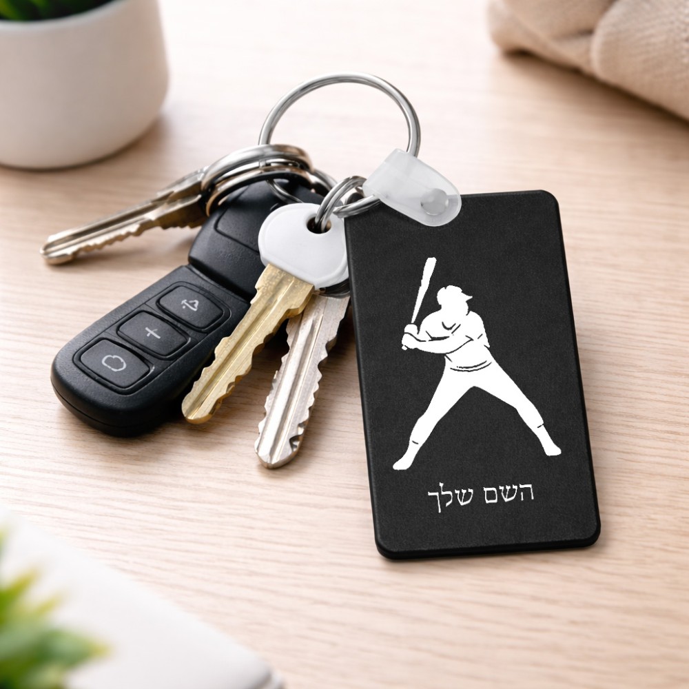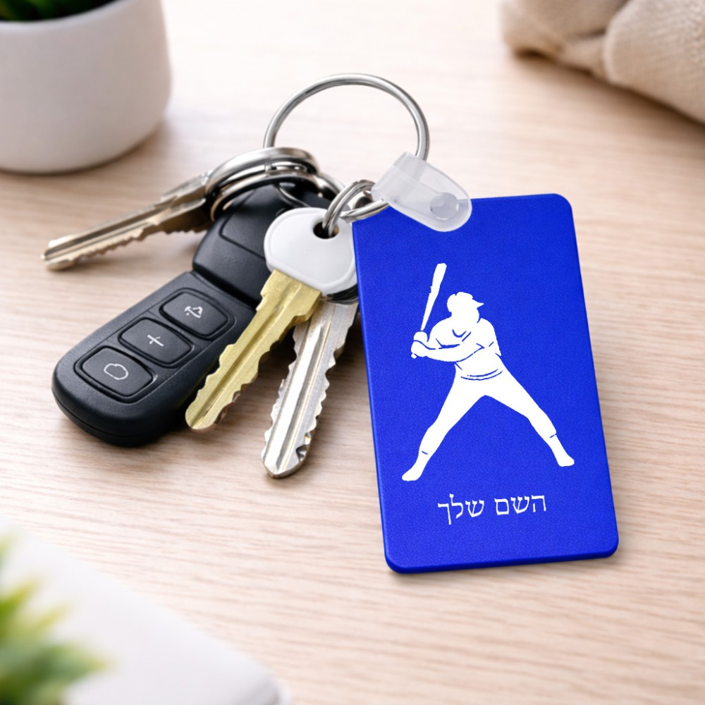 מחזיק מפתחות בצורת מלבן בעיצוב אישי עם השם שלך בעיצוב שחקן בייסבול גודל המחזיק 6 × 4 ס"מ. את השם המבוקש ניתן לציין בהזמנה, אם לא צויין אנחנו ניצור קשר לבירור.