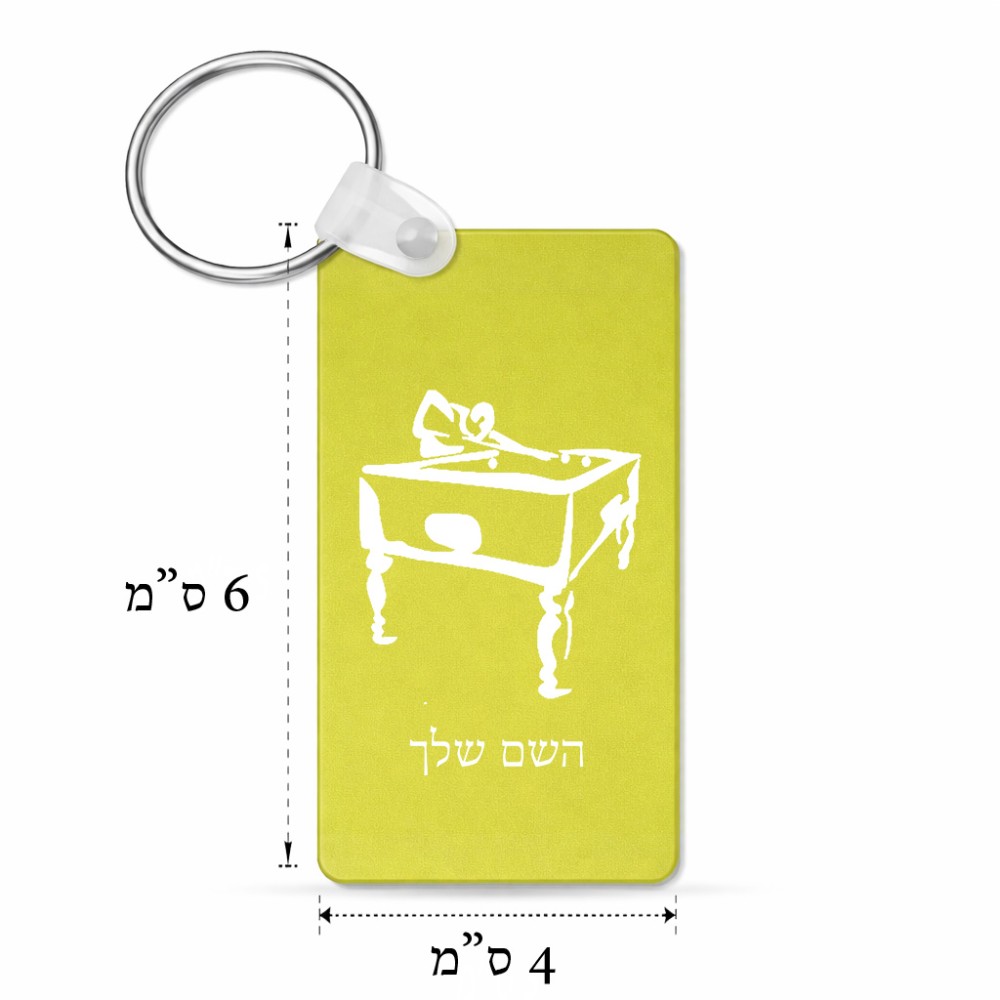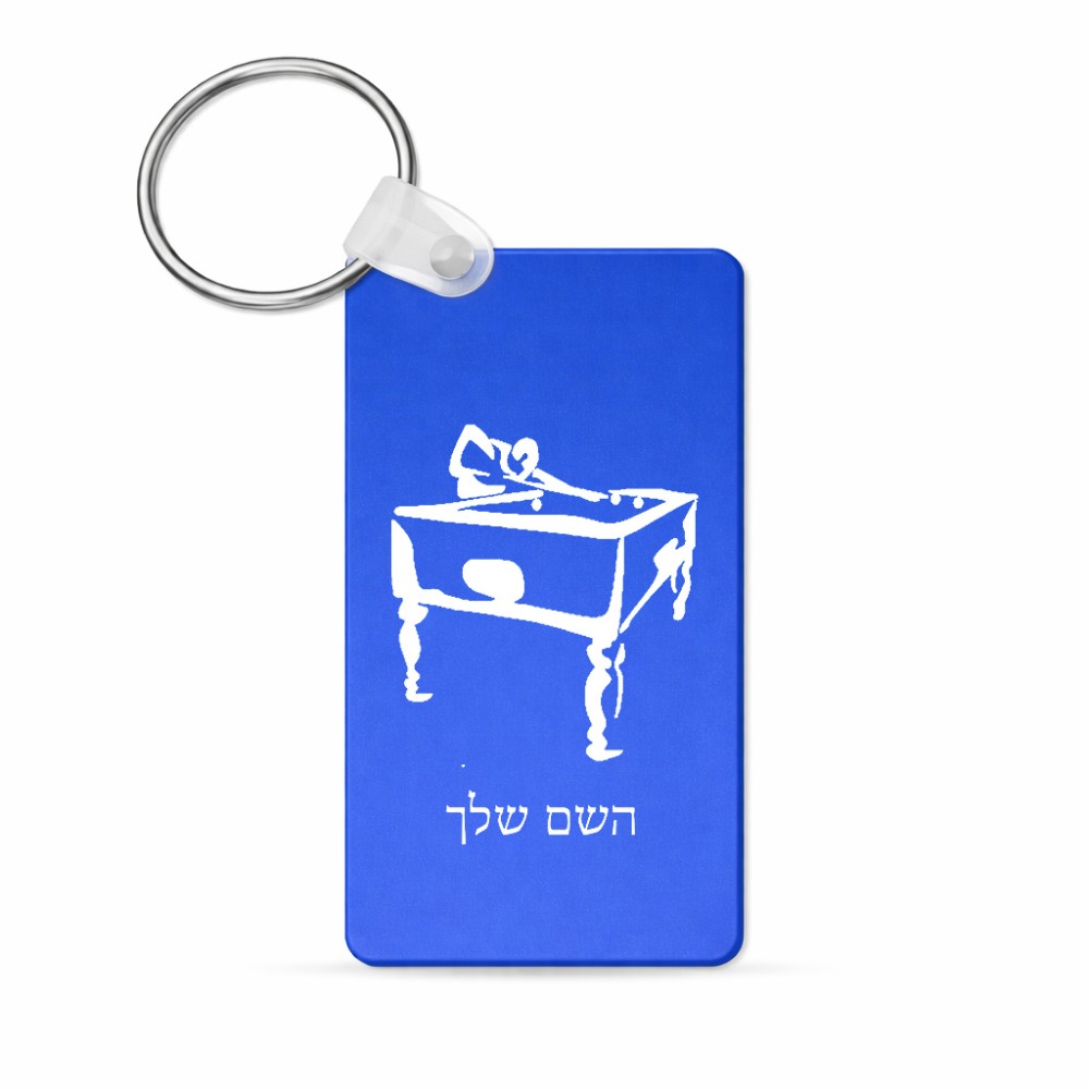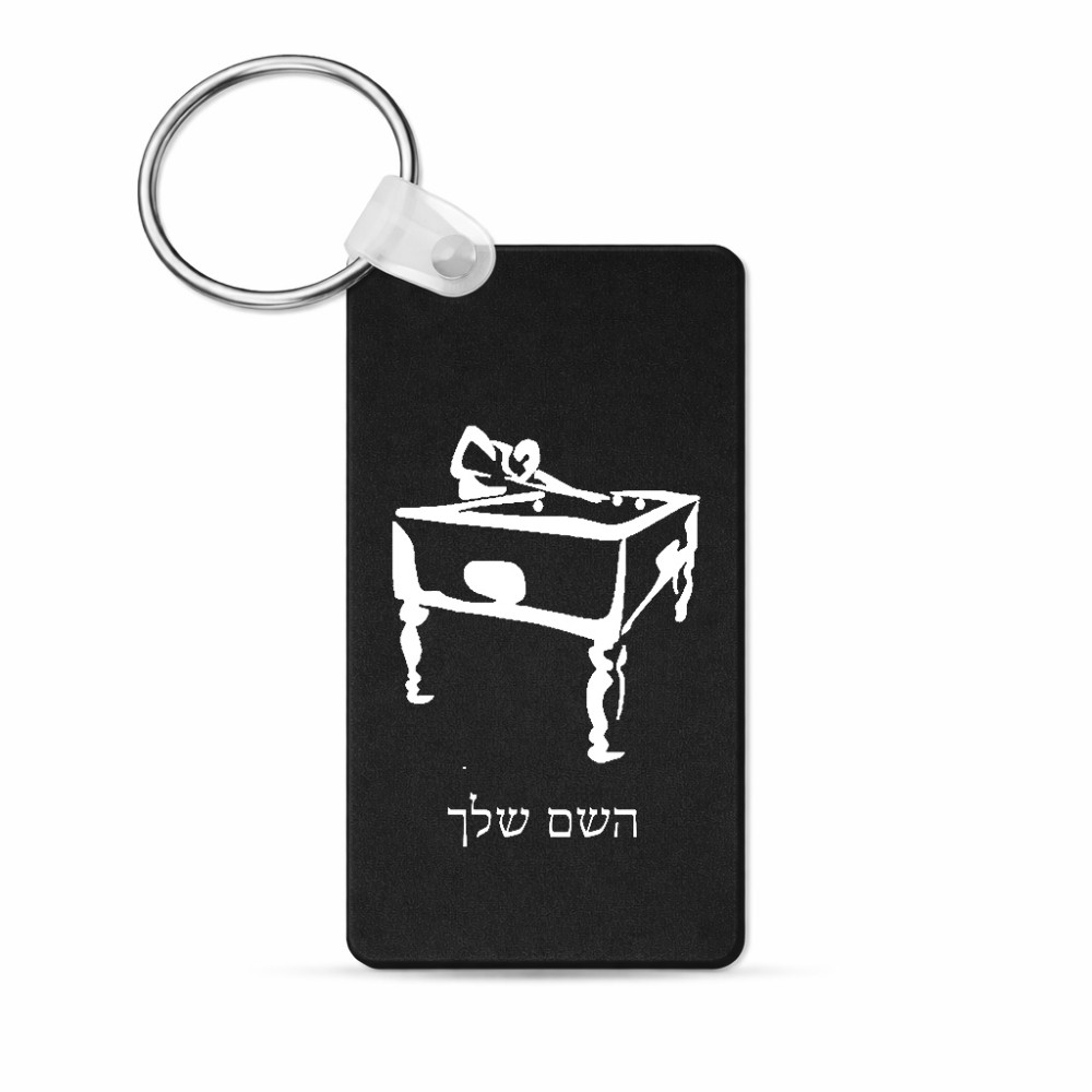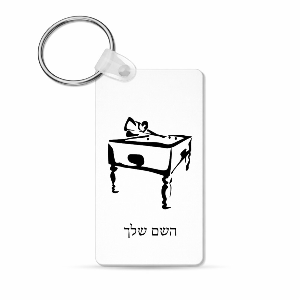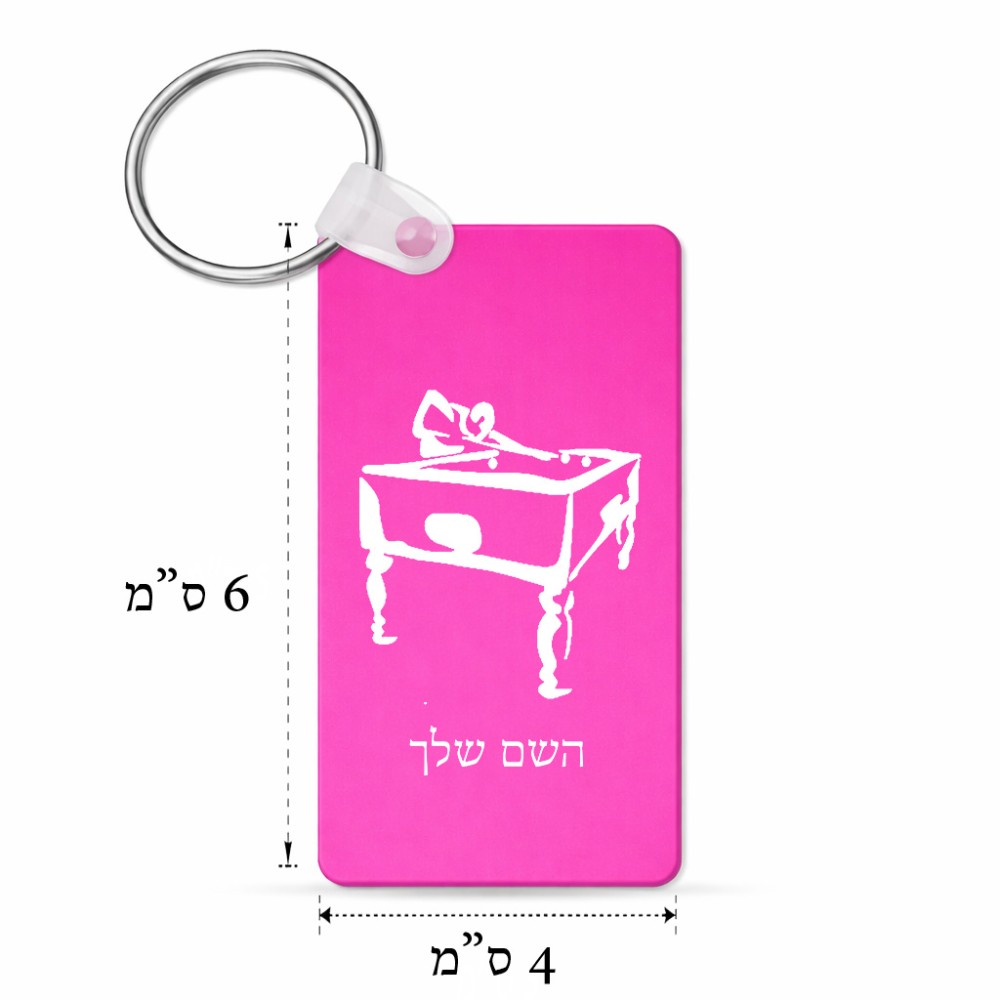 מחזיק מפתחות בצורת מלבן בעיצוב אישי עם השם שלך בעיצוב שחקן ביליארד גודל המחזיק 6 × 4 ס"מ. את השם המבוקש ניתן לציין בהזמנה, אם לא צויין אנחנו ניצור קשר לבירור.