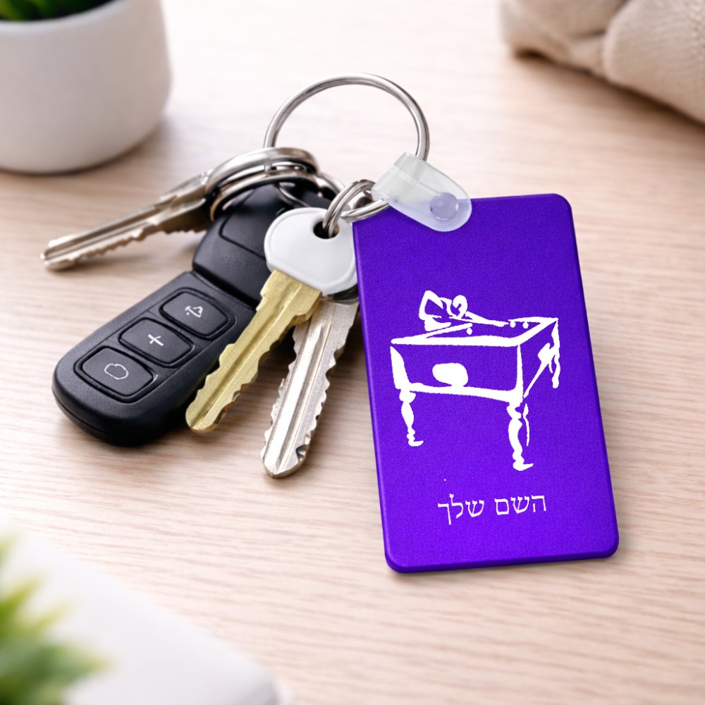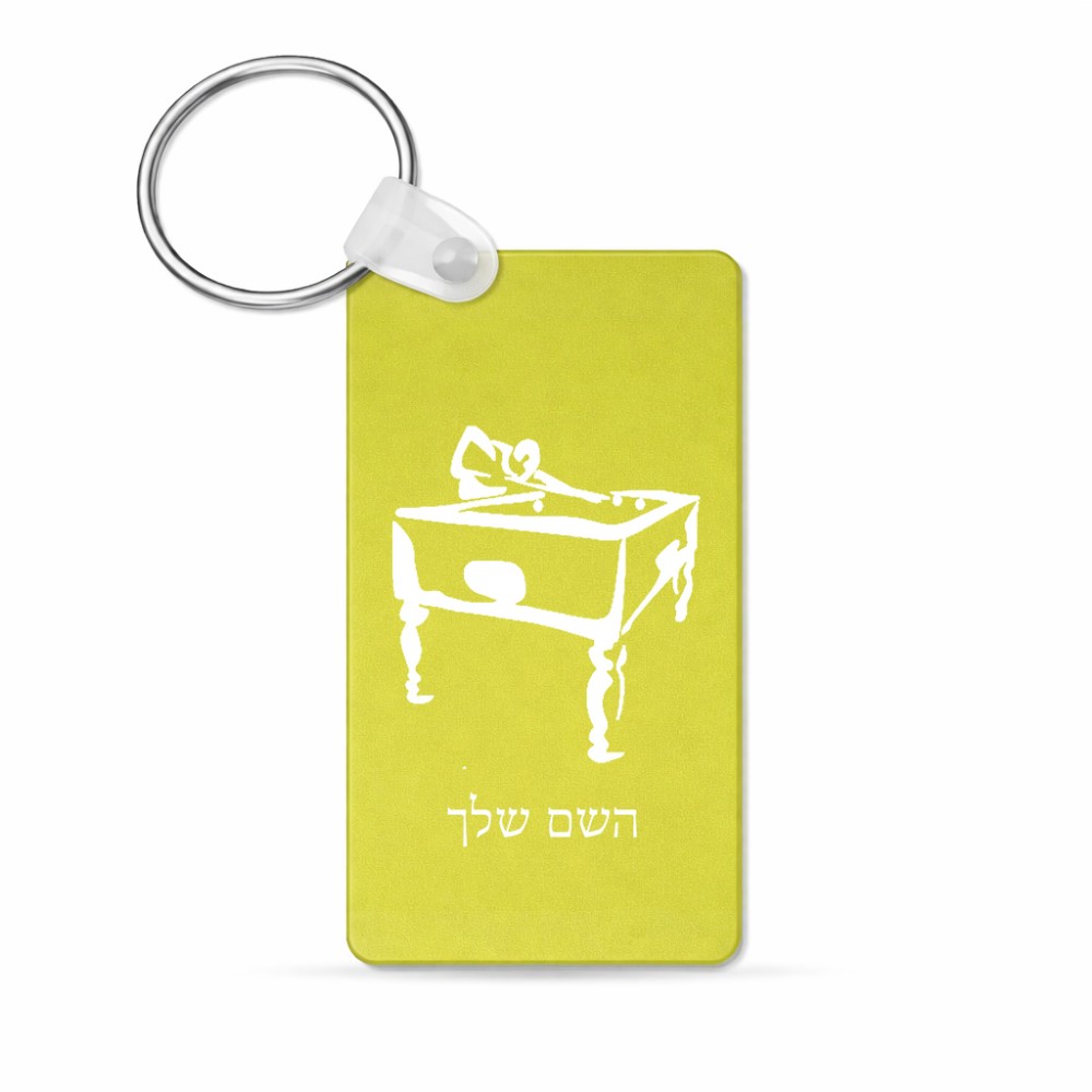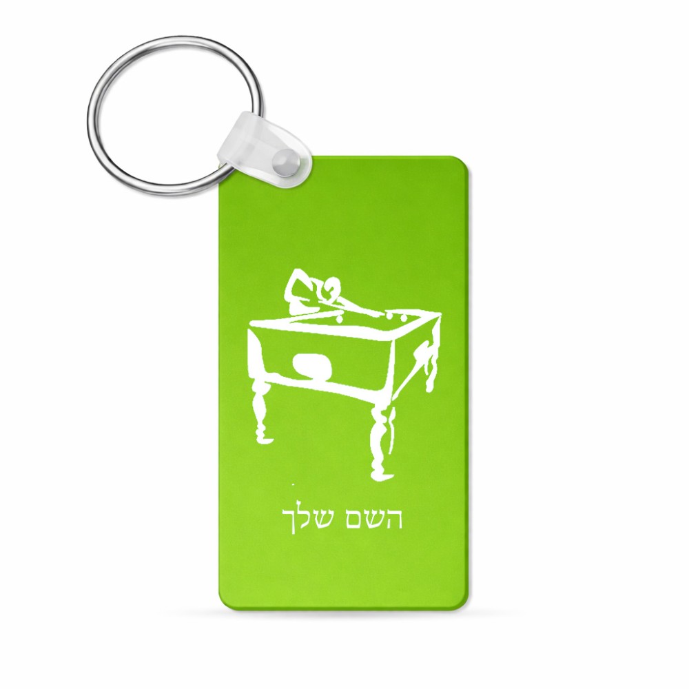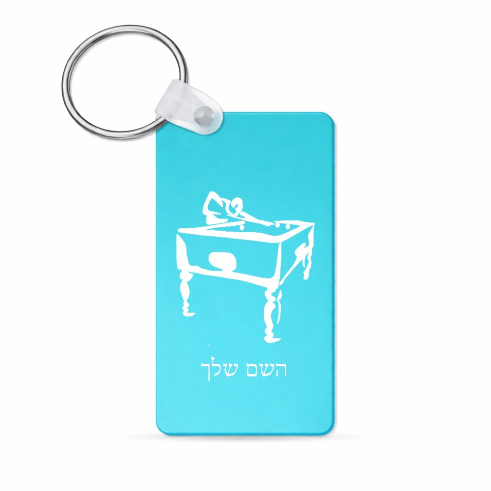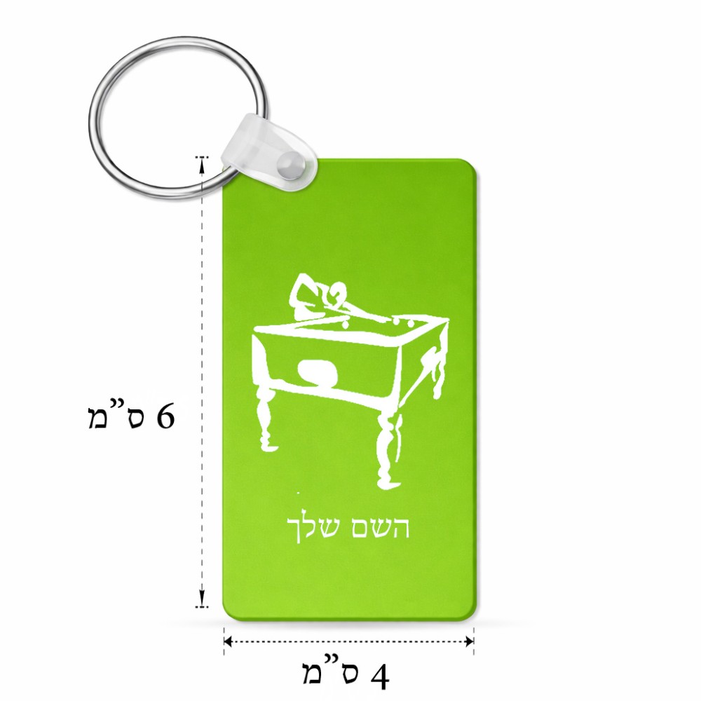 מחזיק מפתחות בצורת מלבן בעיצוב אישי עם השם שלך בעיצוב שחקן ביליארד גודל המחזיק 6 × 4 ס"מ. את השם המבוקש ניתן לציין בהזמנה, אם לא צויין אנחנו ניצור קשר לבירור.
