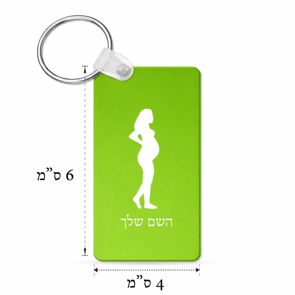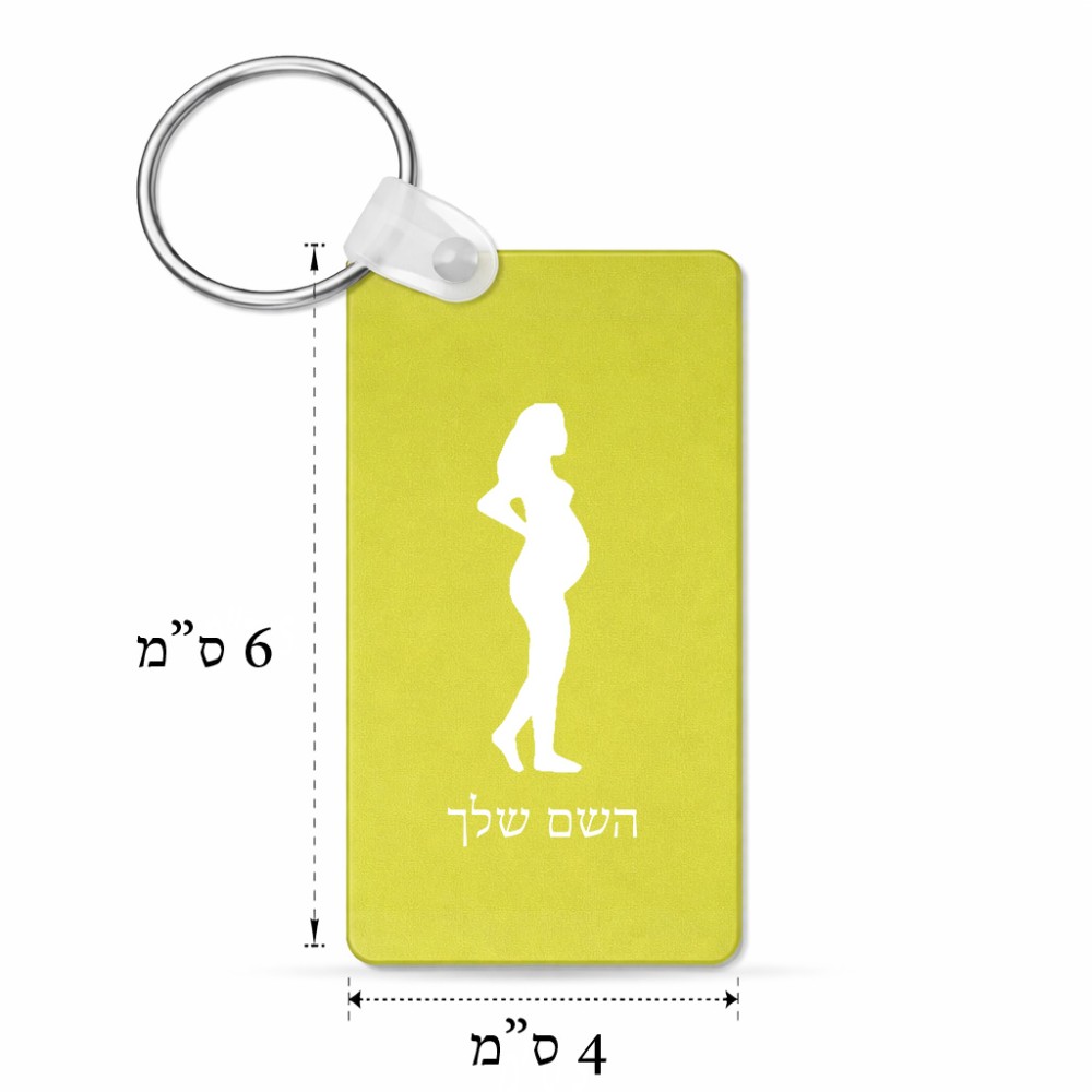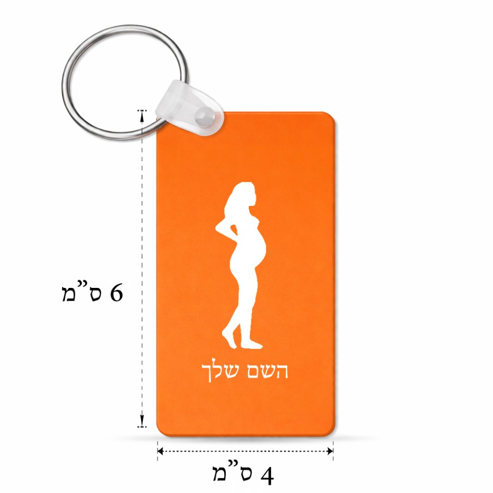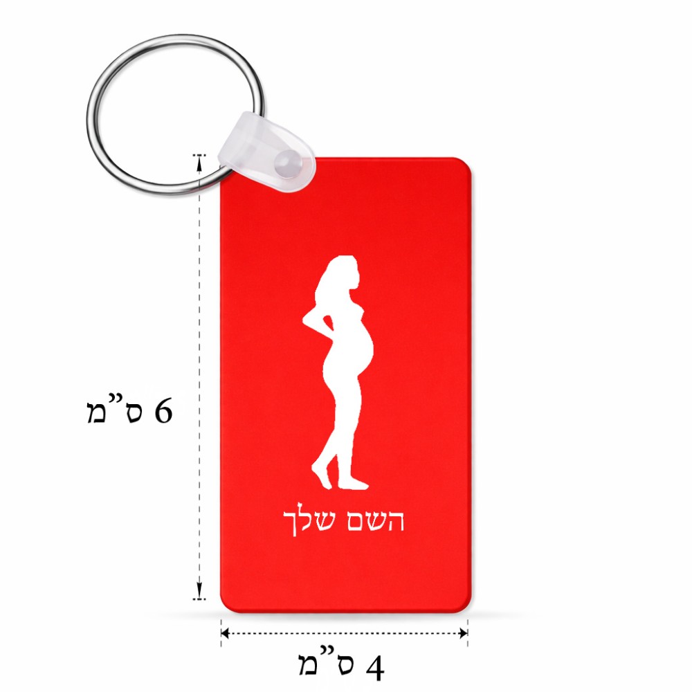 מחזיק מפתחות בצורת מלבן בעיצוב אישי עם השם שלך בעיצוב אישה בהריון גודל המחזיק 6 × 4 ס"מ. את השם המבוקש ניתן לציין בהזמנה, אם לא צויין אנחנו ניצור קשר לבירור.