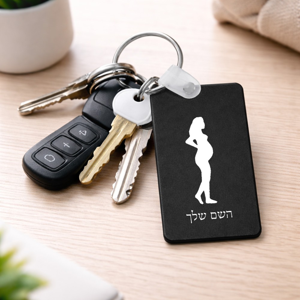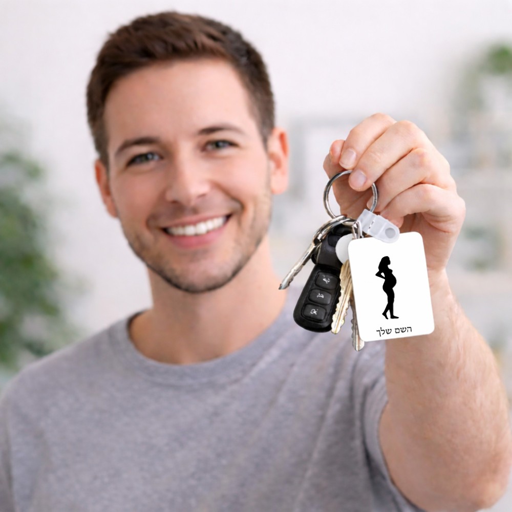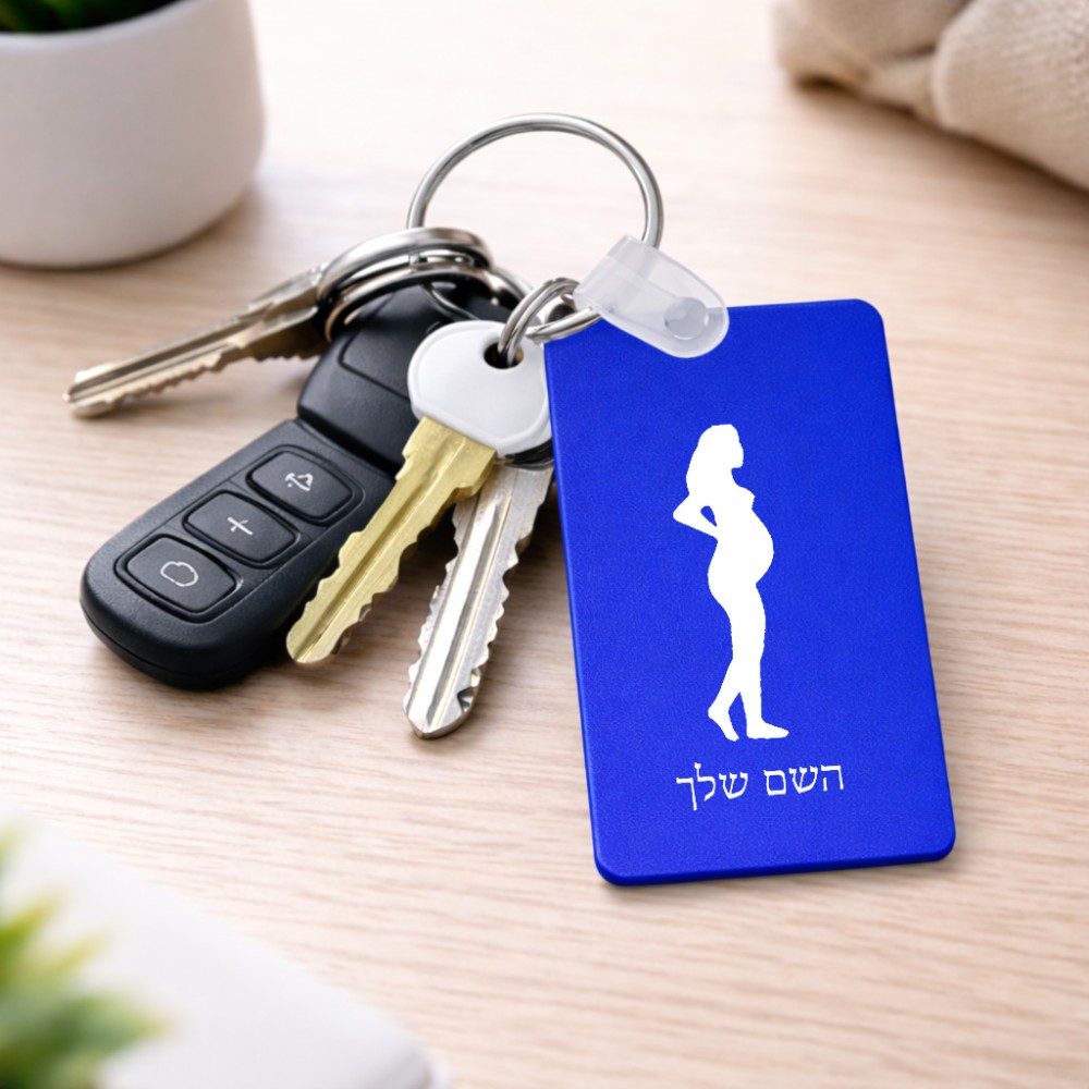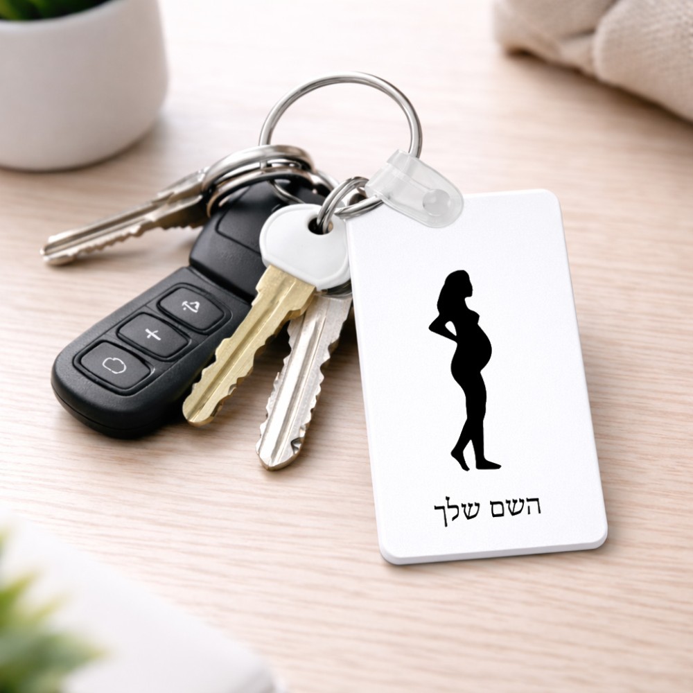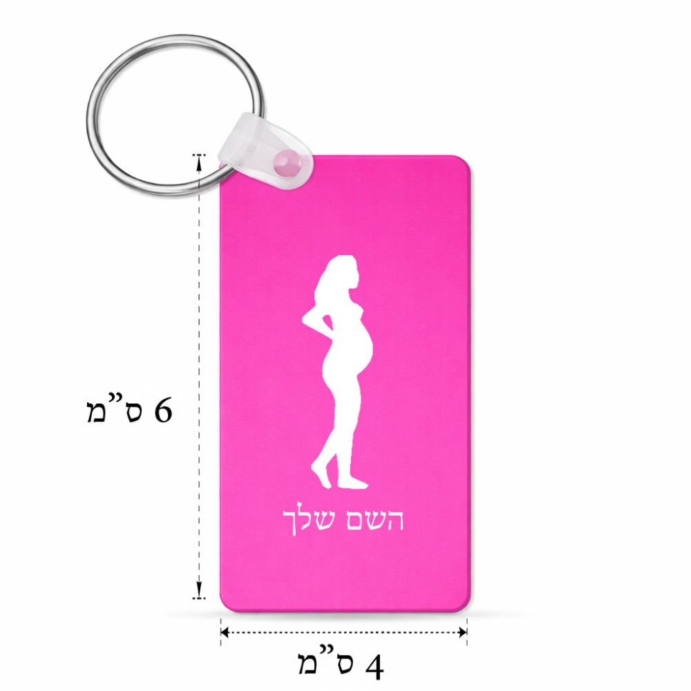 מחזיק מפתחות בצורת מלבן בעיצוב אישי עם השם שלך בעיצוב אישה בהריון גודל המחזיק 6 × 4 ס"מ. את השם המבוקש ניתן לציין בהזמנה, אם לא צויין אנחנו ניצור קשר לבירור.