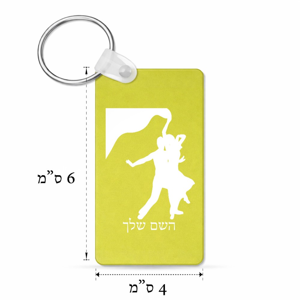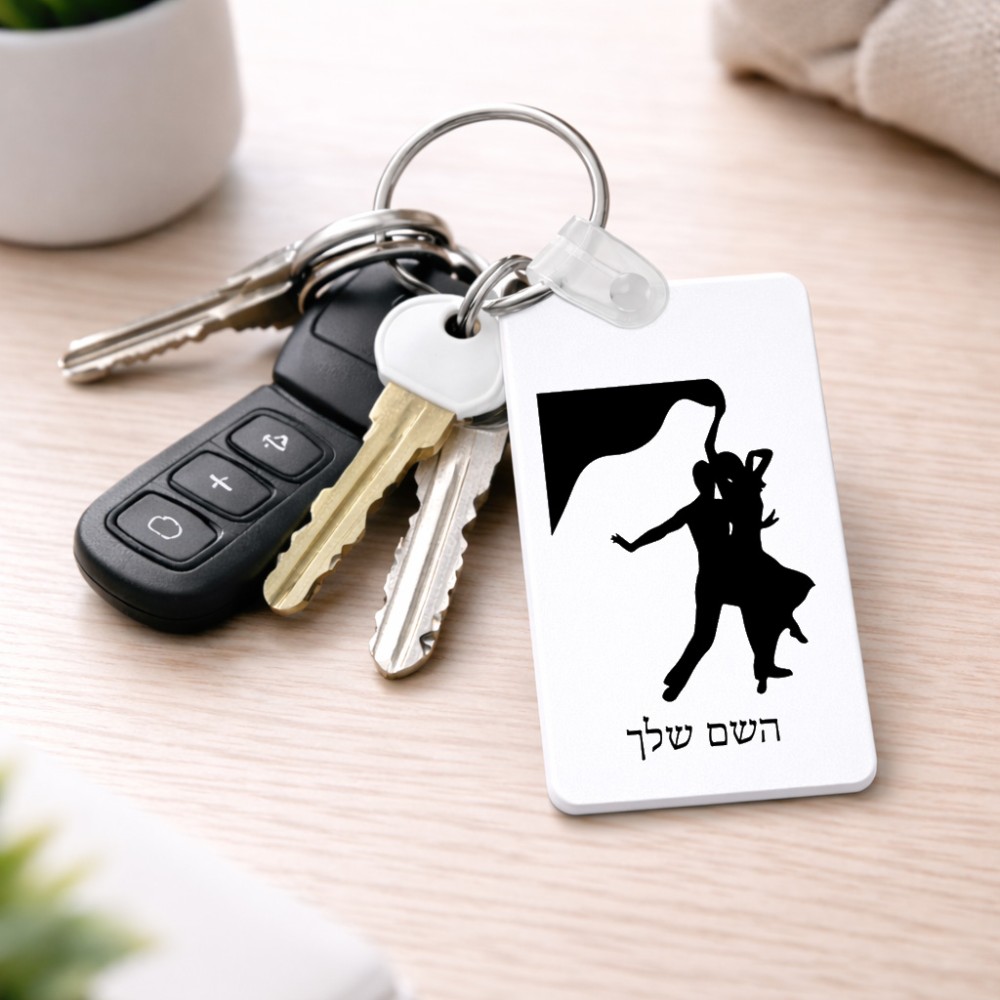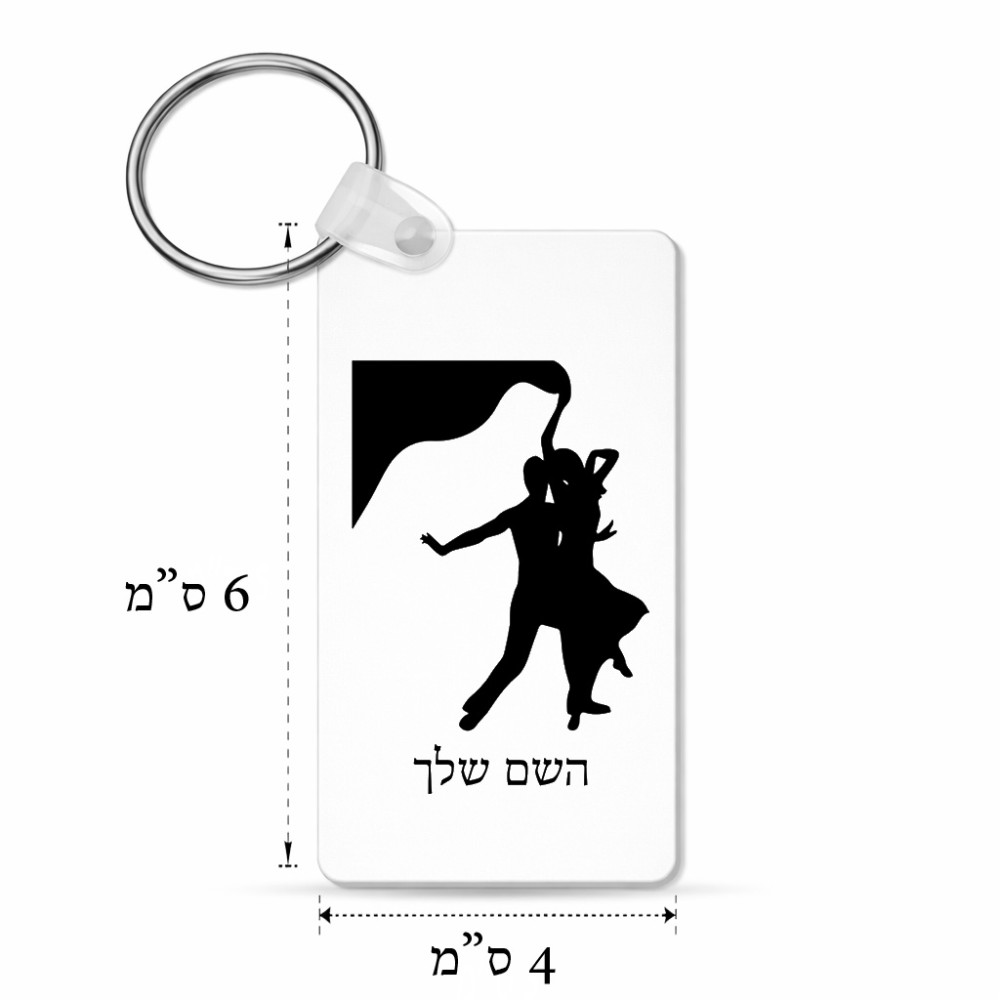 מחזיק מפתחות בצורת מלבן בעיצוב אישי עם השם שלך בעיצוב אישה רוקדת עם גבר גודל המחזיק 6 × 4 ס"מ. את השם המבוקש ניתן לציין בהזמנה, אם לא צויין אנחנו ניצור קשר לבירור.
