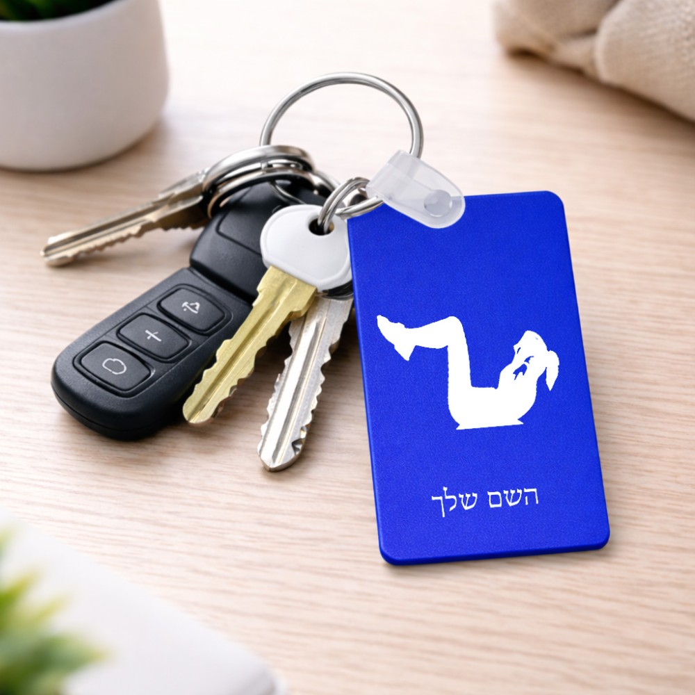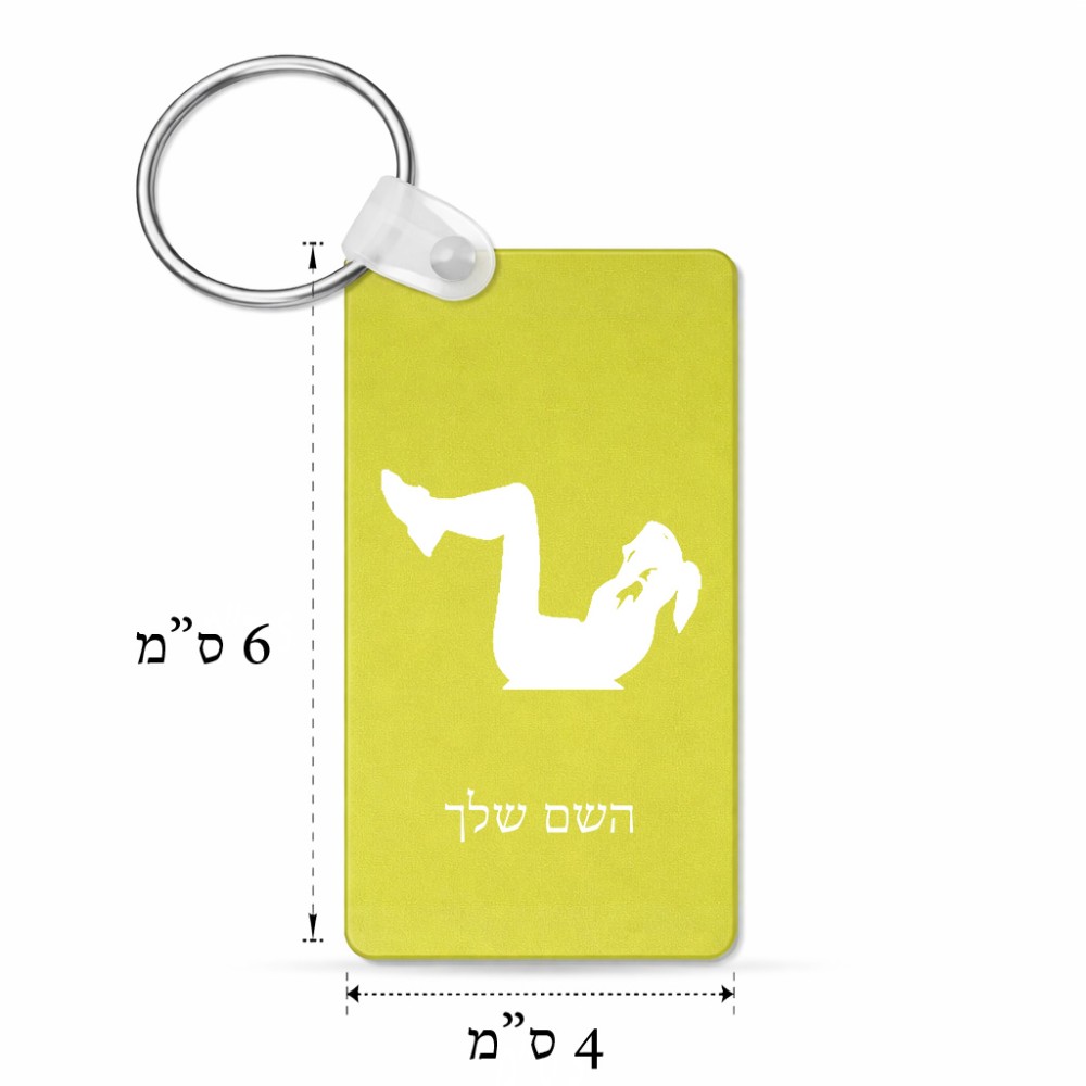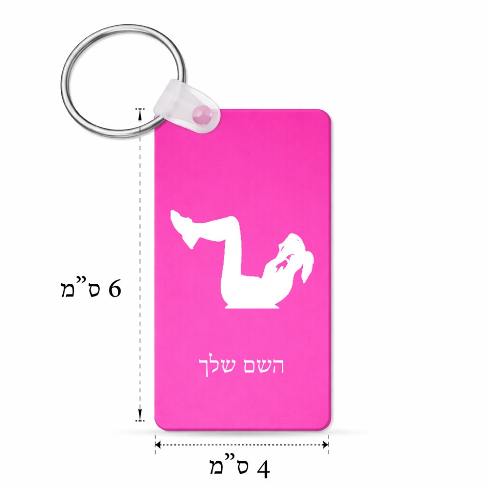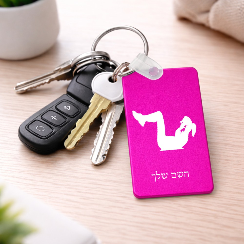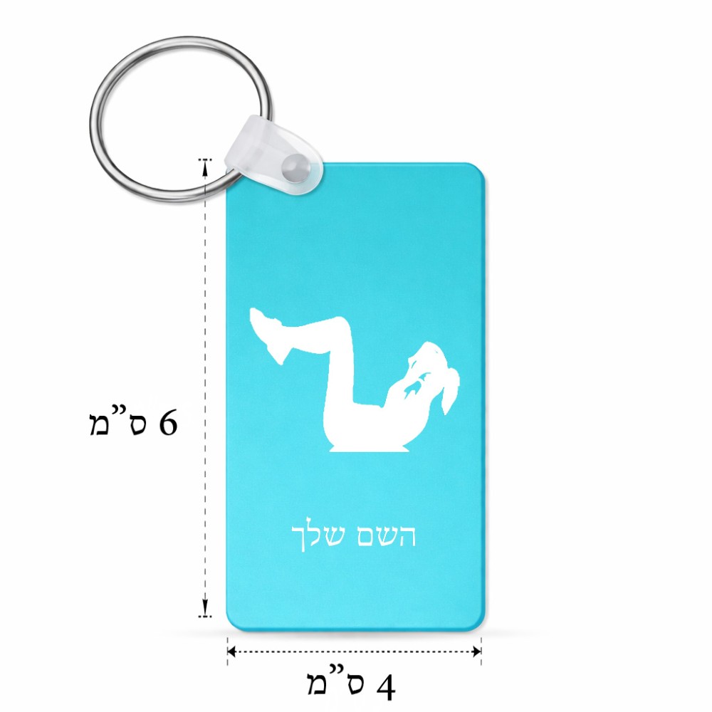 מחזיק מפתחות בצורת מלבן בעיצוב אישי עם השם שלך בעיצוב אישה מתאמנת גודל המחזיק 6 × 4 ס"מ. את השם המבוקש ניתן לציין בהזמנה, אם לא צויין אנחנו ניצור קשר לבירור.