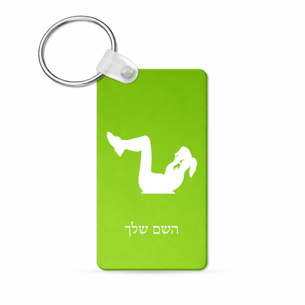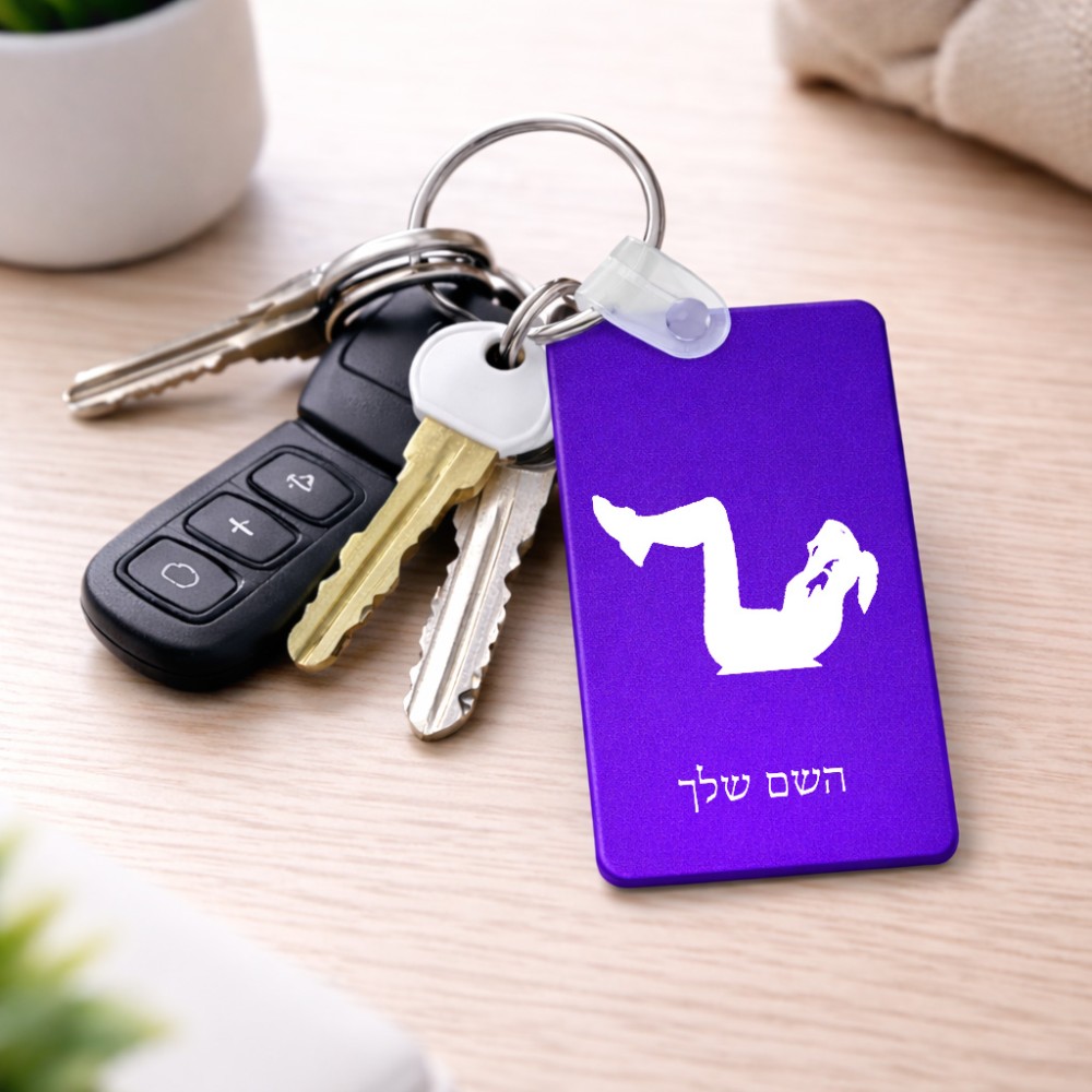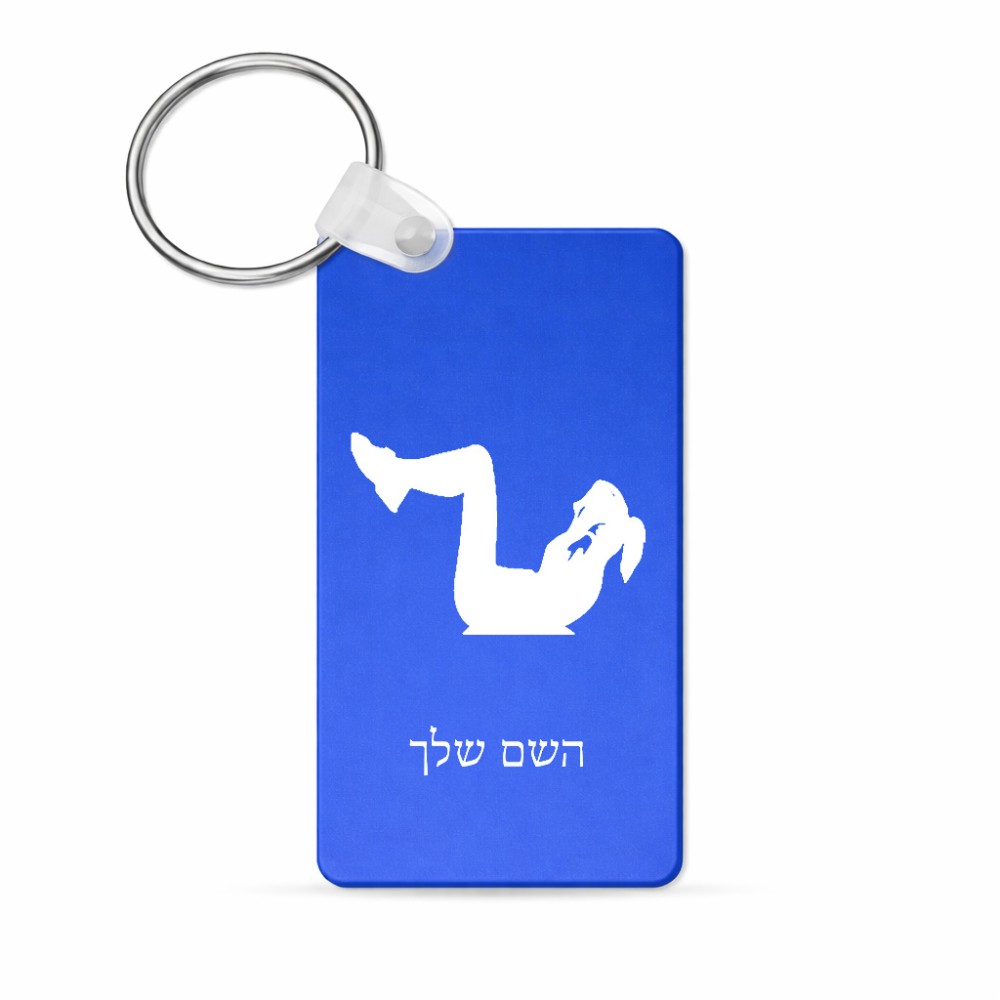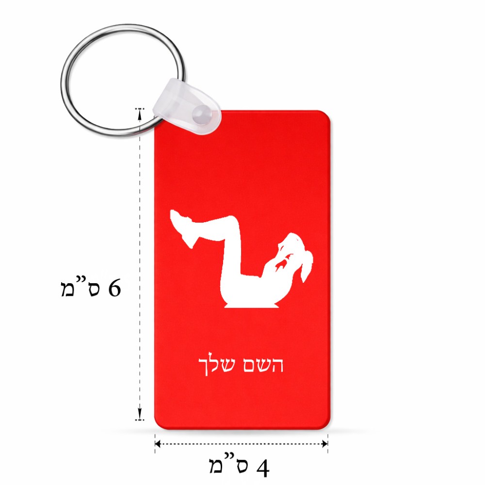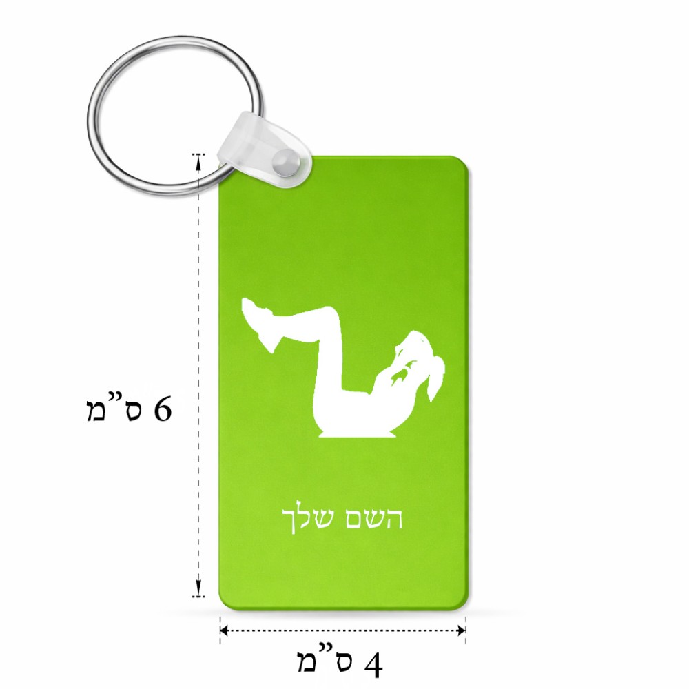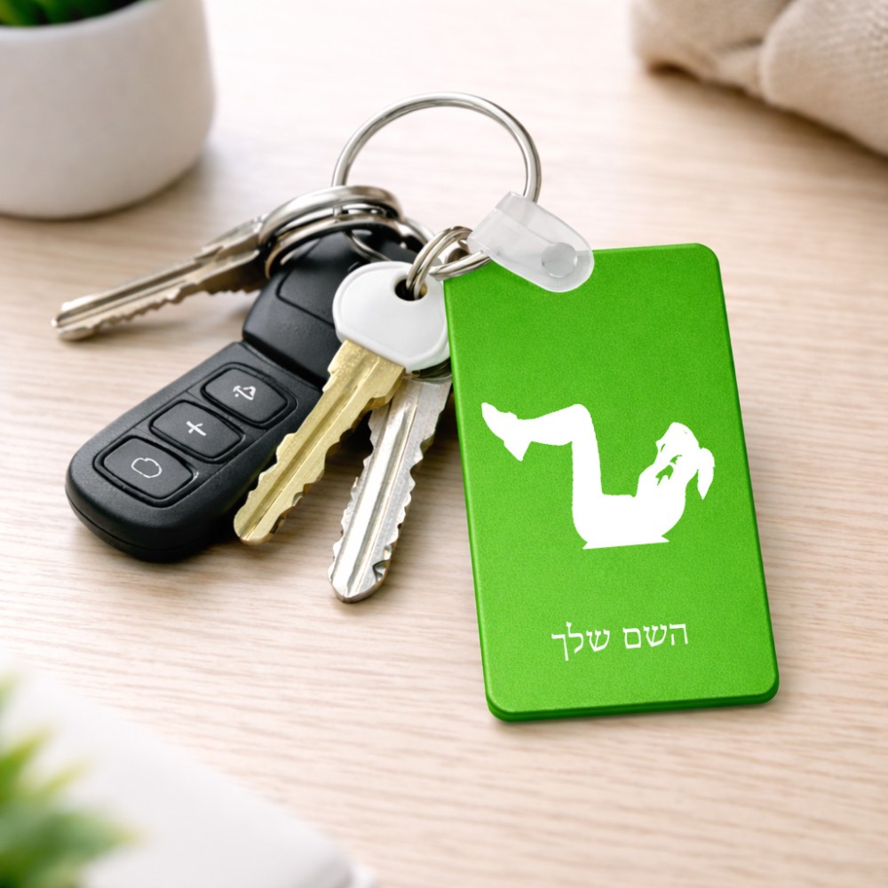מחזיק מפתחות בצורת מלבן בעיצוב אישי עם השם שלך בעיצוב אישה מתאמנת גודל המחזיק 6 × 4 ס"מ. את השם המבוקש ניתן לציין בהזמנה, אם לא צויין אנחנו ניצור קשר לבירור.