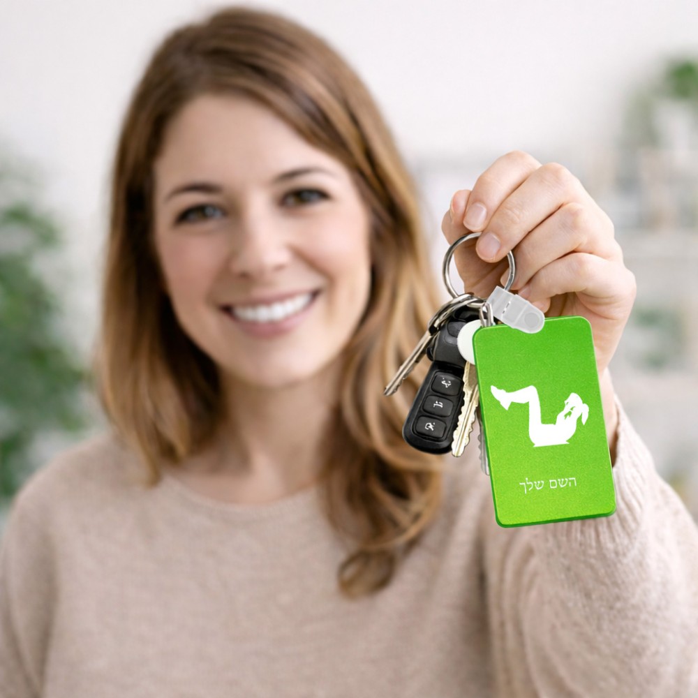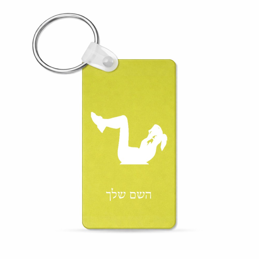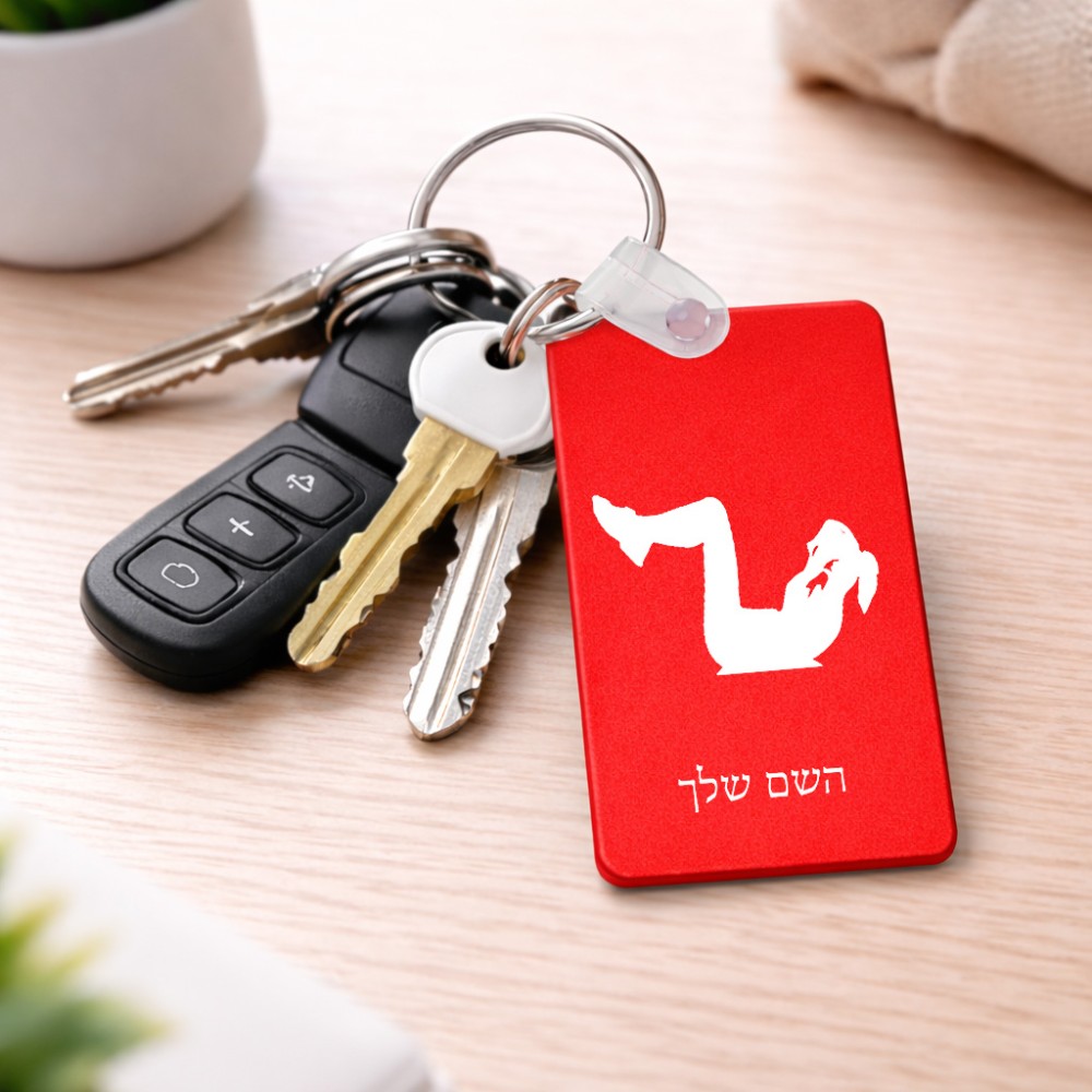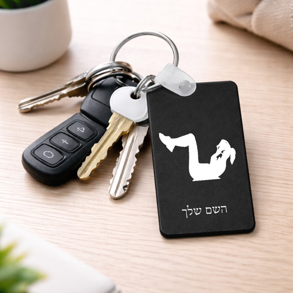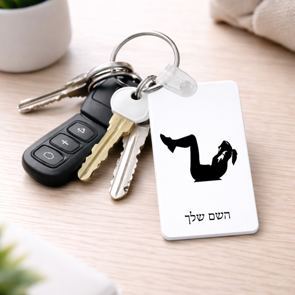 מחזיק מפתחות בצורת מלבן בעיצוב אישי עם השם שלך בעיצוב אישה מתאמנת גודל המחזיק 6 × 4 ס"מ. את השם המבוקש ניתן לציין בהזמנה, אם לא צויין אנחנו ניצור קשר לבירור.