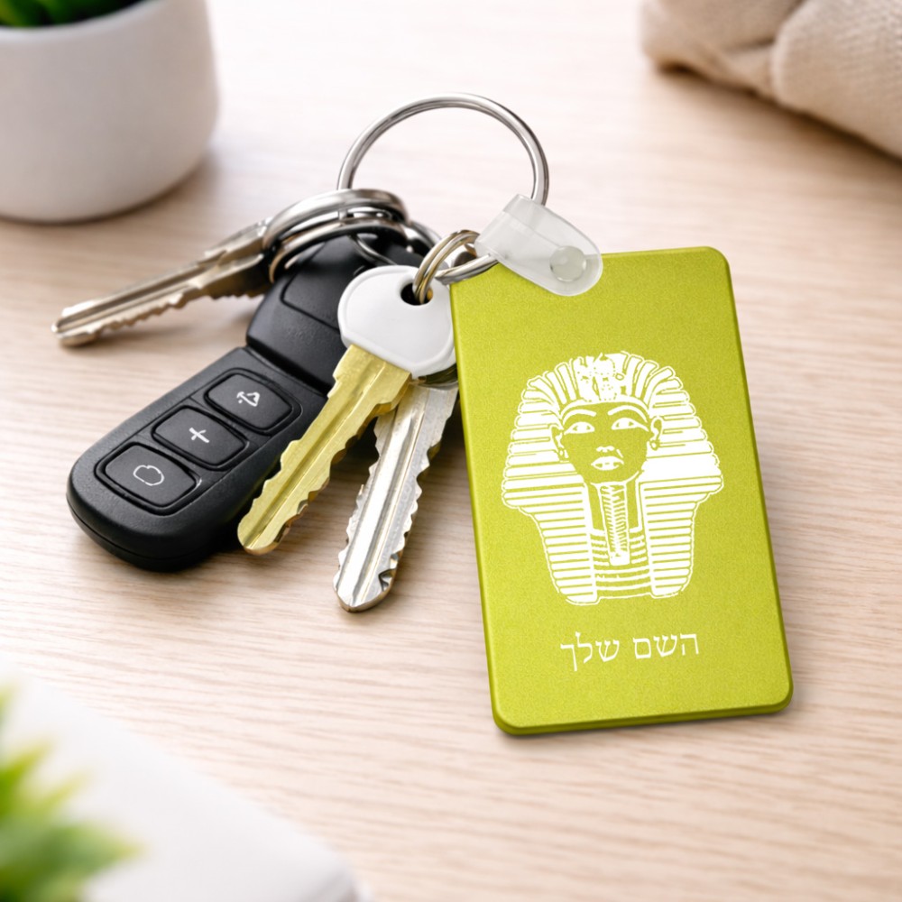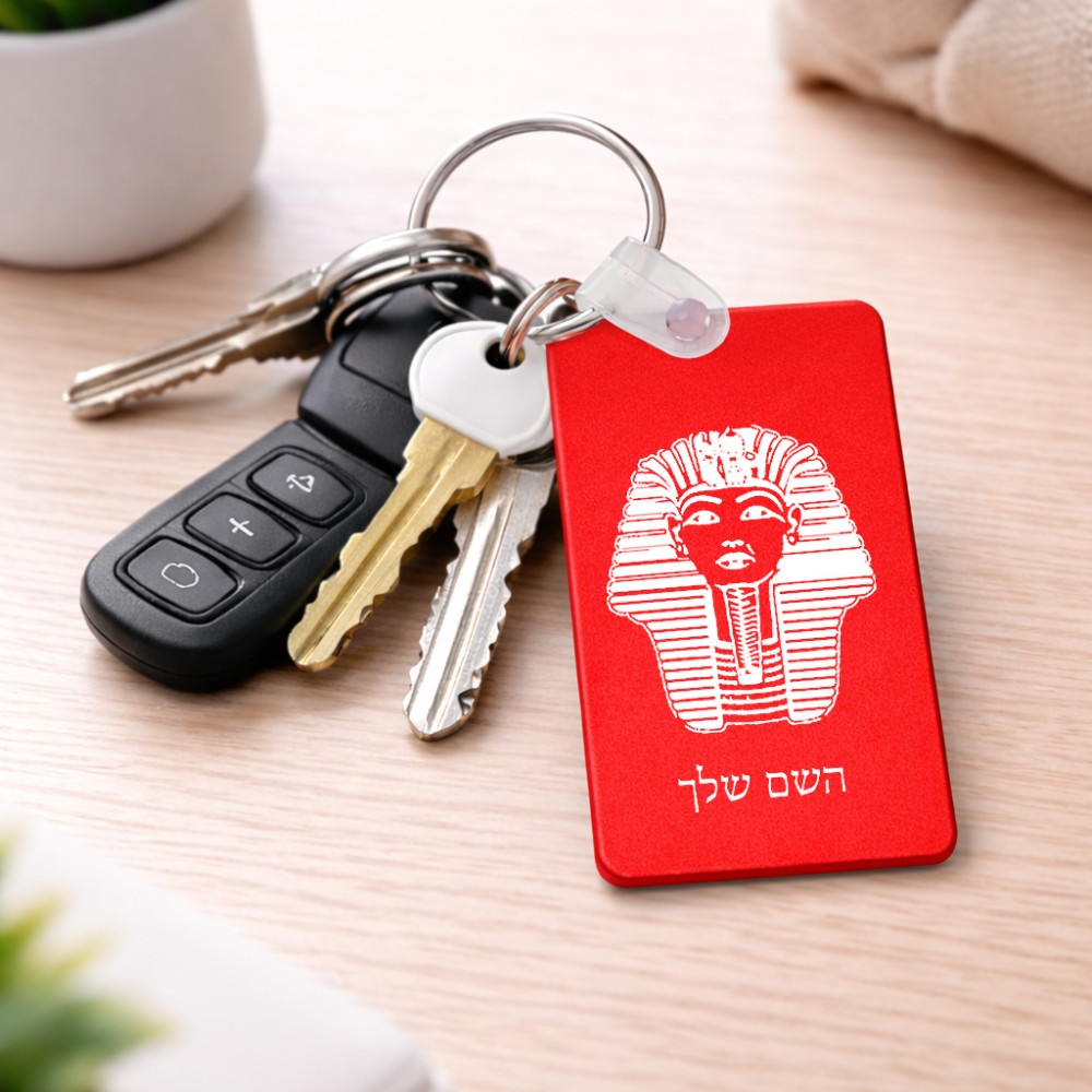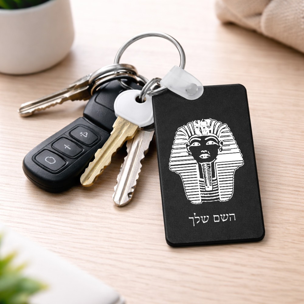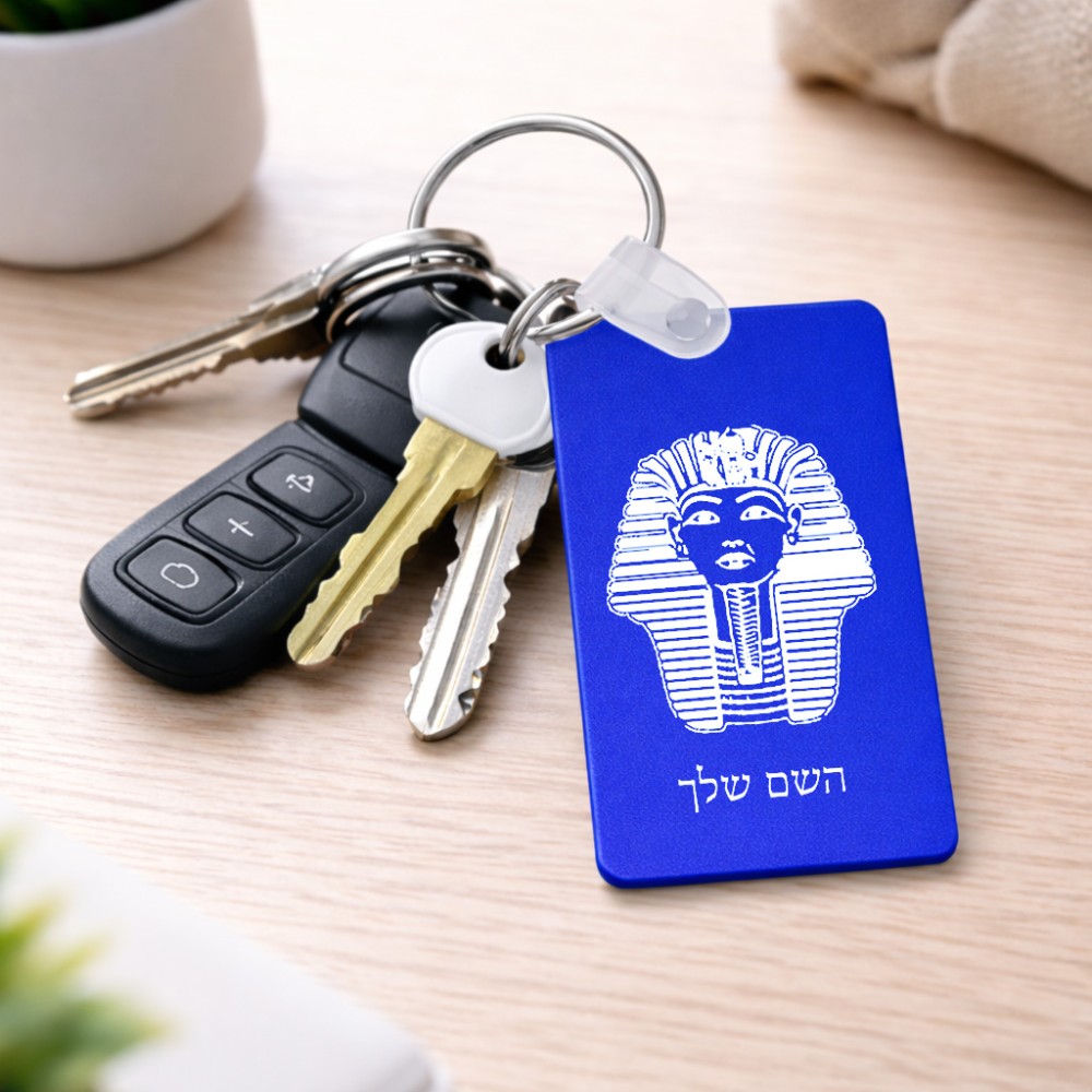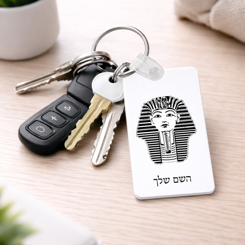 מחזיק מפתחות בצורת מלבן בעיצוב אישי עם השם שלך בעיצוב פרעה - תות ענח' אמון מצרי גודל המחזיק 6 × 4 ס"מ. את השם המבוקש ניתן לציין בהזמנה, אם לא צויין אנחנו ניצור קשר לבירור.