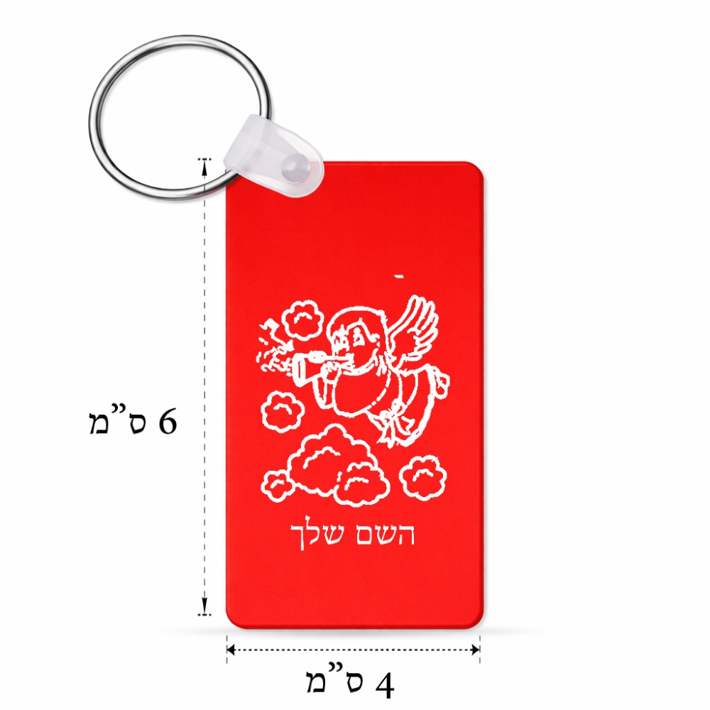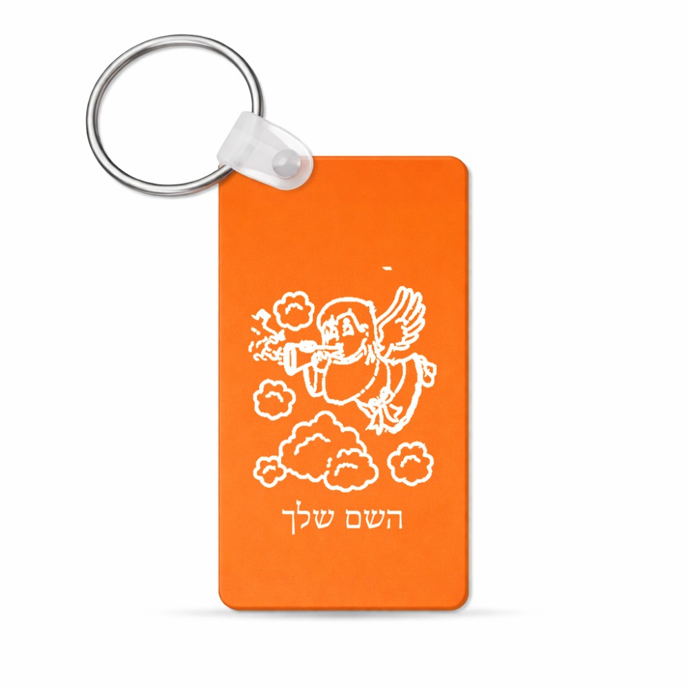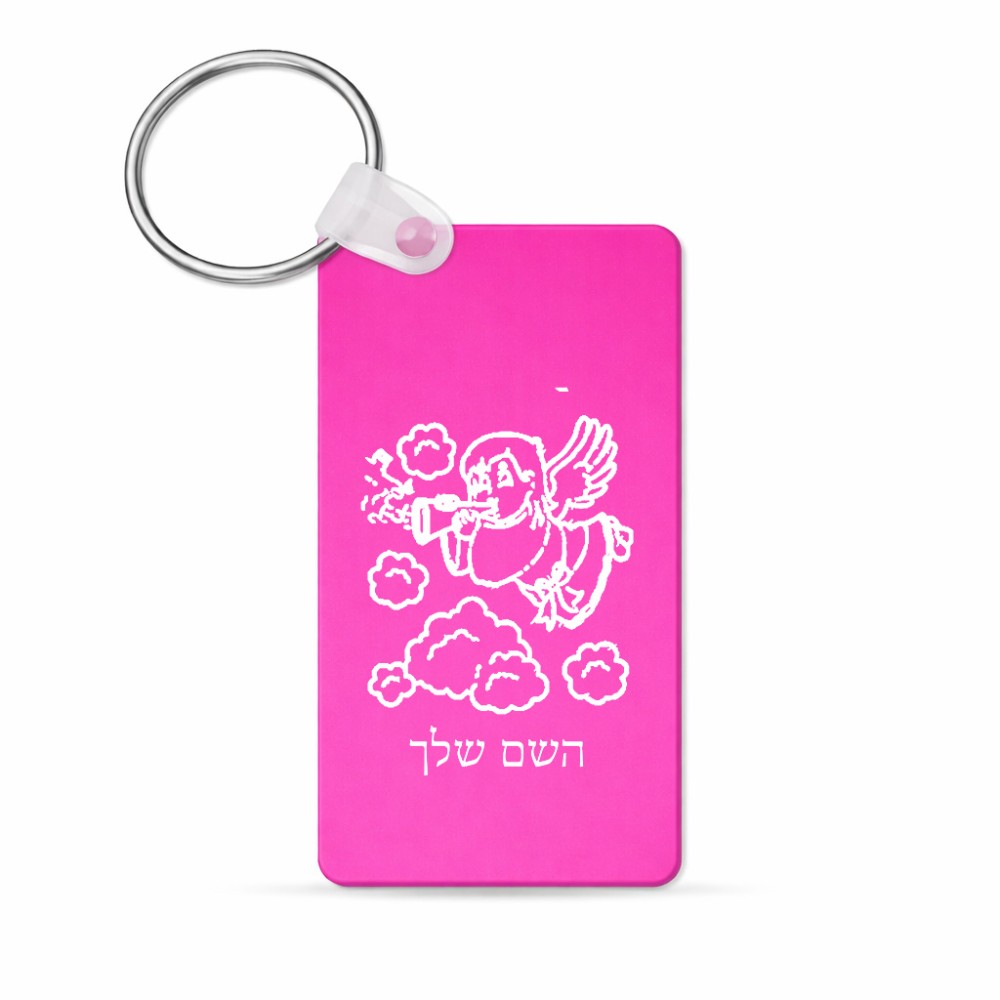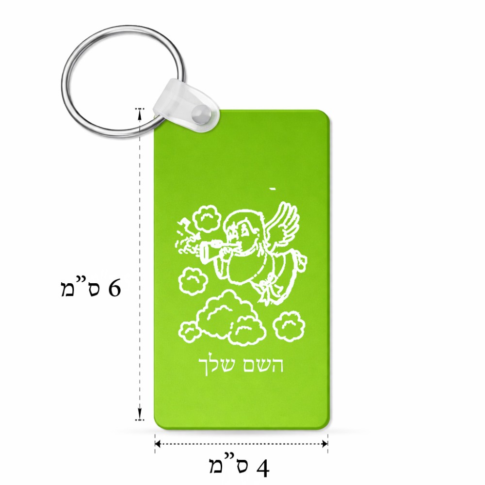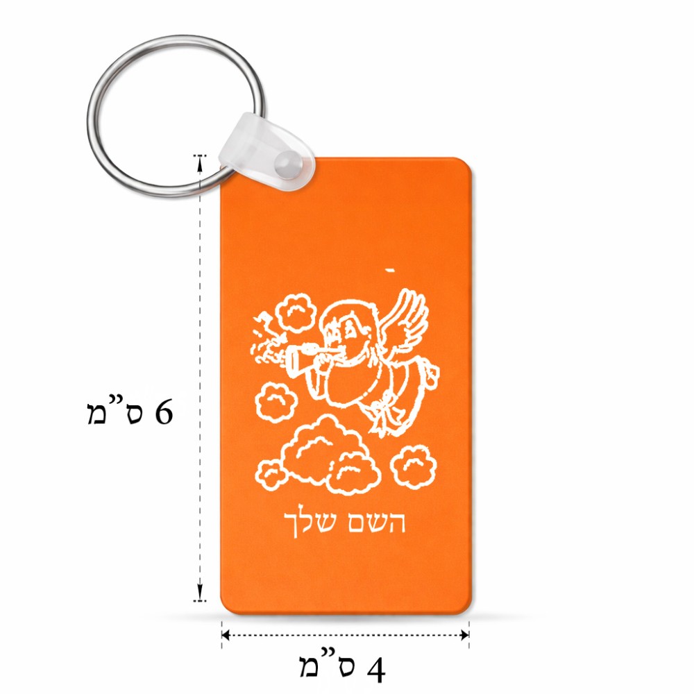 מחזיק מפתחות בצורת מלבן בעיצוב אישי עם השם שלך בעיצוב מחזמר אנג'ל 2 גודל המחזיק 6 × 4 ס"מ. את השם המבוקש ניתן לציין בהזמנה, אם לא צויין אנחנו ניצור קשר לבירור.