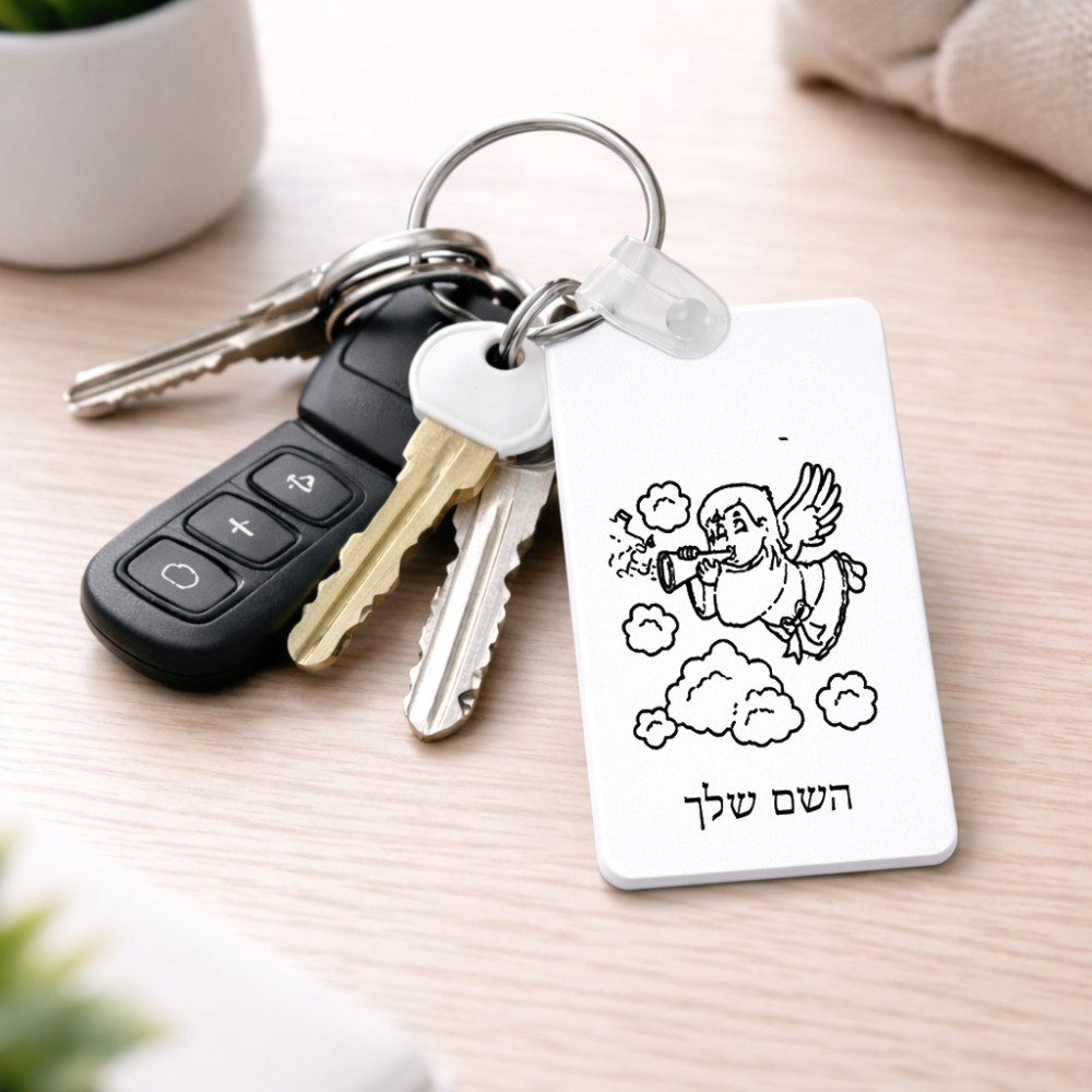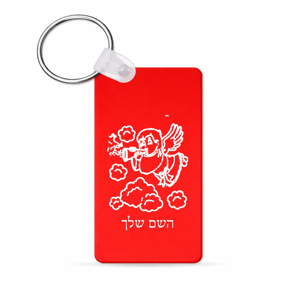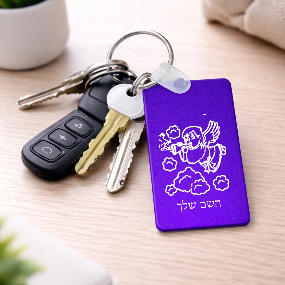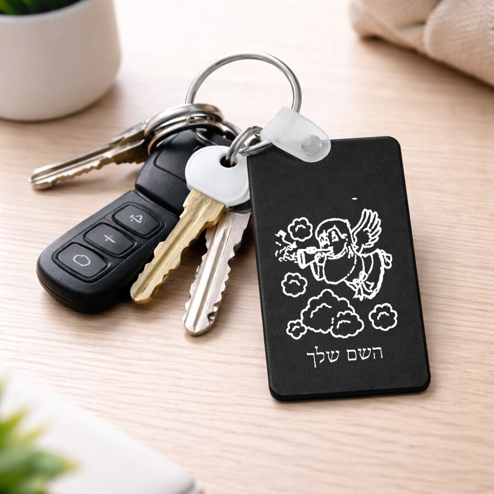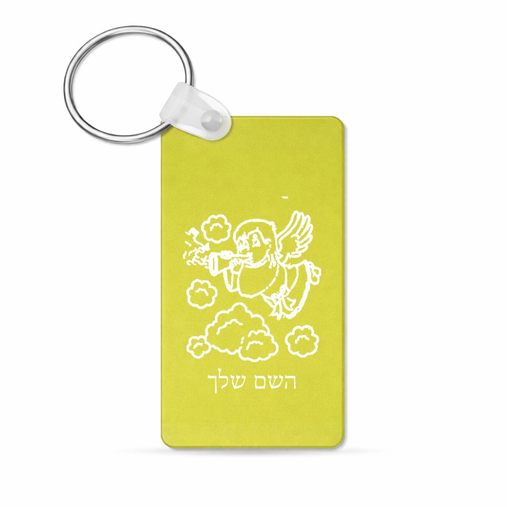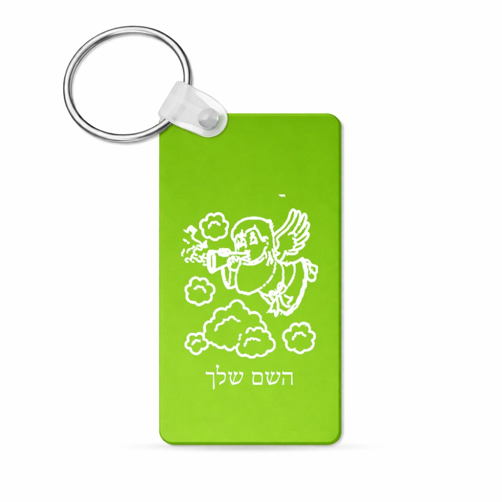 מחזיק מפתחות בצורת מלבן בעיצוב אישי עם השם שלך בעיצוב מחזמר אנג'ל 2 גודל המחזיק 6 × 4 ס"מ. את השם המבוקש ניתן לציין בהזמנה, אם לא צויין אנחנו ניצור קשר לבירור.