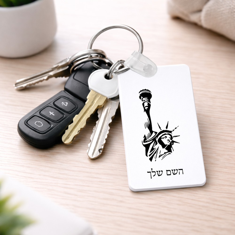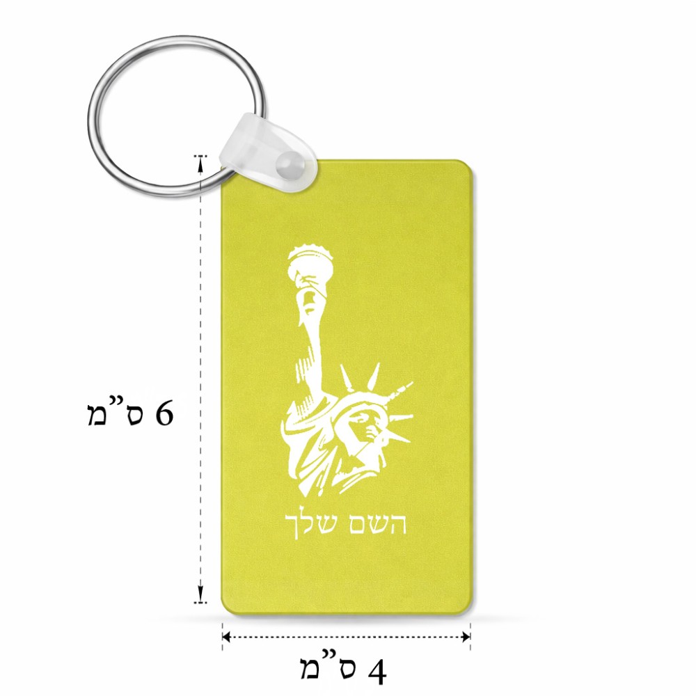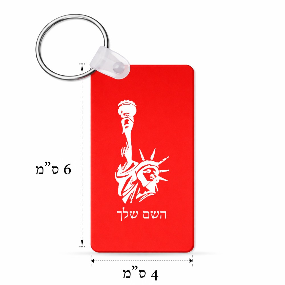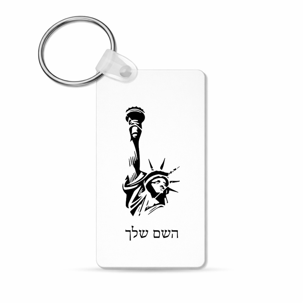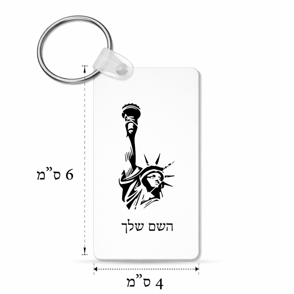 מחזיק מפתחות בצורת מלבן בעיצוב אישי עם השם שלך בעיצוב פסל החירות גודל המחזיק 6 × 4 ס"מ. את השם המבוקש ניתן לציין בהזמנה, אם לא צויין אנחנו ניצור קשר לבירור.