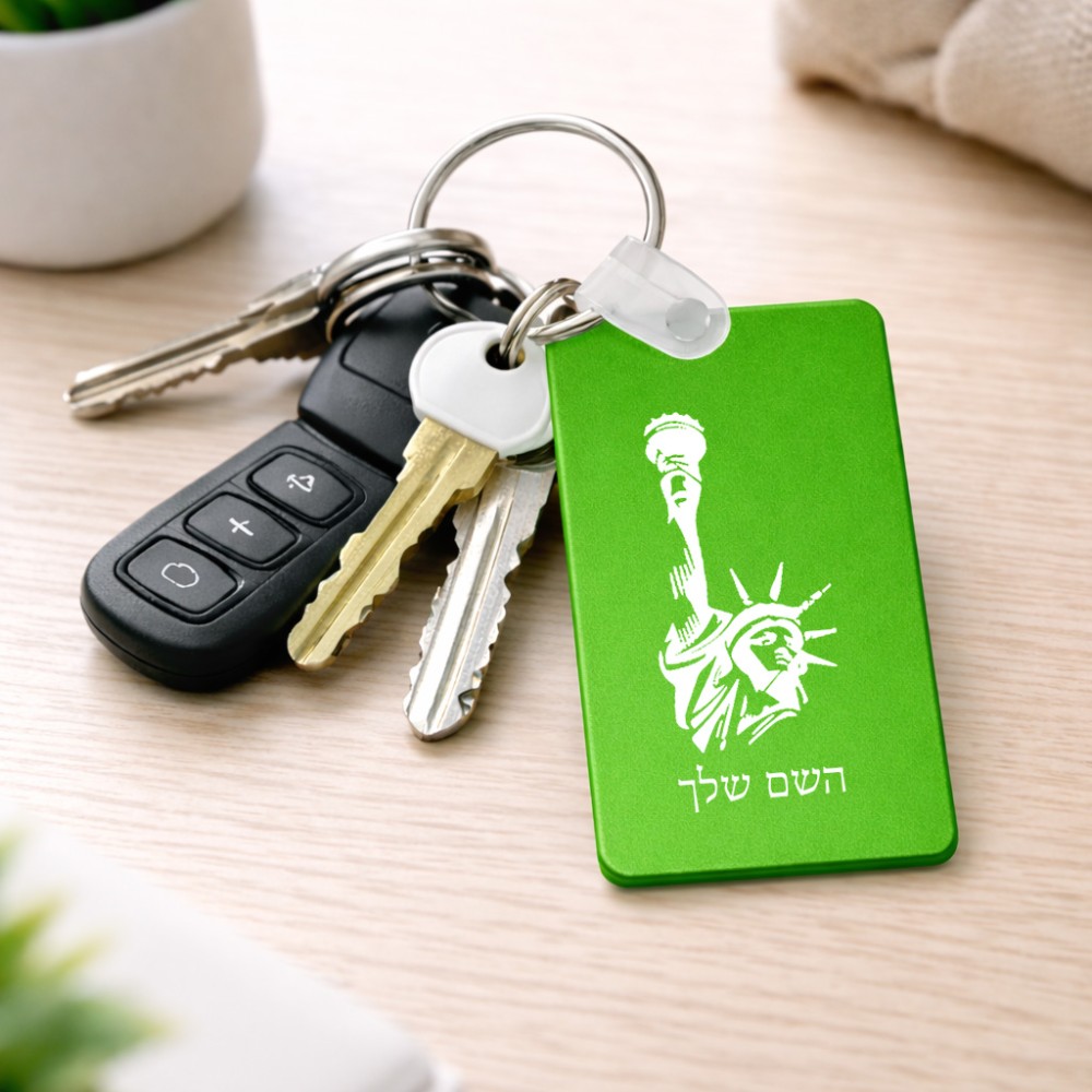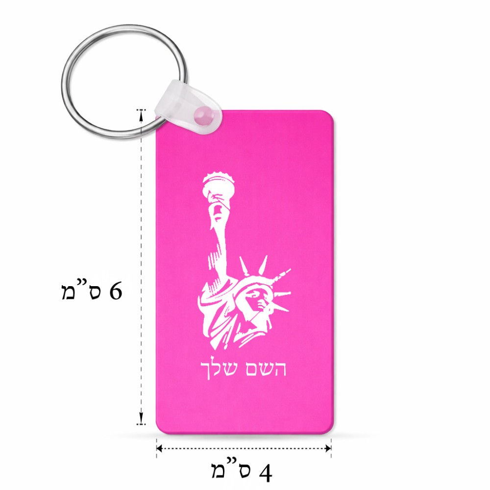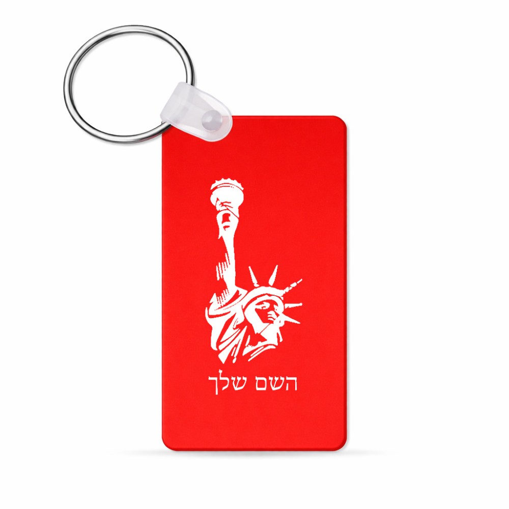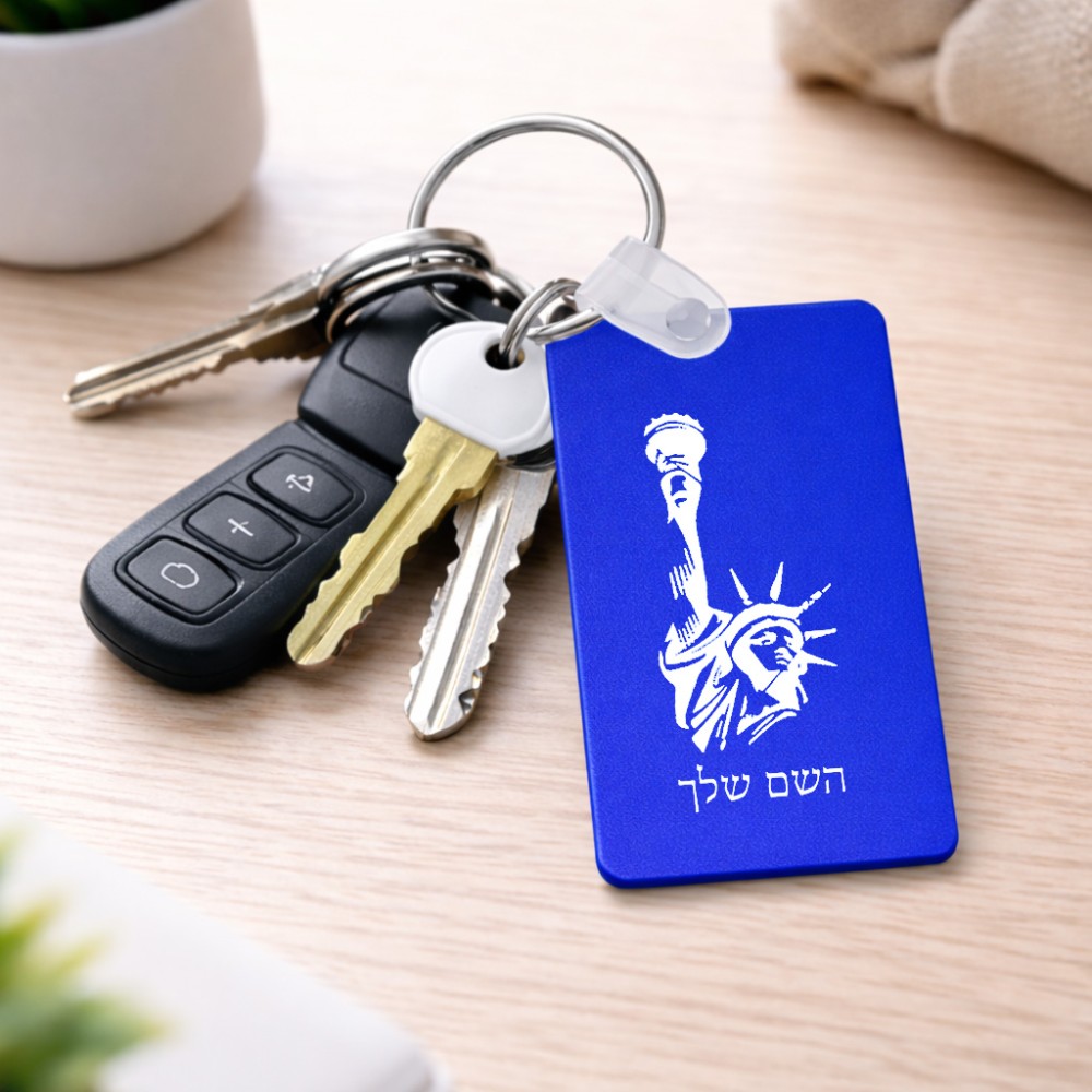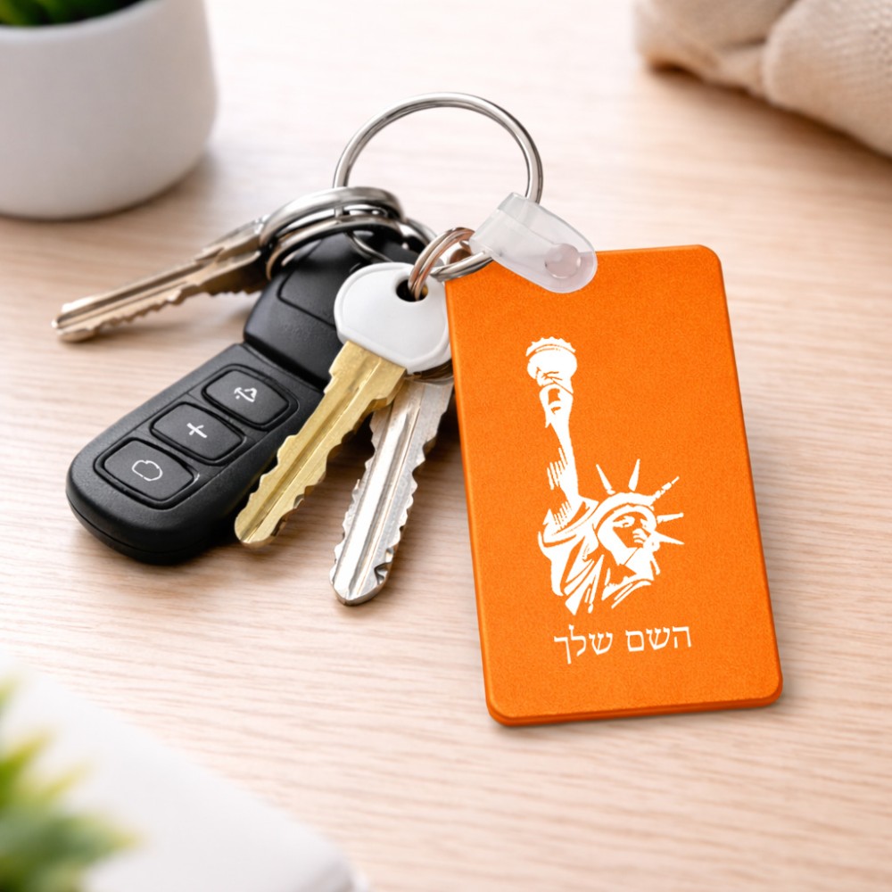 מחזיק מפתחות בצורת מלבן בעיצוב אישי עם השם שלך בעיצוב פסל החירות גודל המחזיק 6 × 4 ס"מ. את השם המבוקש ניתן לציין בהזמנה, אם לא צויין אנחנו ניצור קשר לבירור.