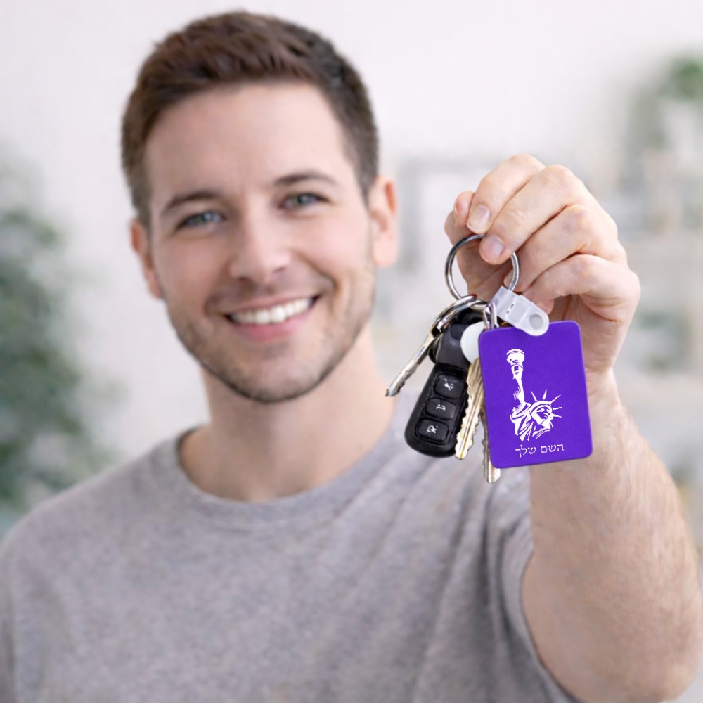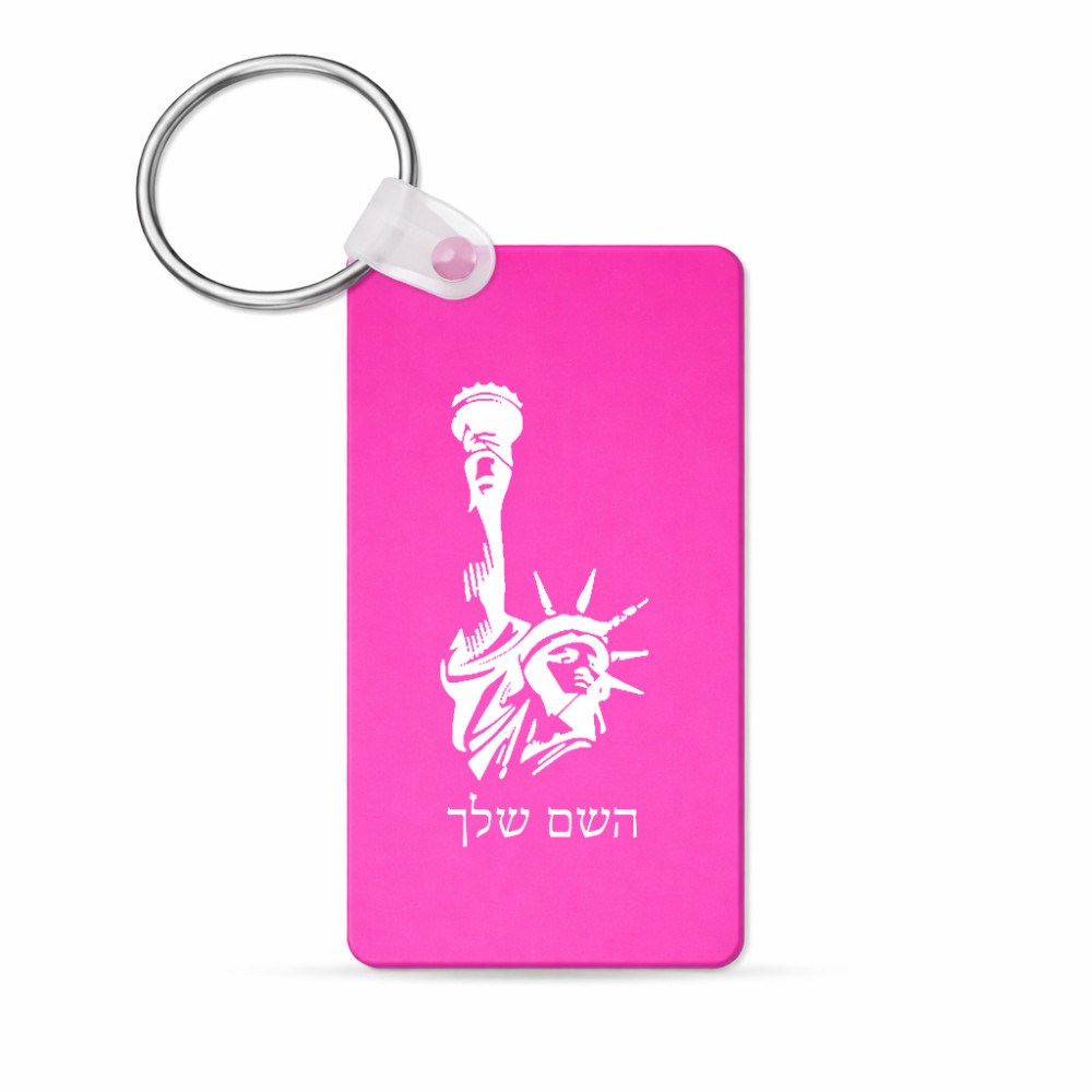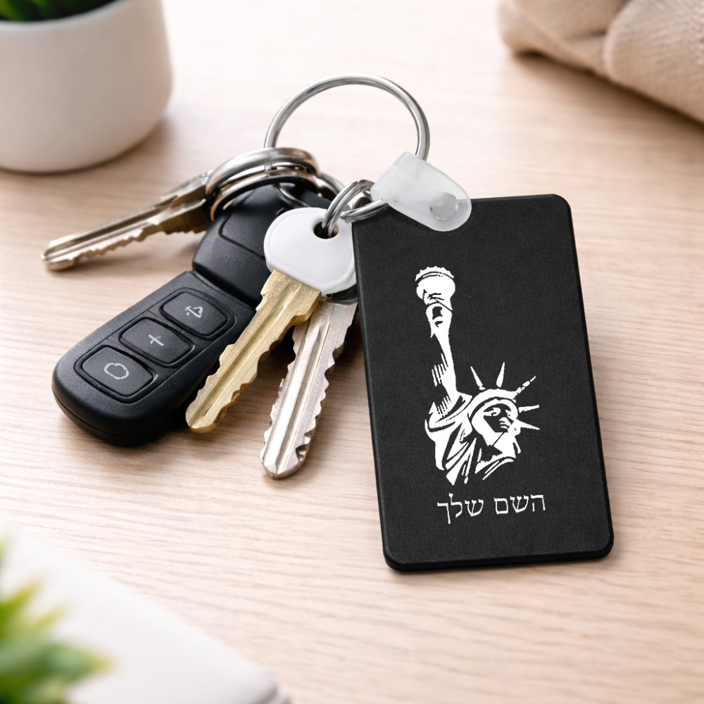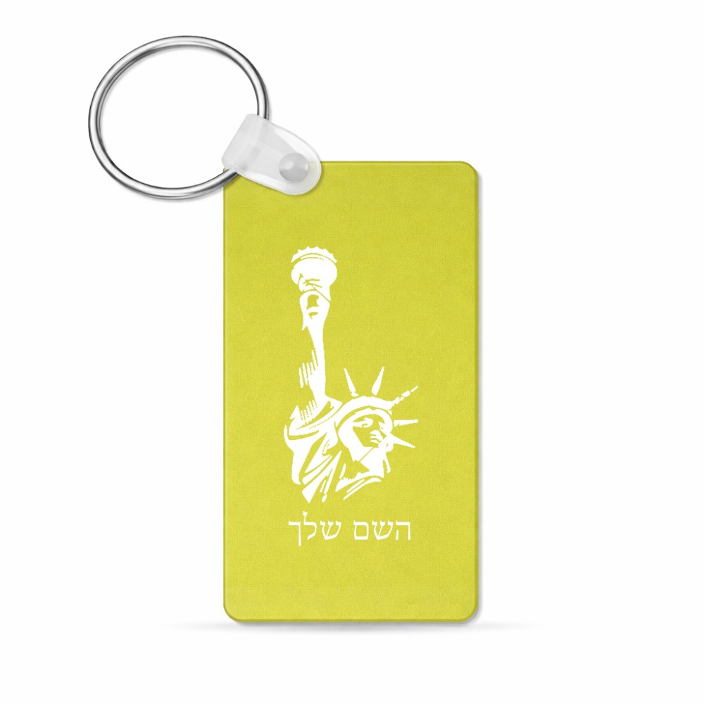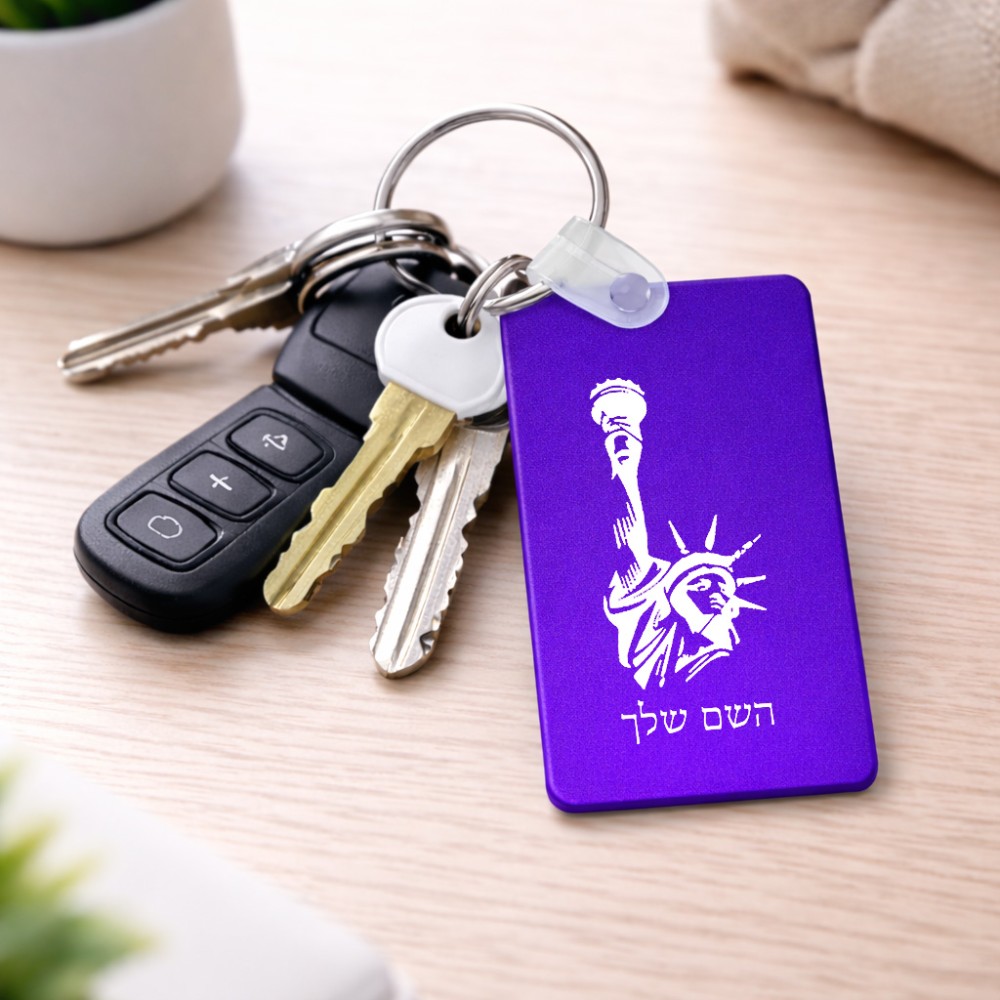 מחזיק מפתחות בצורת מלבן בעיצוב אישי עם השם שלך בעיצוב פסל החירות גודל המחזיק 6 × 4 ס"מ. את השם המבוקש ניתן לציין בהזמנה, אם לא צויין אנחנו ניצור קשר לבירור.