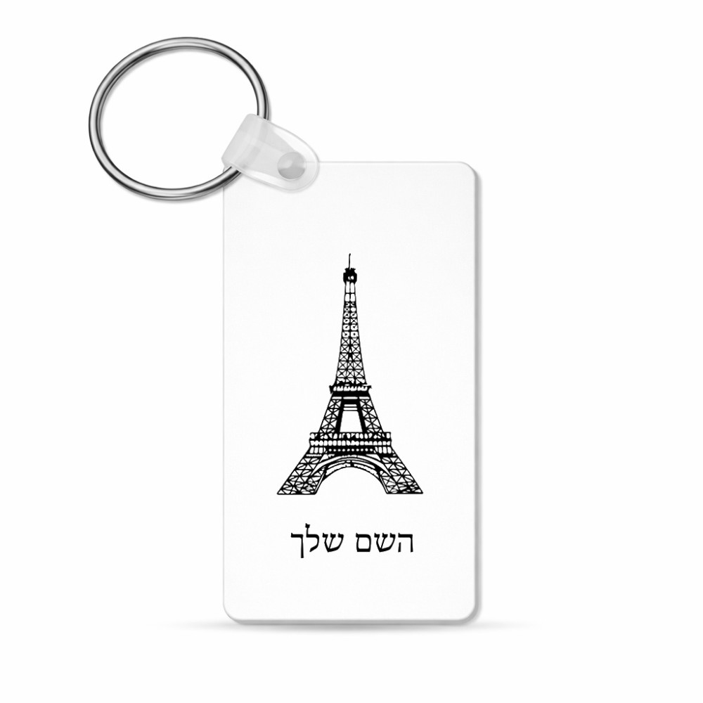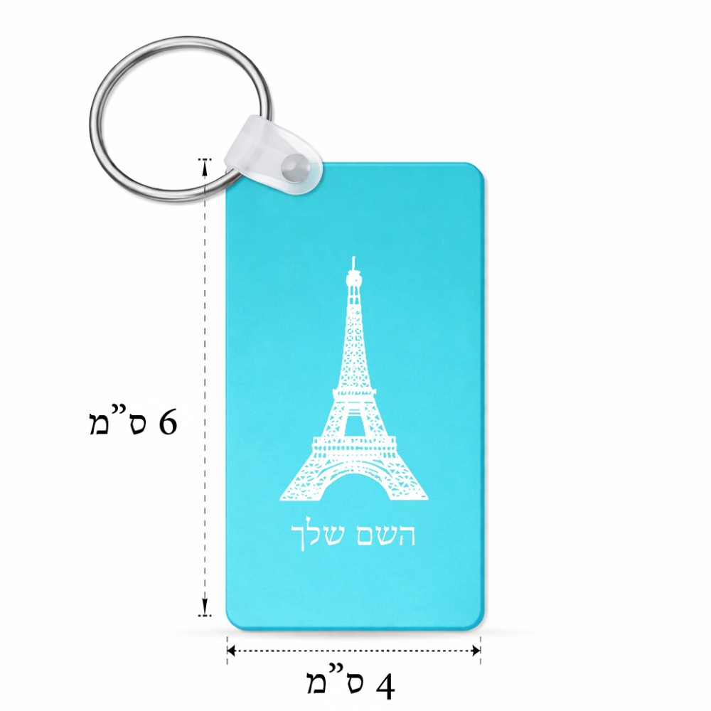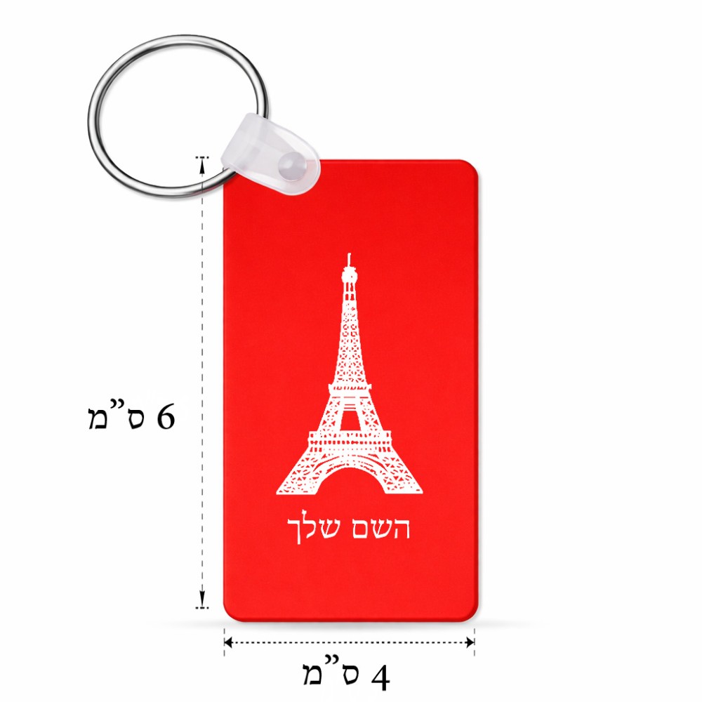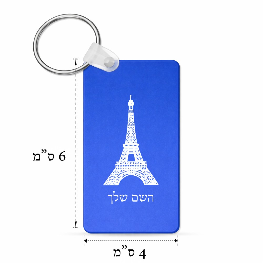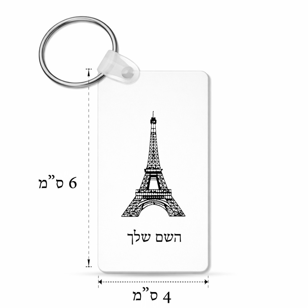 מחזיק מפתחות בצורת מלבן בעיצוב אישי עם השם שלך בעיצוב מגדל אייפל גודל המחזיק 6 × 4 ס"מ. את השם המבוקש ניתן לציין בהזמנה, אם לא צויין אנחנו ניצור קשר לבירור.
