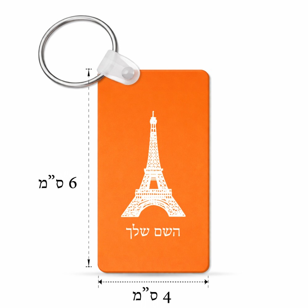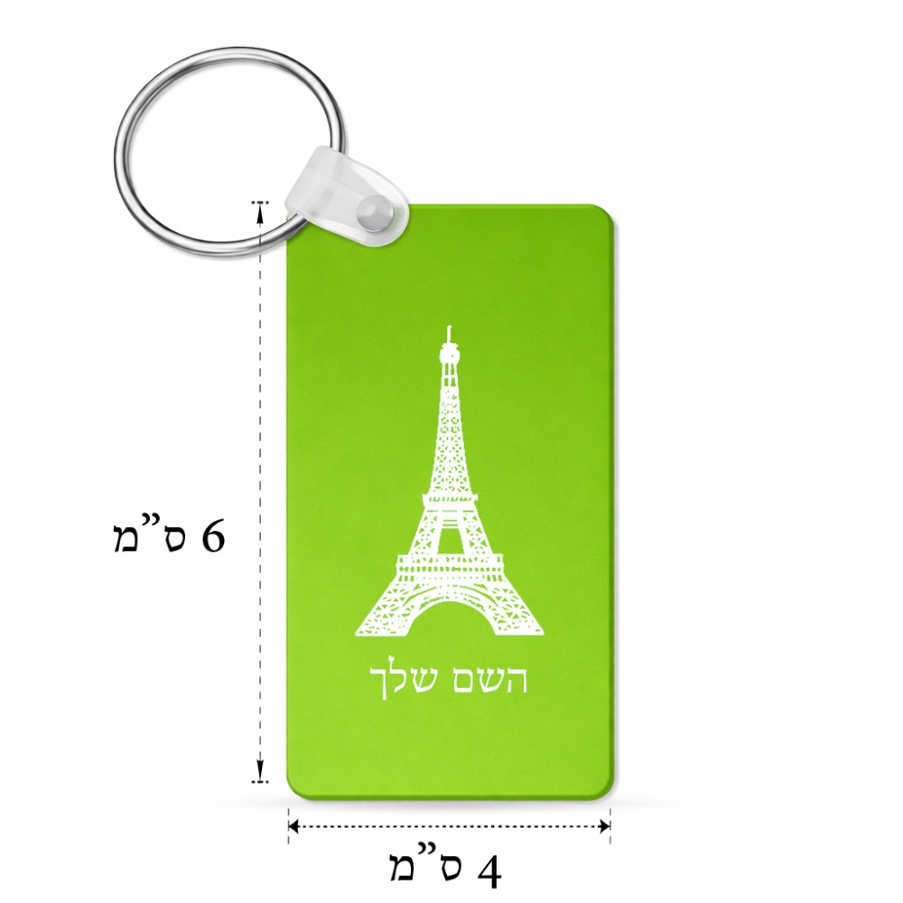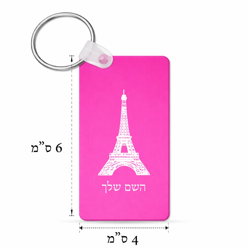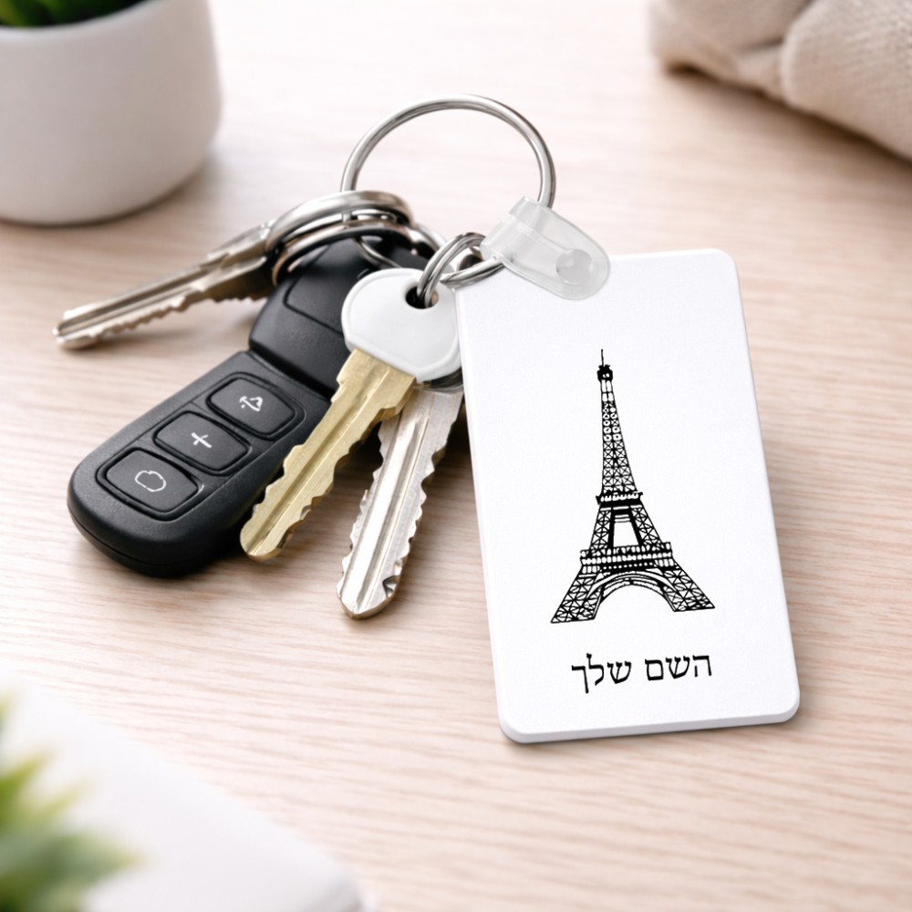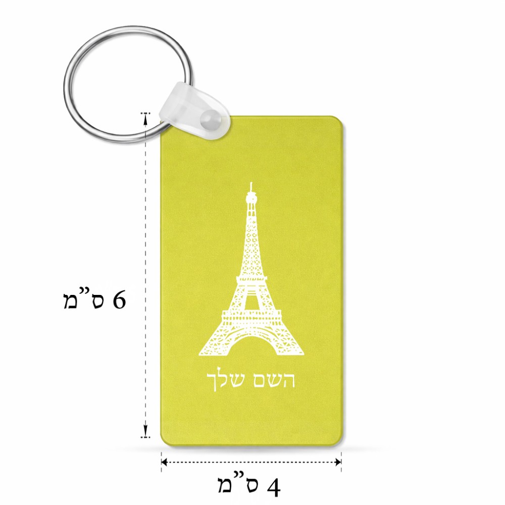 מחזיק מפתחות בצורת מלבן בעיצוב אישי עם השם שלך בעיצוב מגדל אייפל גודל המחזיק 6 × 4 ס"מ. את השם המבוקש ניתן לציין בהזמנה, אם לא צויין אנחנו ניצור קשר לבירור.