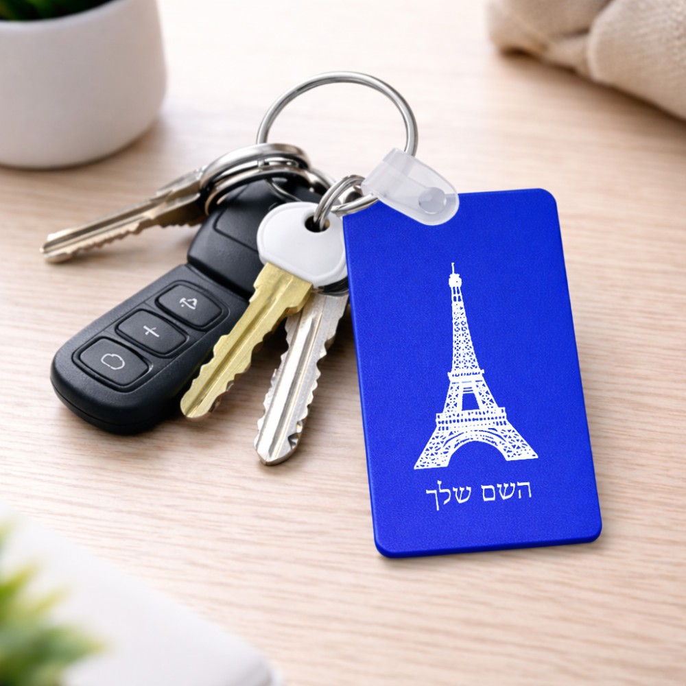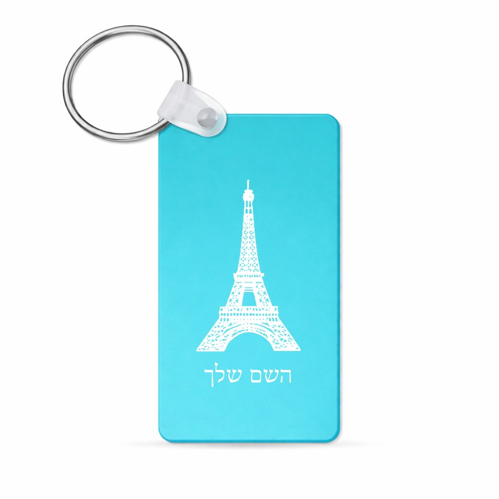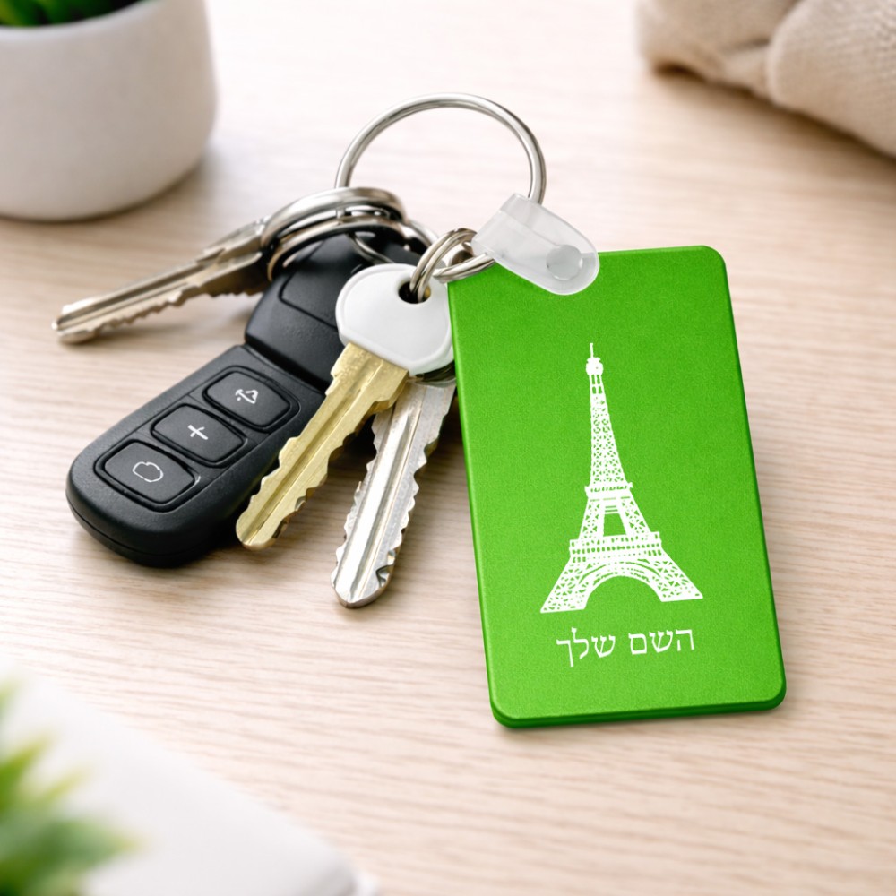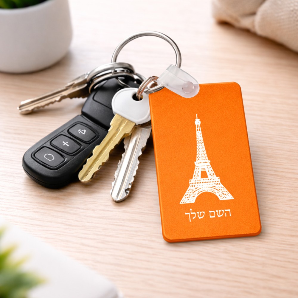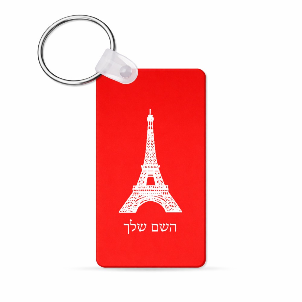 מחזיק מפתחות בצורת מלבן בעיצוב אישי עם השם שלך בעיצוב מגדל אייפל גודל המחזיק 6 × 4 ס"מ. את השם המבוקש ניתן לציין בהזמנה, אם לא צויין אנחנו ניצור קשר לבירור.