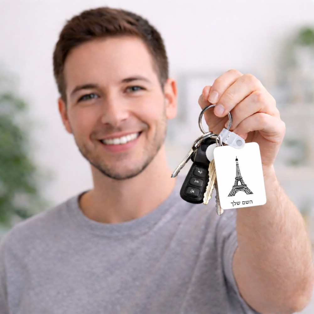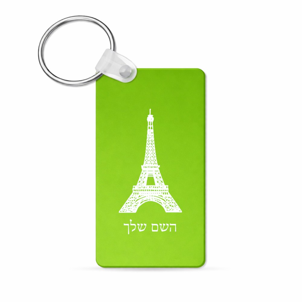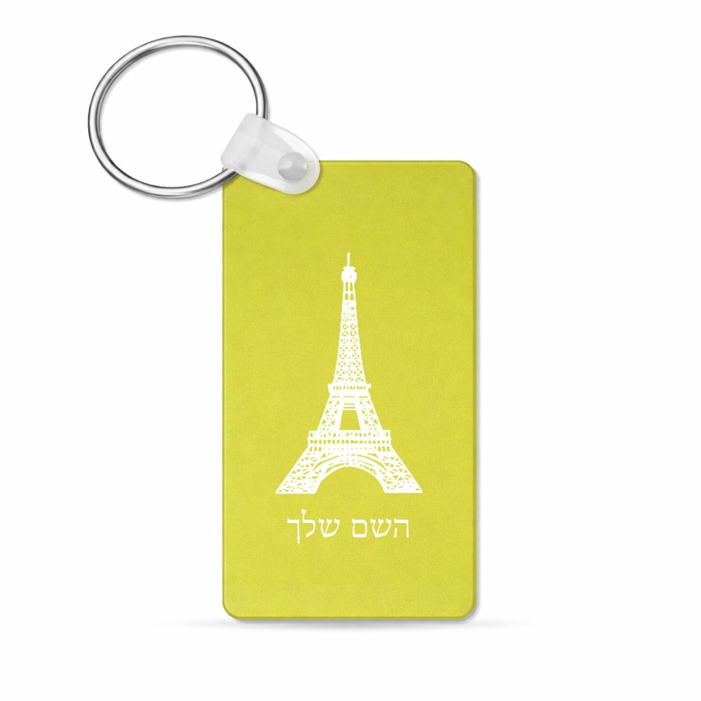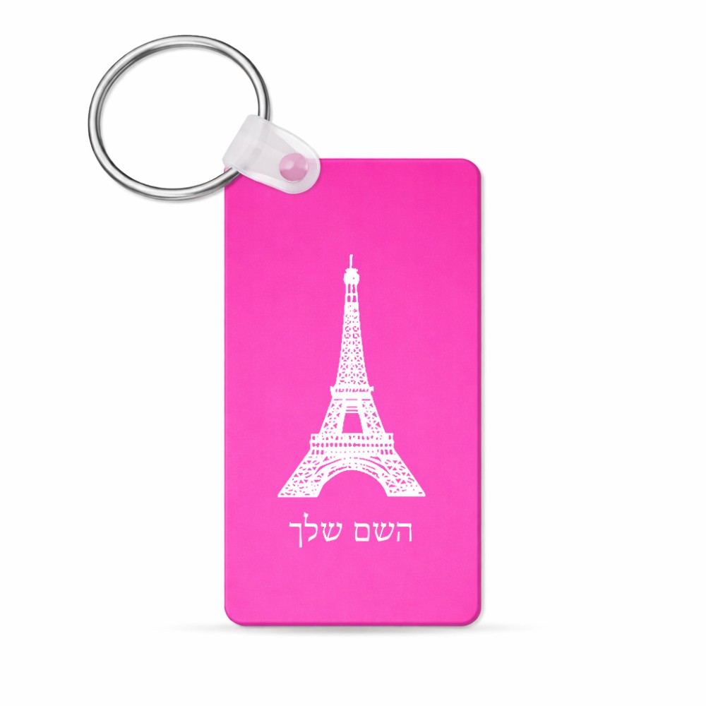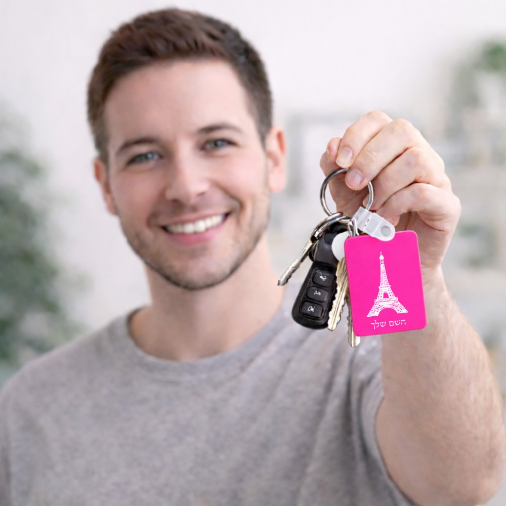 מחזיק מפתחות בצורת מלבן בעיצוב אישי עם השם שלך בעיצוב מגדל אייפל גודל המחזיק 6 × 4 ס"מ. את השם המבוקש ניתן לציין בהזמנה, אם לא צויין אנחנו ניצור קשר לבירור.