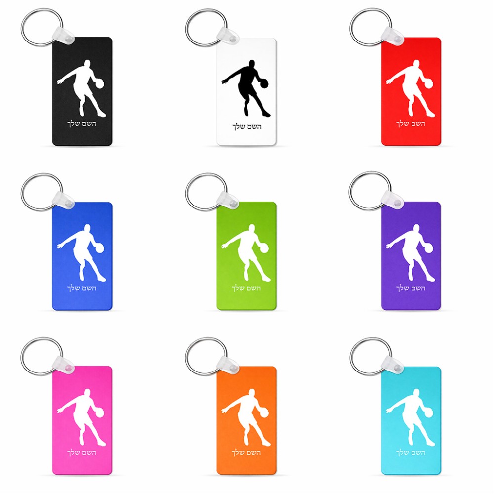 מחזיק מפתחות בצורת מלבן בעיצוב אישי עם השם שלך בעיצוב שחקן כדורסל גודל המחזיק 6 × 4 ס"מ