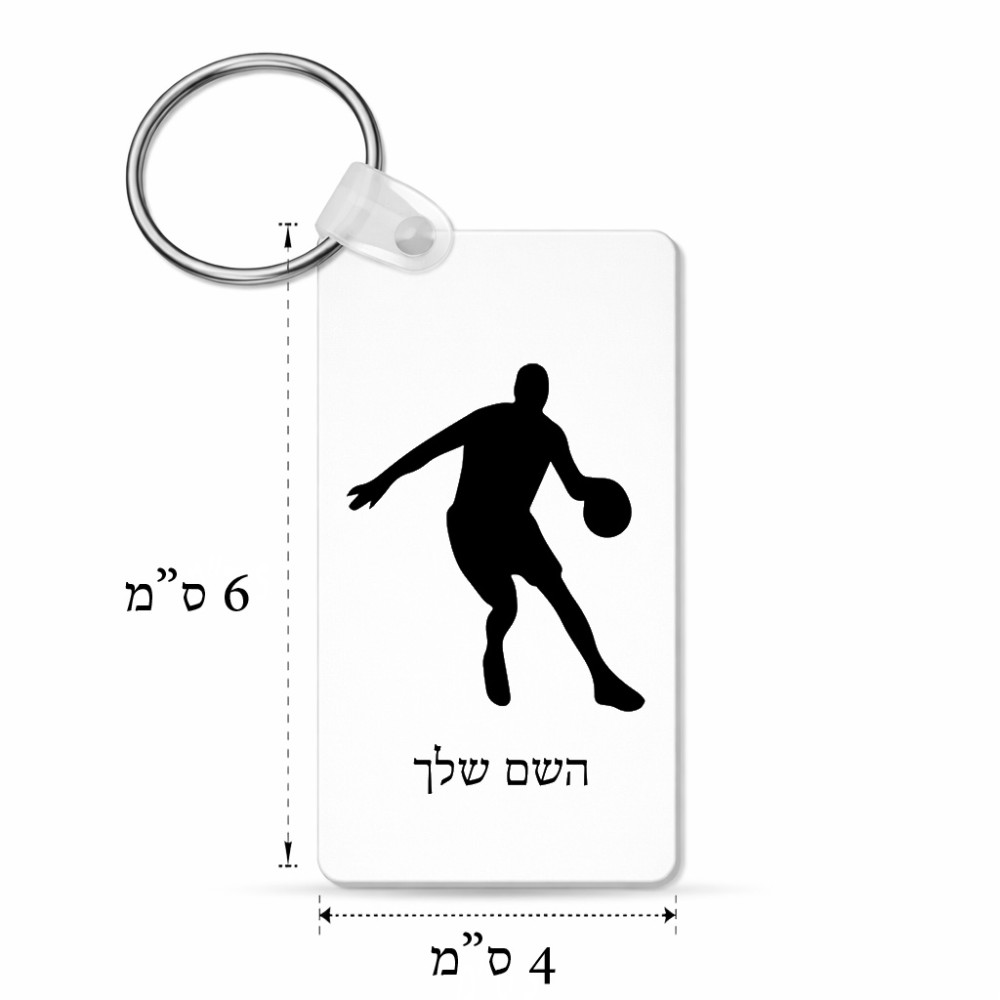 מחזיק מפתחות בצורת מלבן בעיצוב אישי עם השם שלך בעיצוב שחקן כדורסל גודל המחזיק 6 × 4 ס"מ. את השם המבוקש ניתן לציין בהזמנה, אם לא צויין אנחנו ניצור קשר לבירור.