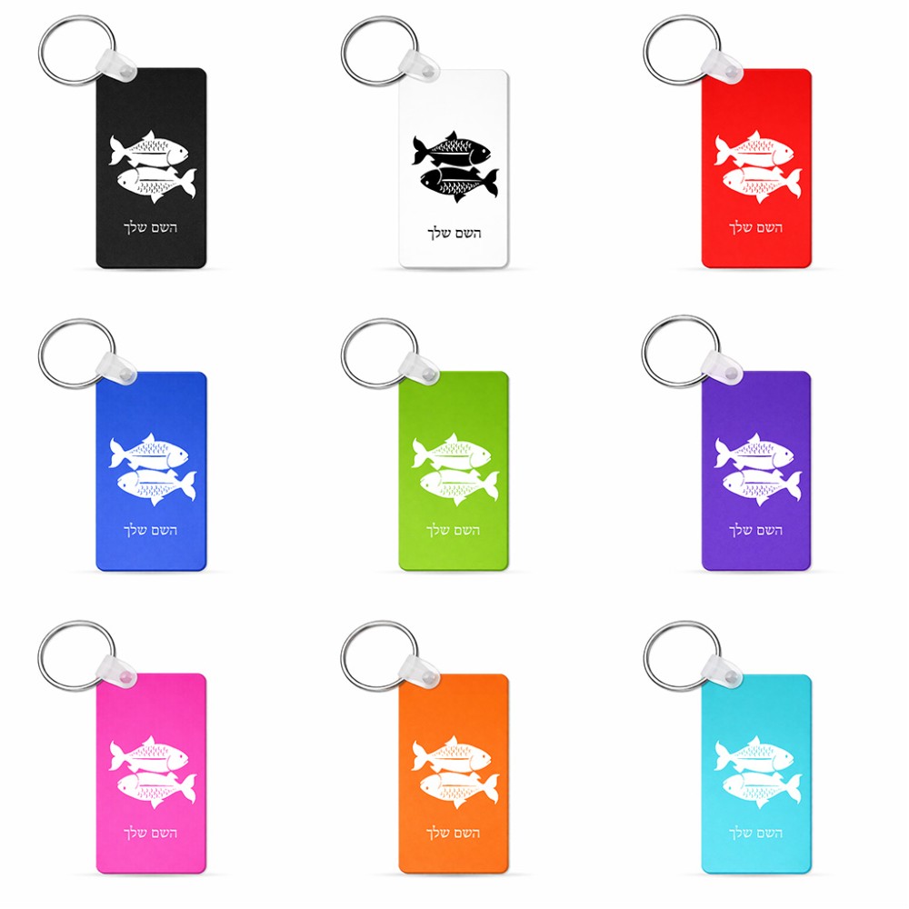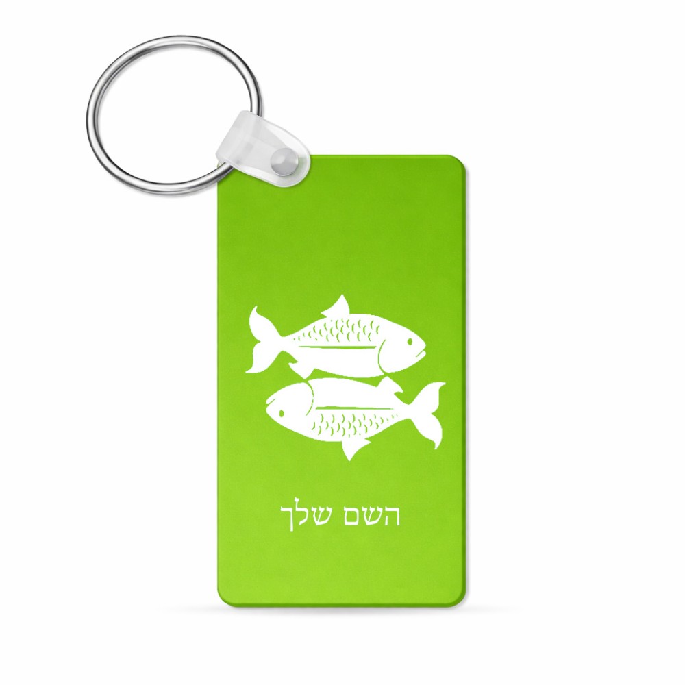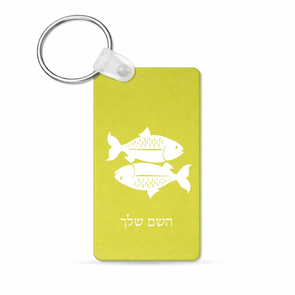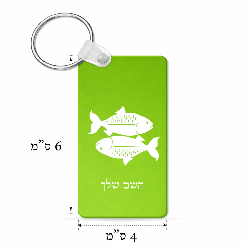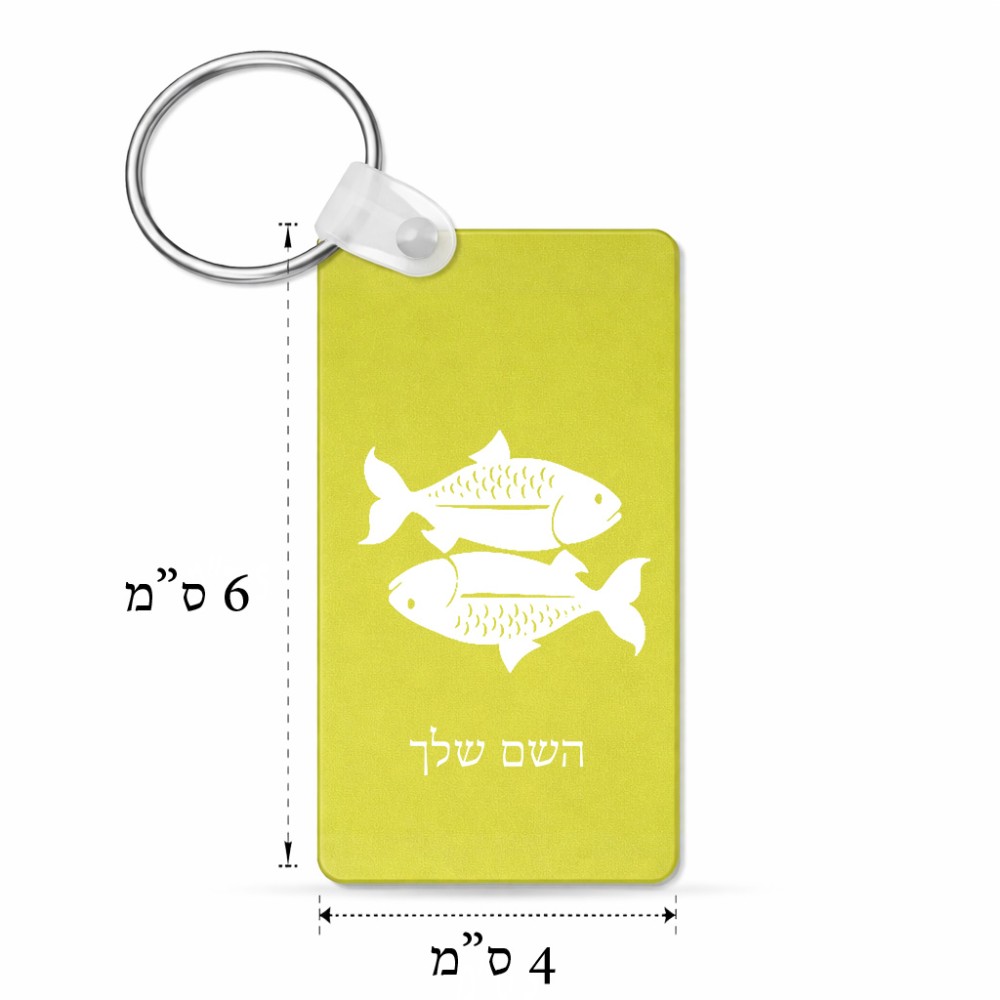 מחזיק מפתחות בצורת מלבן בעיצוב אישי עם השם שלך בעיצוב מזלות - דגים גודל המחזיק 6 × 4 ס"מ