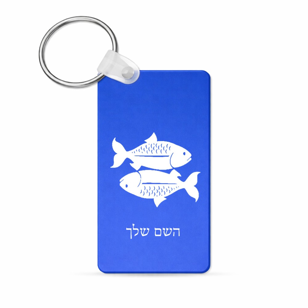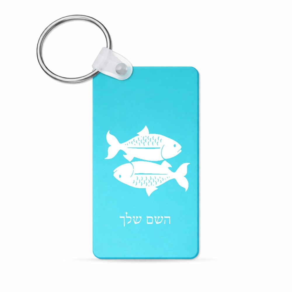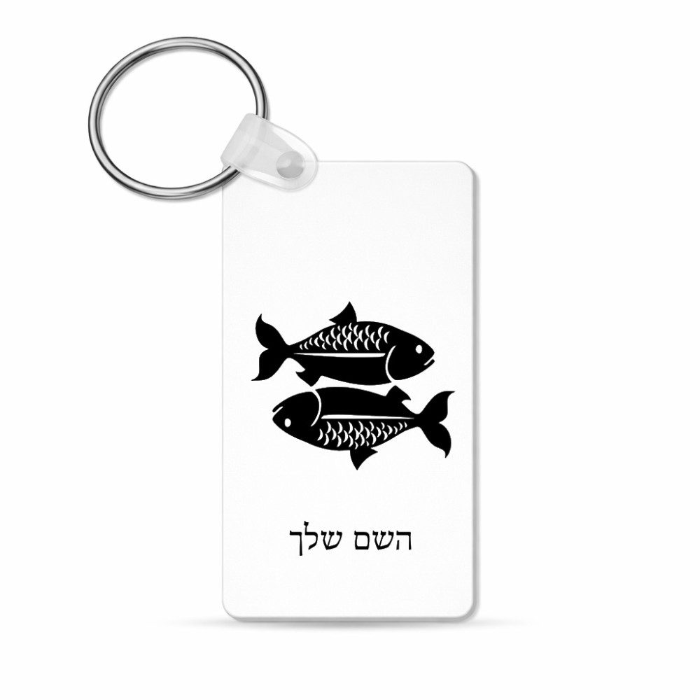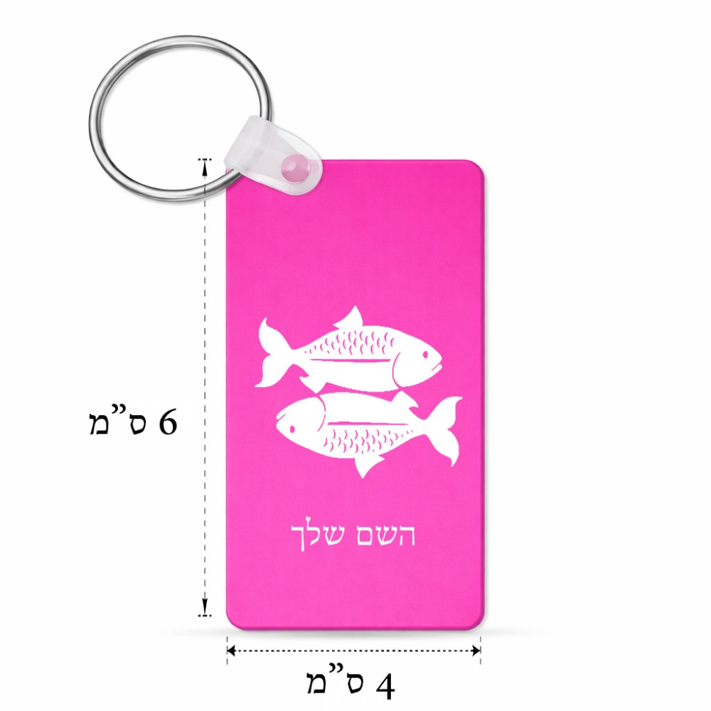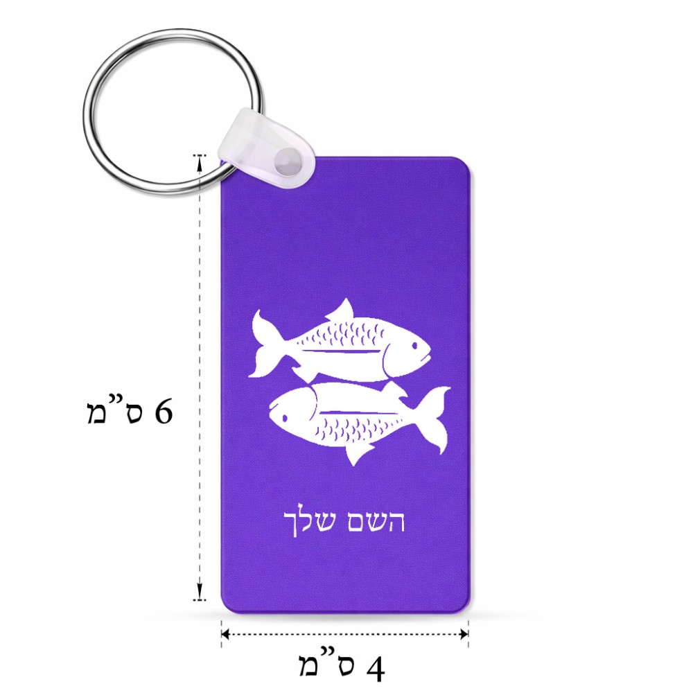 מחזיק מפתחות בצורת מלבן בעיצוב אישי עם השם שלך בעיצוב מזלות - דגים גודל המחזיק 6 × 4 ס"מ. את השם המבוקש ניתן לציין בהזמנה, אם לא צויין אנחנו ניצור קשר לבירור.