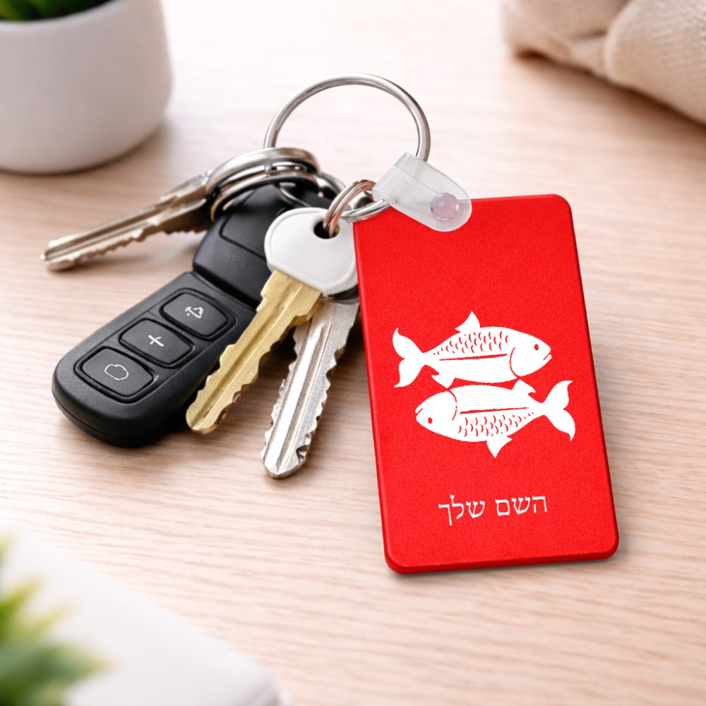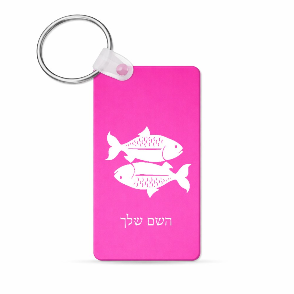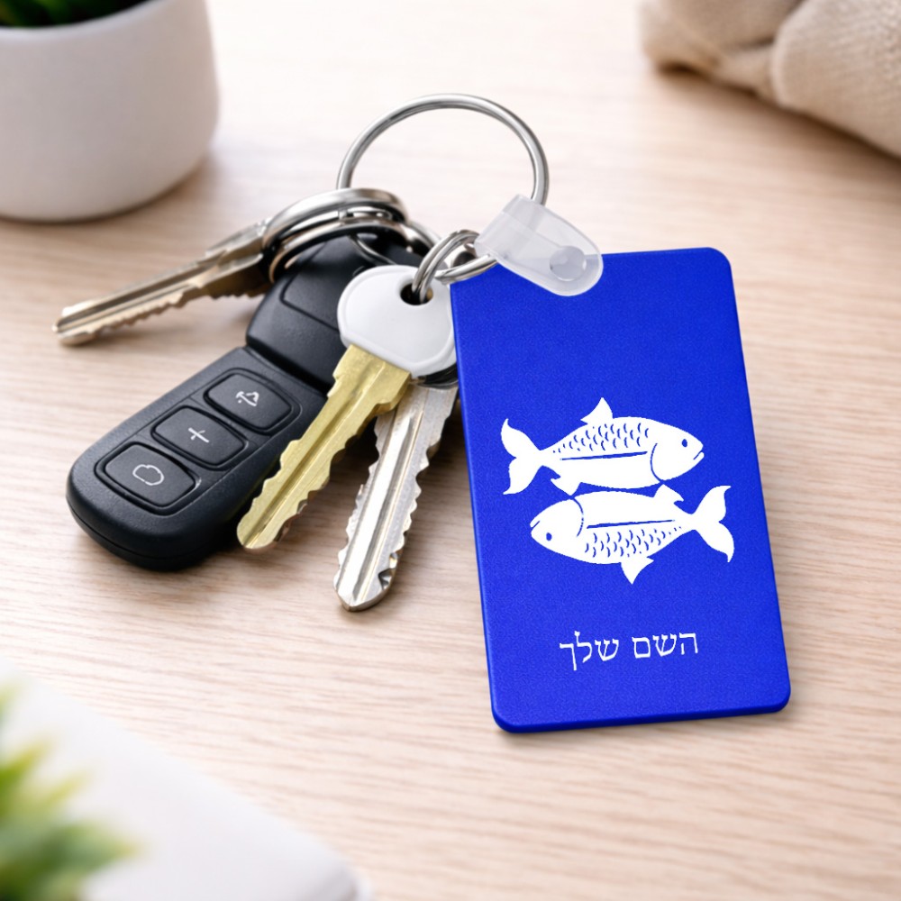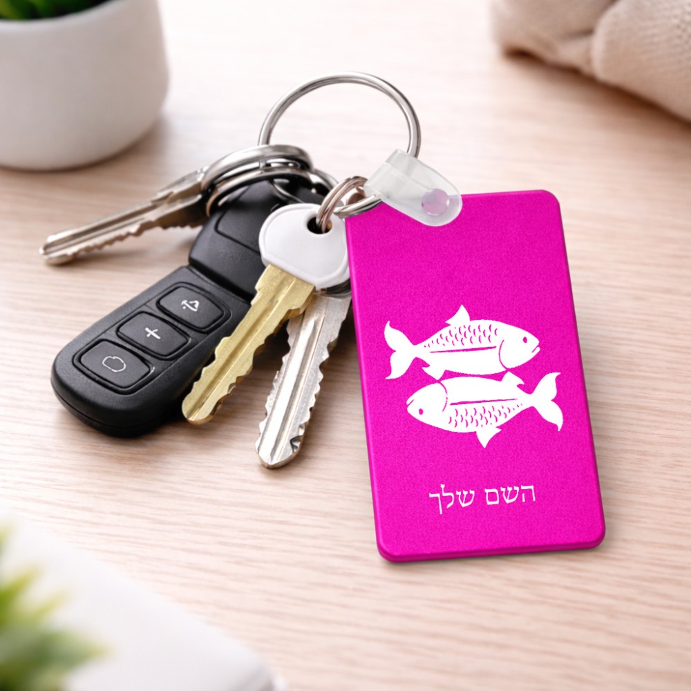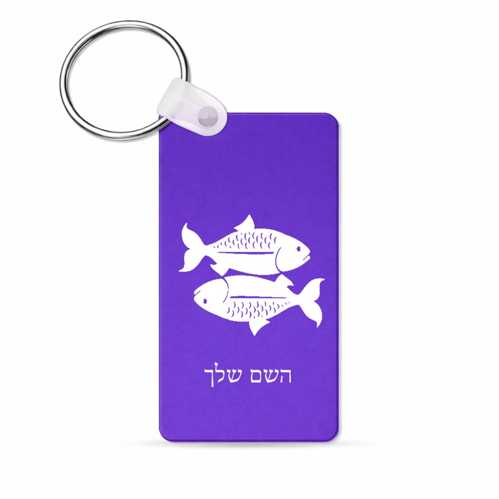 מחזיק מפתחות בצורת מלבן בעיצוב אישי עם השם שלך בעיצוב מזלות - דגים גודל המחזיק 6 × 4 ס"מ. את השם המבוקש ניתן לציין בהזמנה, אם לא צויין אנחנו ניצור קשר לבירור.