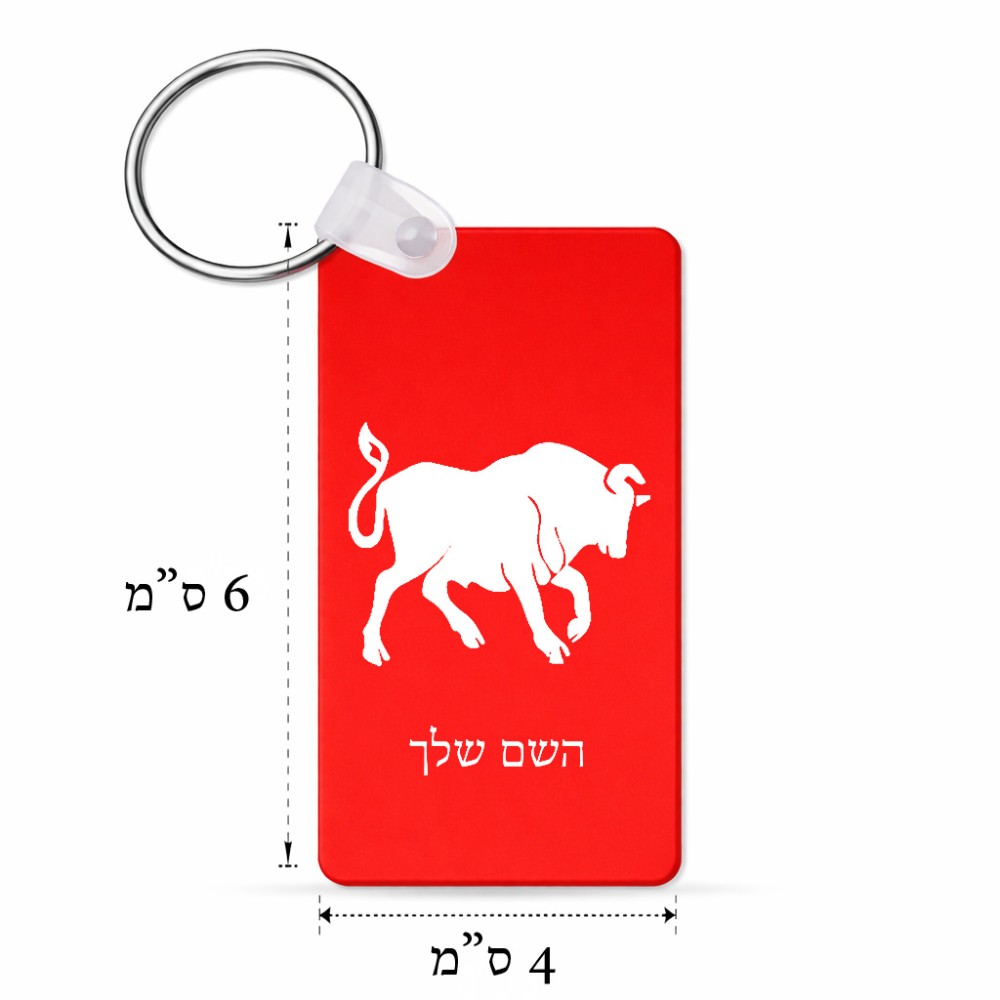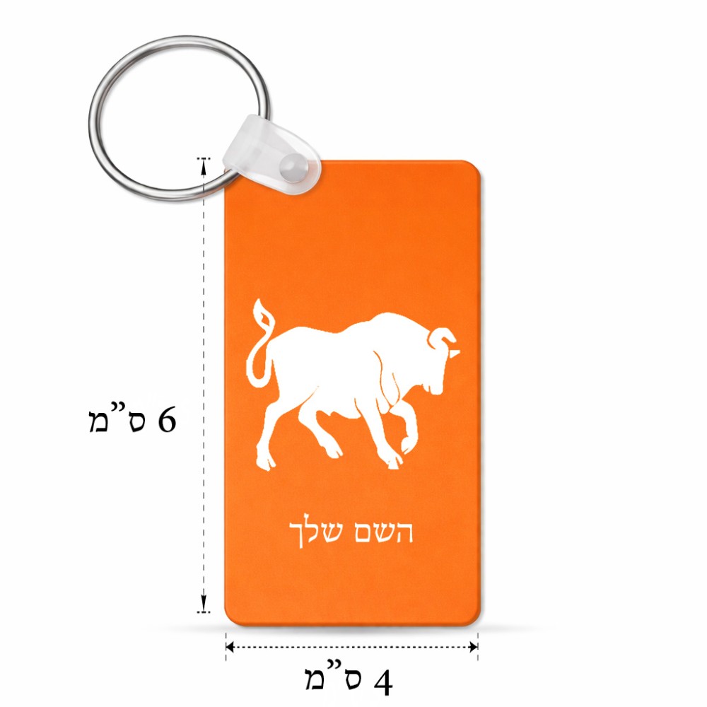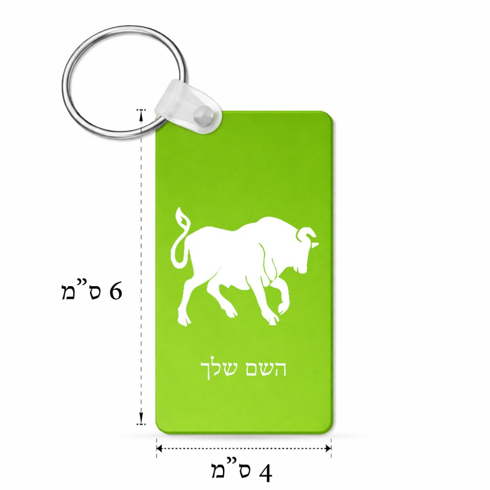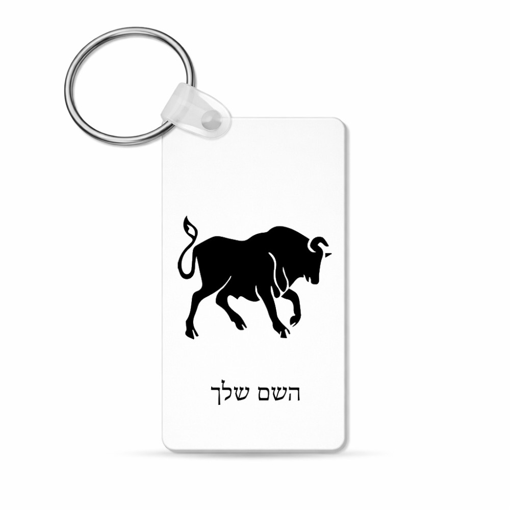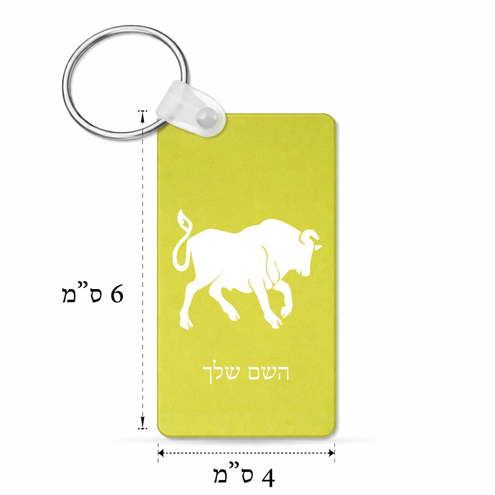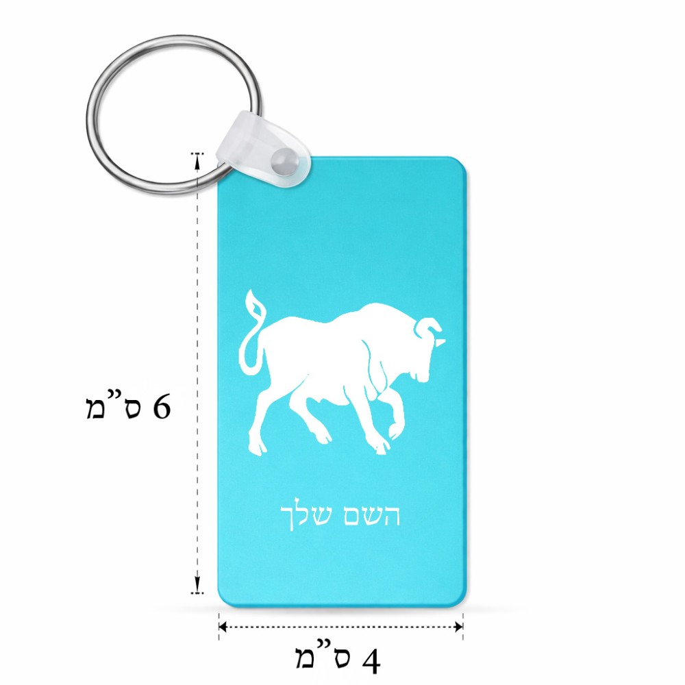 מחזיק מפתחות בצורת מלבן בעיצוב אישי עם השם שלך בעיצוב מזלות - שור גודל המחזיק 6 × 4 ס"מ. את השם המבוקש ניתן לציין בהזמנה, אם לא צויין אנחנו ניצור קשר לבירור.
