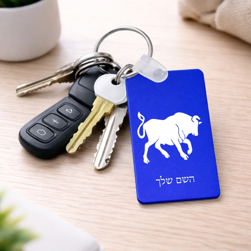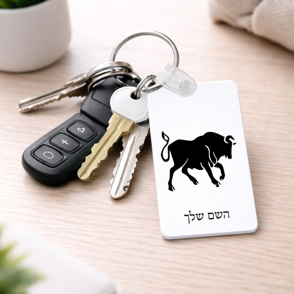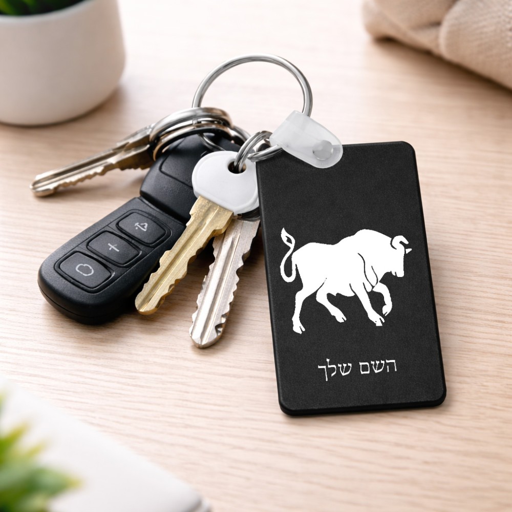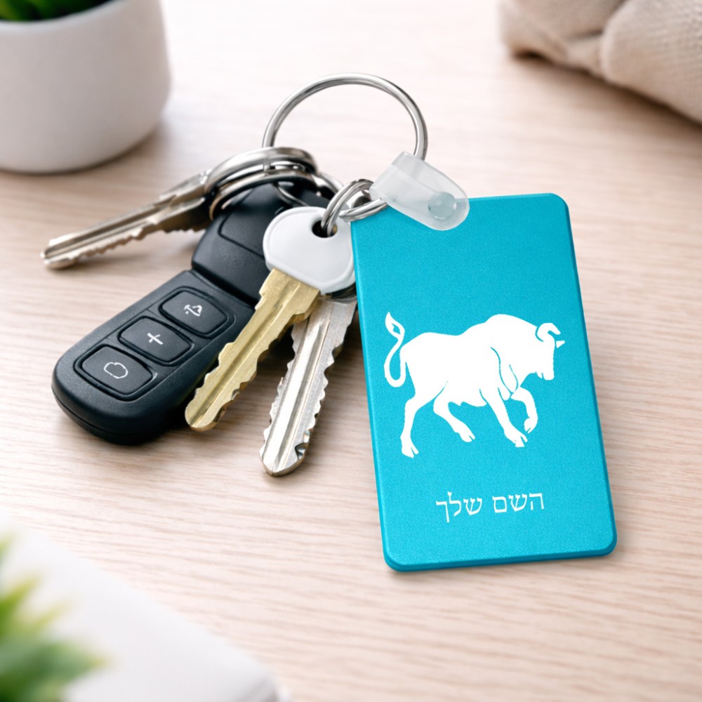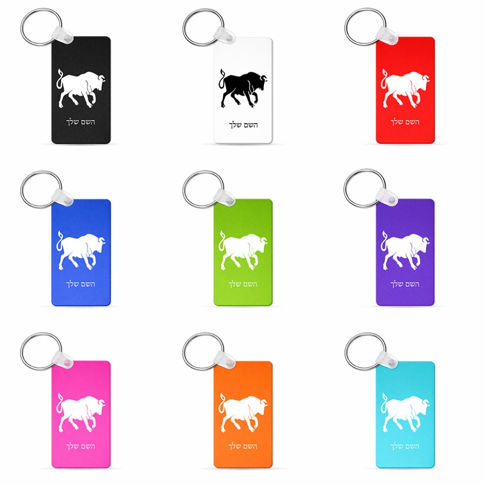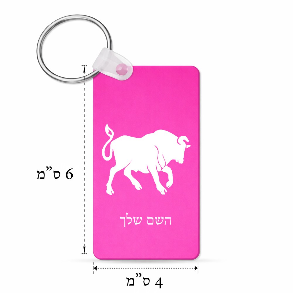 מחזיק מפתחות בצורת מלבן בעיצוב אישי עם השם שלך בעיצוב מזלות - שור גודל המחזיק 6 × 4 ס"מ. את השם המבוקש ניתן לציין בהזמנה, אם לא צויין אנחנו ניצור קשר לבירור.