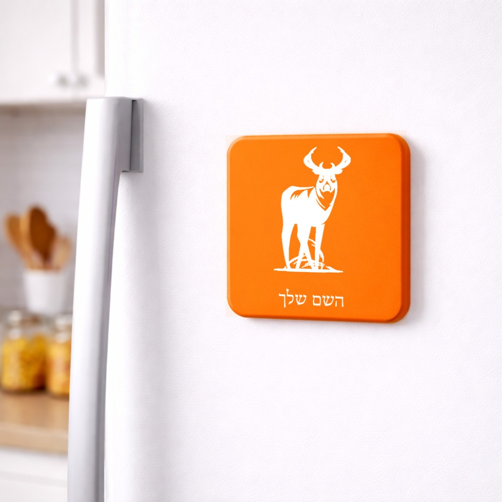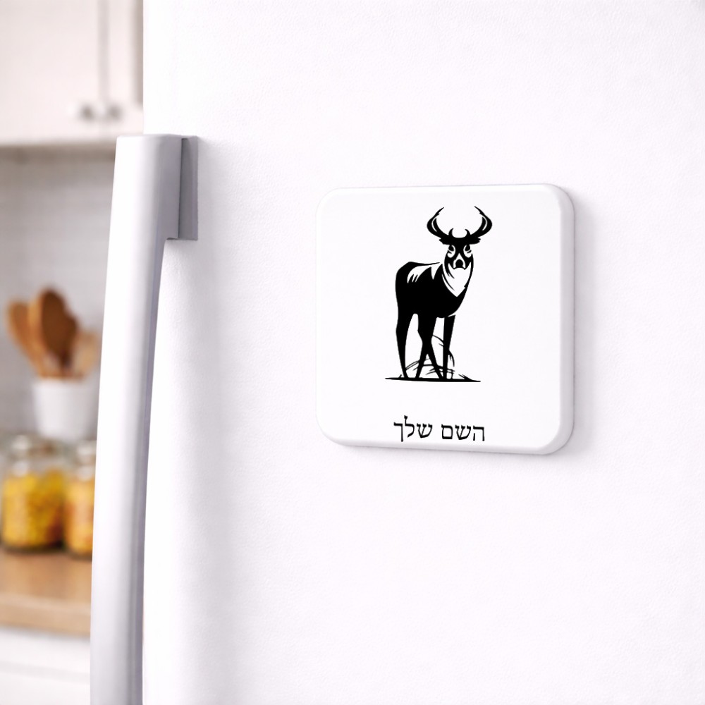 מגנט למקרר בעיצוב אישי עם השם שלך בעיצוב צבי גודל המגנט 6.5 × 6.5 ס"מ. את השם המבוקש ניתן לציין בהזמנה, אם לא צויין אנחנו ניצור קשר לבירור.