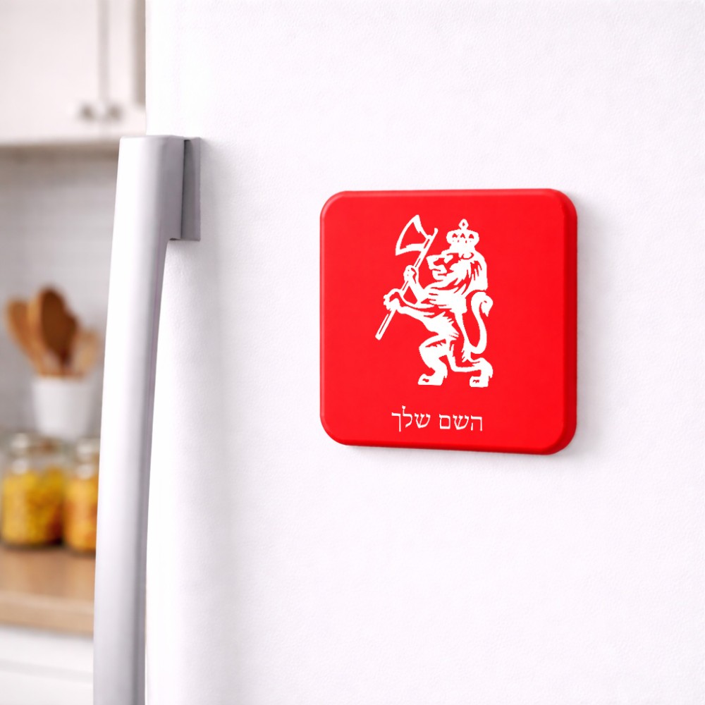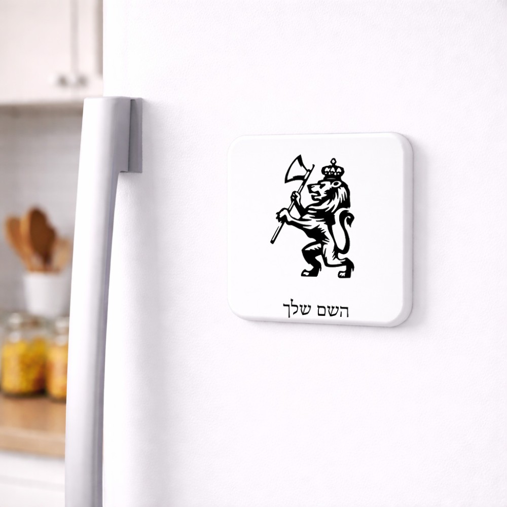 מגנט למקרר בעיצוב אישי עם השם שלך בעיצוב אריה גודל המגנט 6.5 × 6.5 ס"מ. את השם המבוקש ניתן לציין בהזמנה, אם לא צויין אנחנו ניצור קשר לבירור.