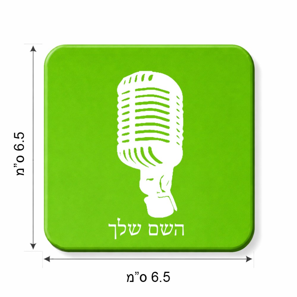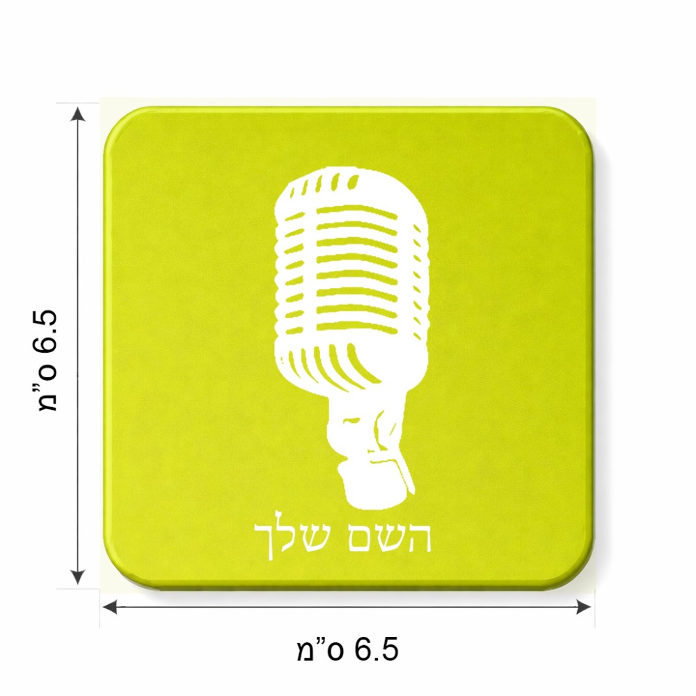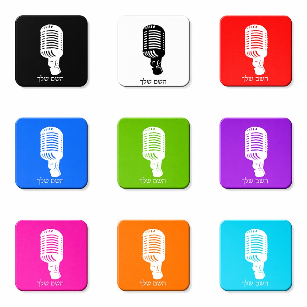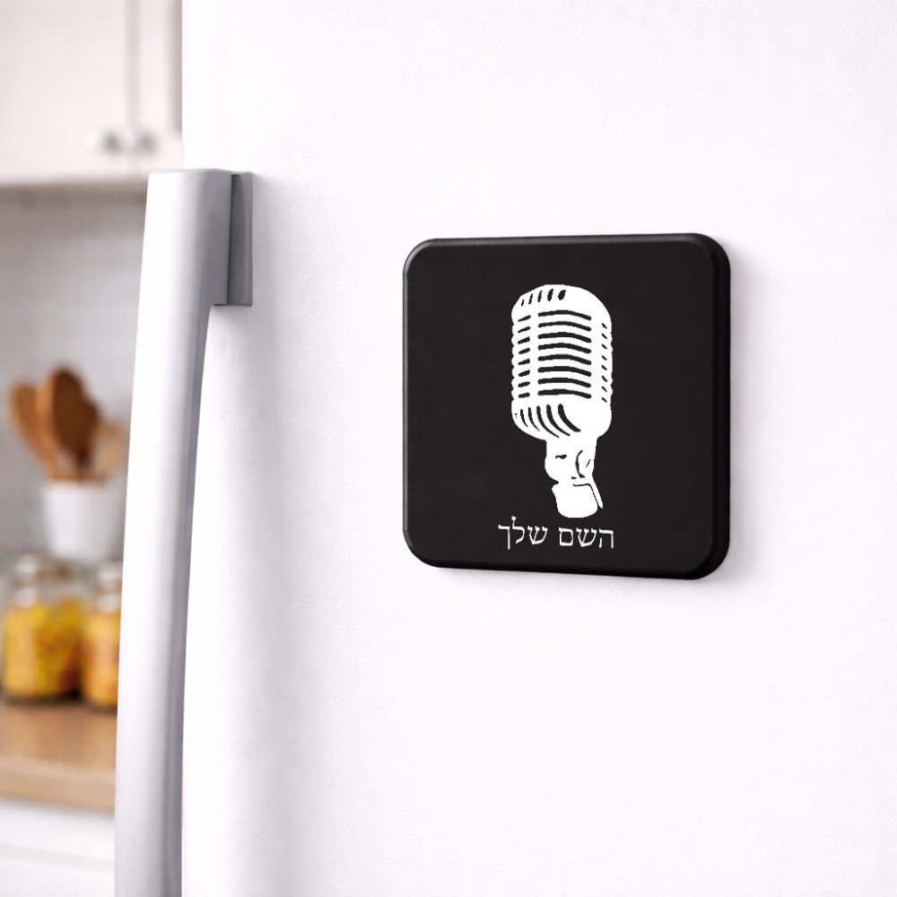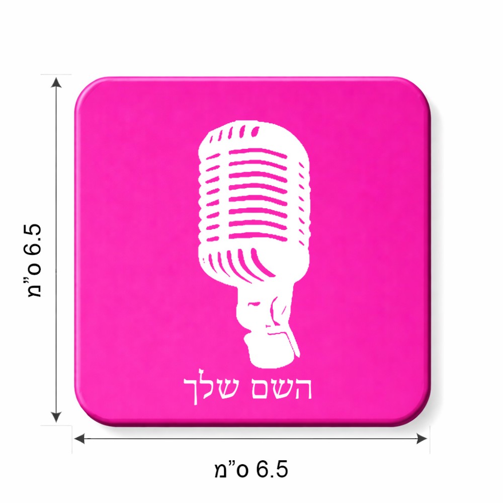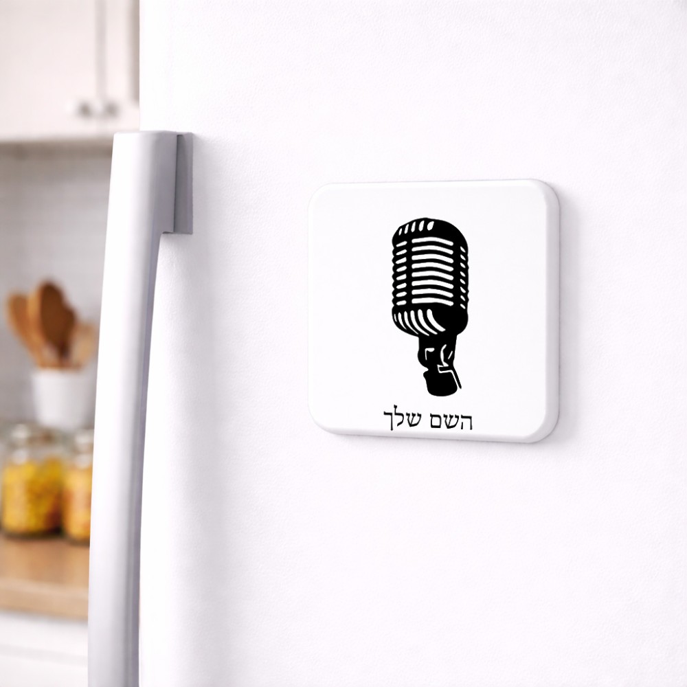 מגנט למקרר בעיצוב אישי עם השם שלך בעיצוב מיקרופון גודל המגנט 6.5 × 6.5 ס"מ. את השם המבוקש ניתן לציין בהזמנה, אם לא צויין אנחנו ניצור קשר לבירור.