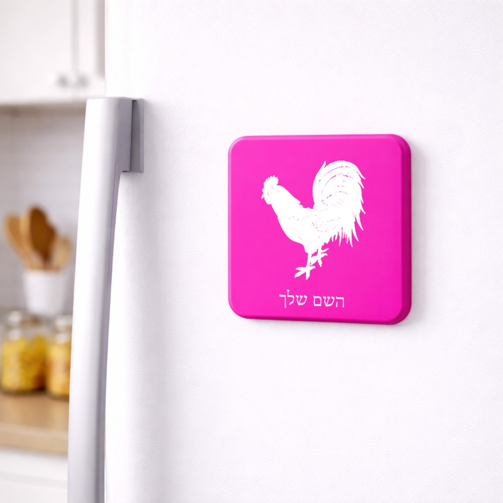 מגנט למקרר בעיצוב אישי עם השם שלך בעיצוב תרנגול גודל המגנט 6.5 × 6.5 ס"מ. את השם המבוקש ניתן לציין בהזמנה, אם לא צויין אנחנו ניצור קשר לבירור.