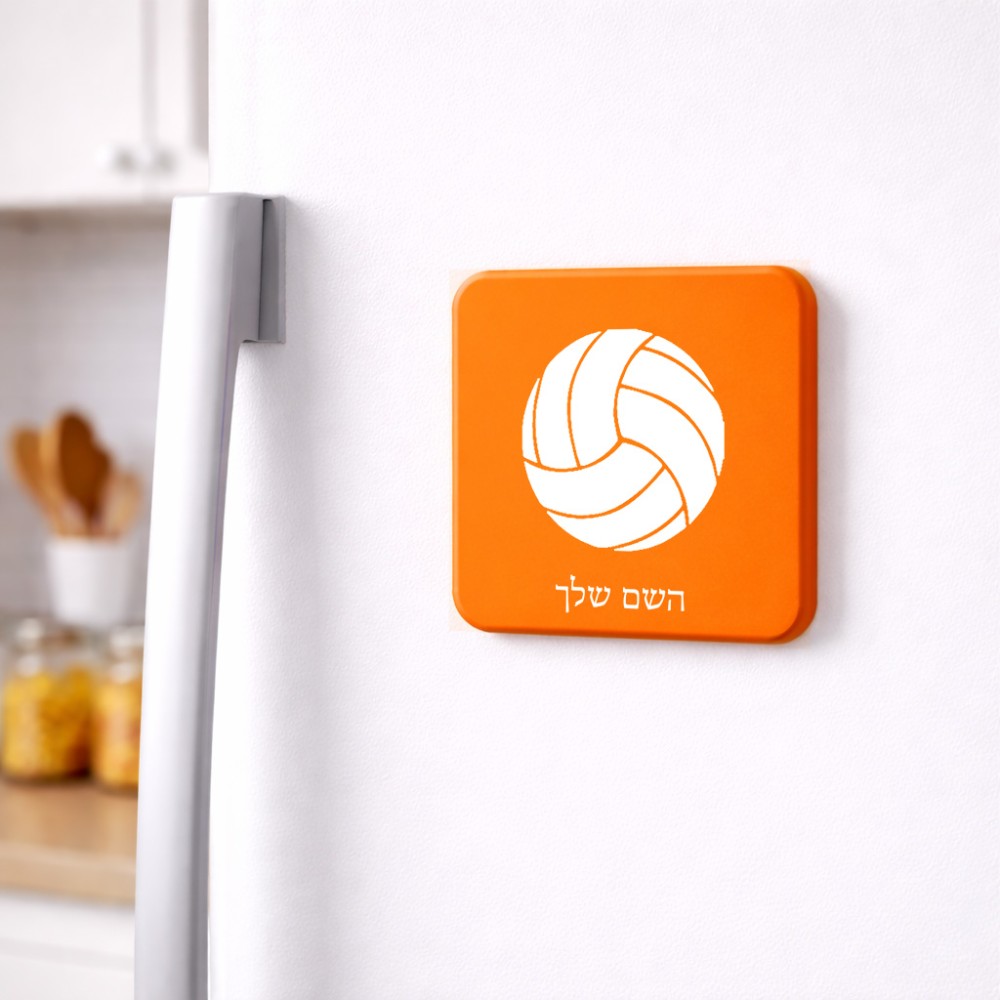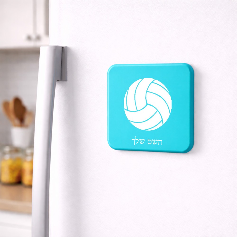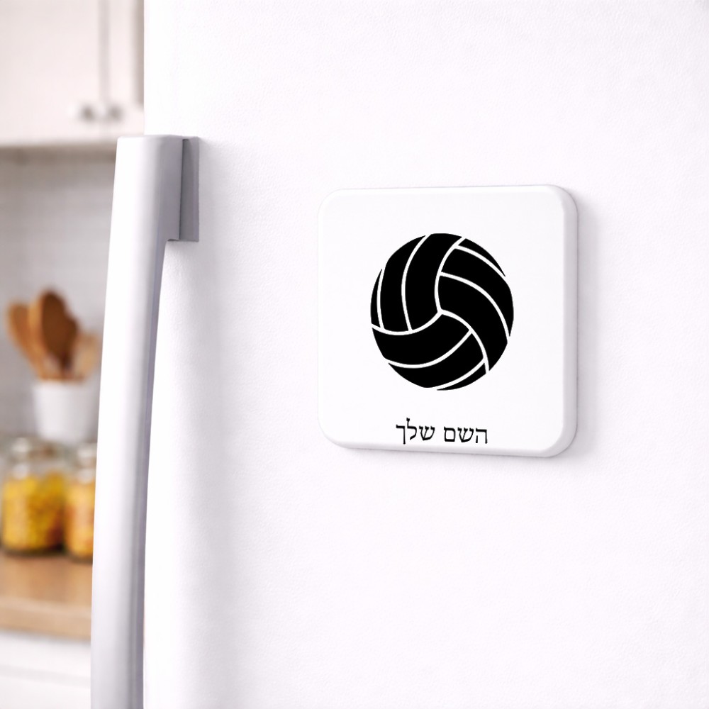 מגנט למקרר בעיצוב אישי עם השם שלך בעיצוב כדור כדורעף גודל המגנט 6.5 × 6.5 ס"מ