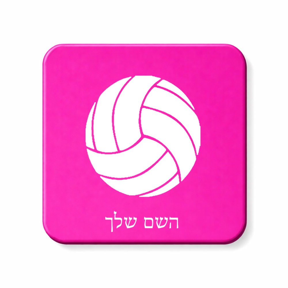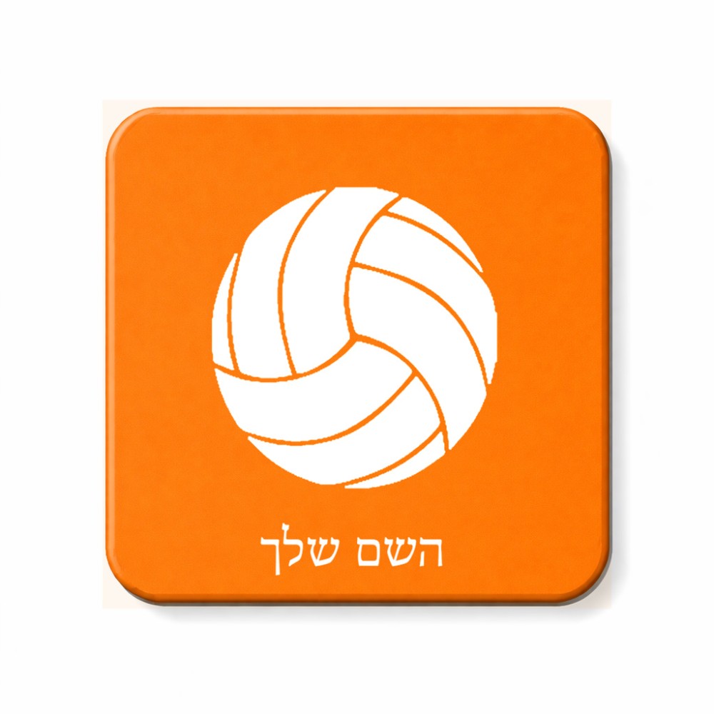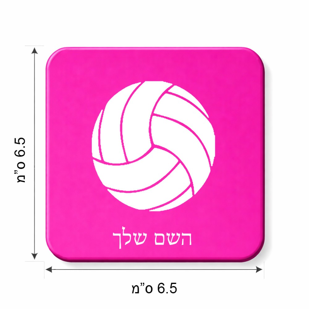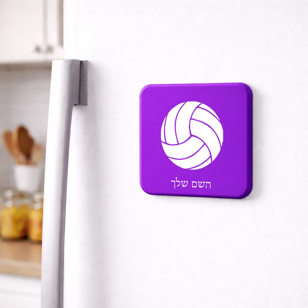 מגנט למקרר בעיצוב אישי עם השם שלך בעיצוב כדור כדורעף גודל המגנט 6.5 × 6.5 ס"מ