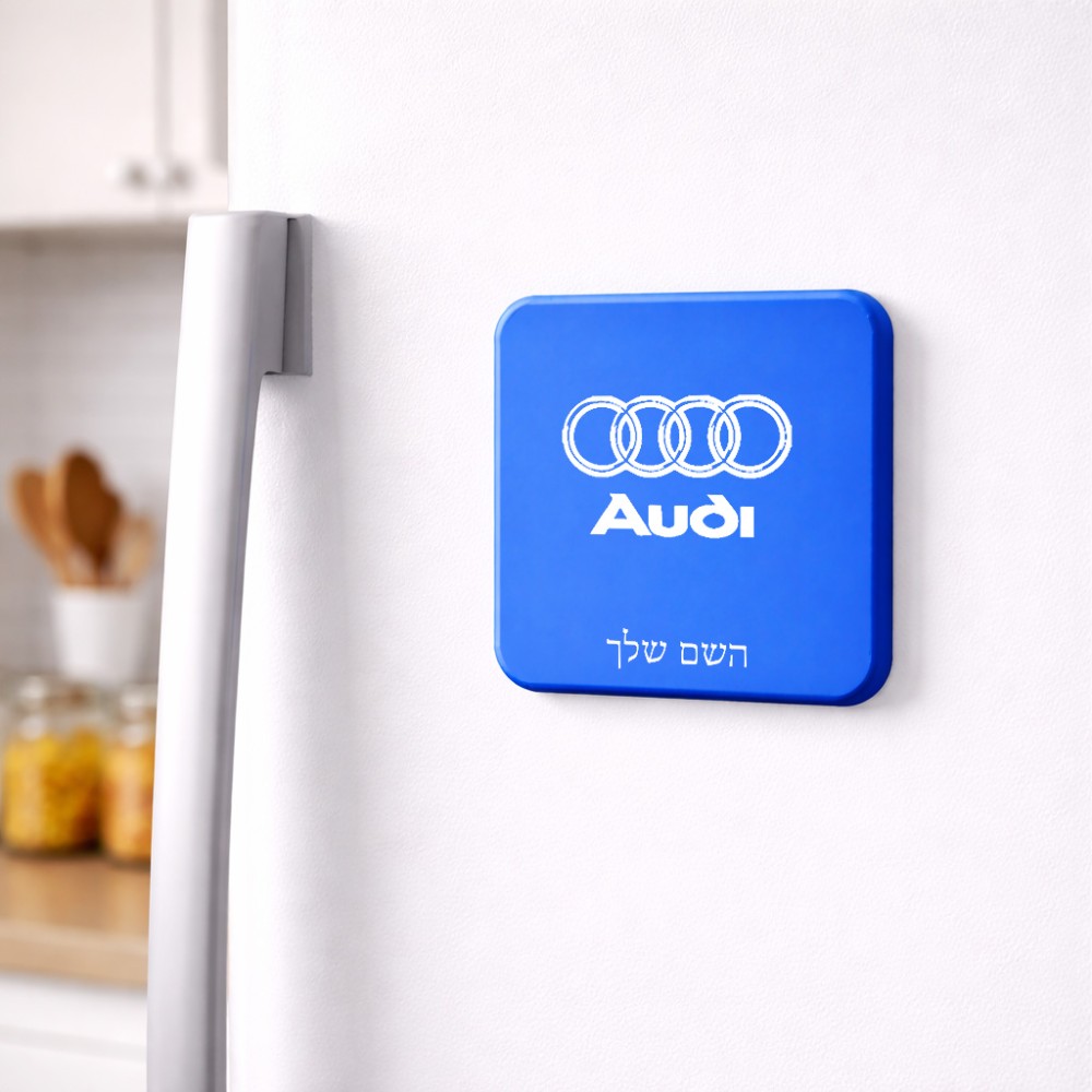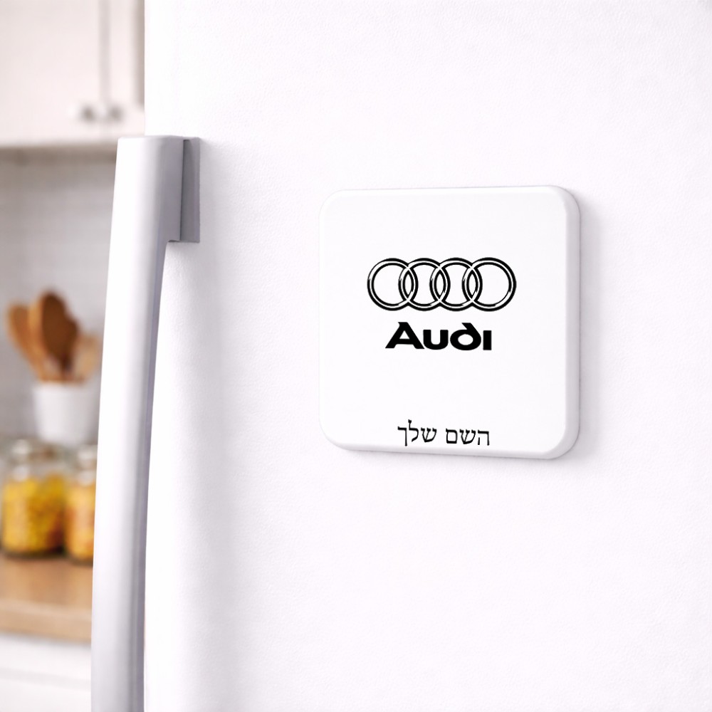 מגנט למקרר בעיצוב אישי עם השם שלך בעיצוב אאודי גודל המגנט 6.5 × 6.5 ס"מ. את השם המבוקש ניתן לציין בהזמנה, אם לא צויין אנחנו ניצור קשר לבירור.