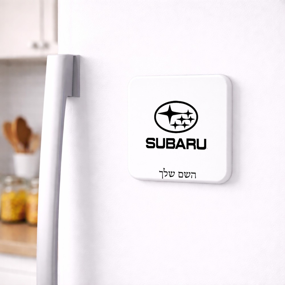 מגנט למקרר בעיצוב אישי עם השם שלך בעיצוב סובארו גודל המגנט 6.5 × 6.5 ס"מ. את השם המבוקש ניתן לציין בהזמנה, אם לא צויין אנחנו ניצור קשר לבירור.