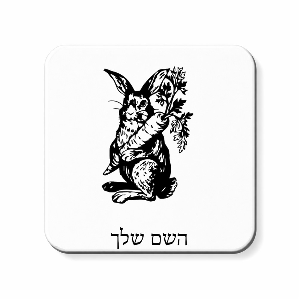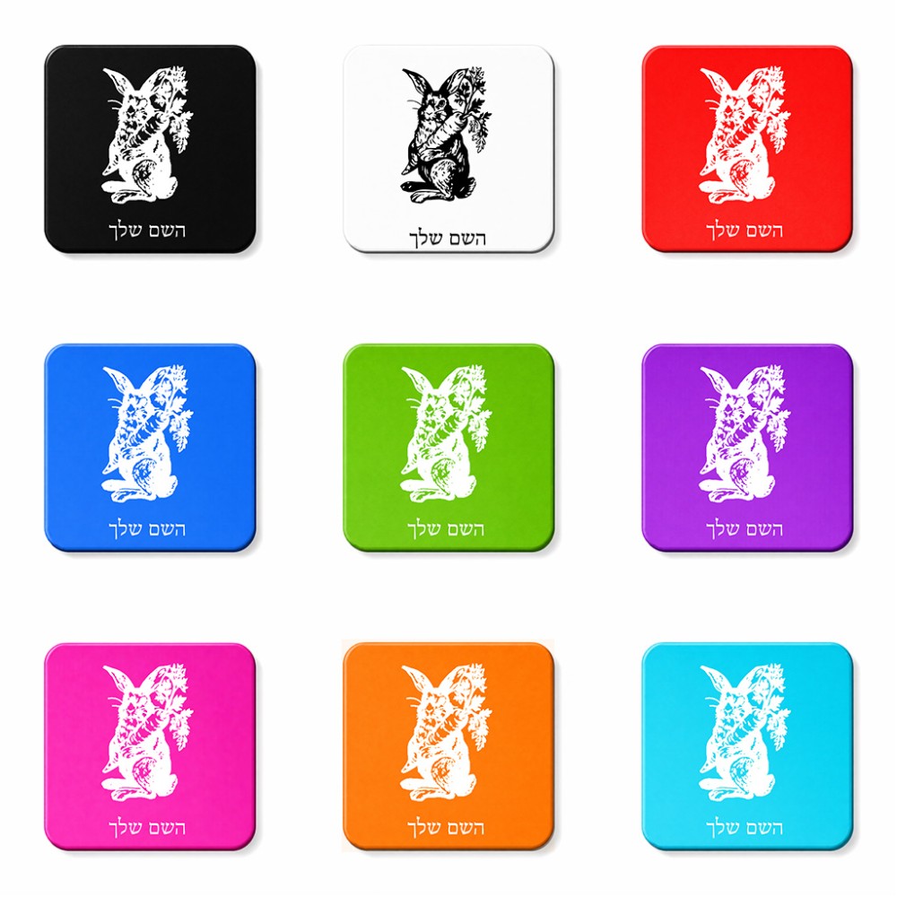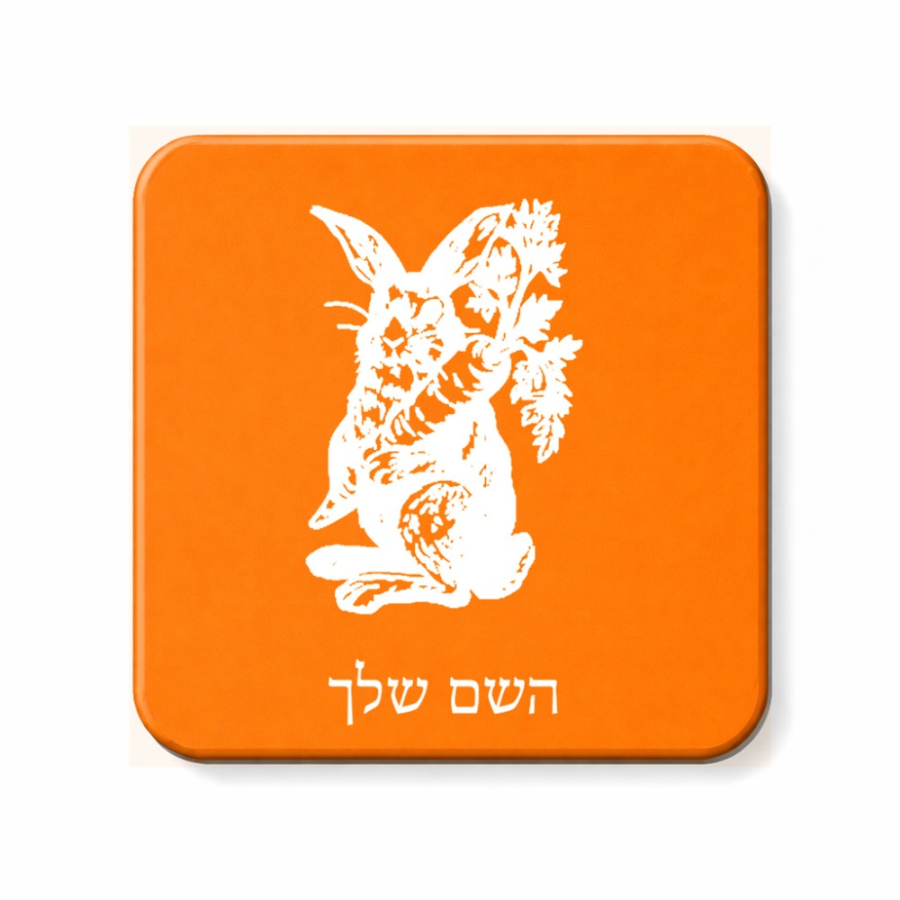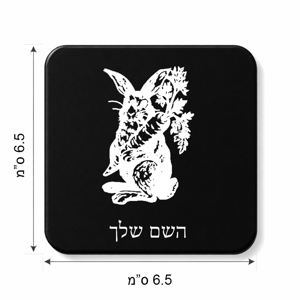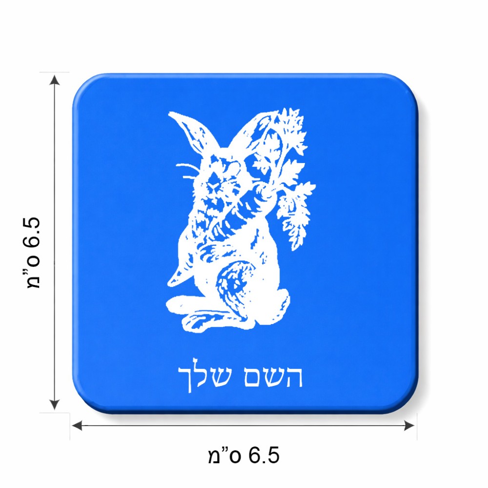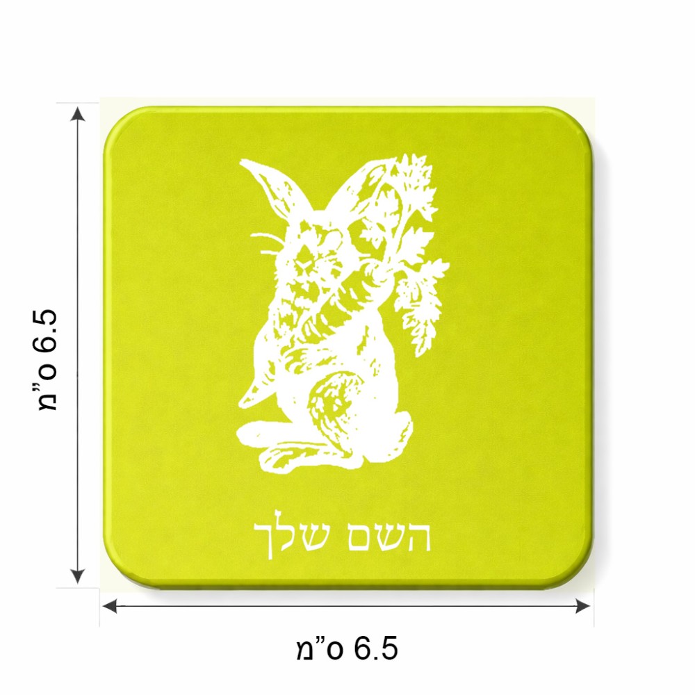 מגנט למקרר בעיצוב אישי עם השם שלך בעיצוב ארנב מחזיק גזר גודל המגנט 6.5 × 6.5 ס"מ. את השם המבוקש ניתן לציין בהזמנה, אם לא צויין אנחנו ניצור קשר לבירור.