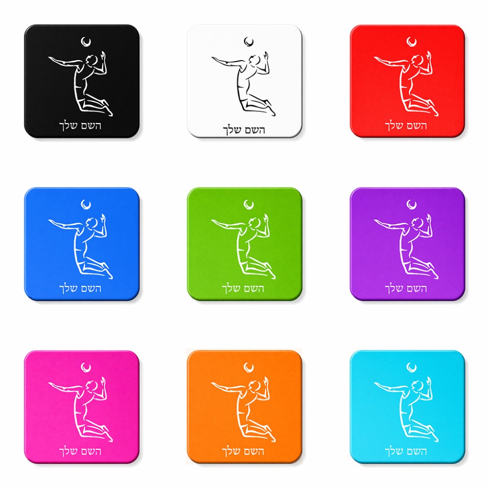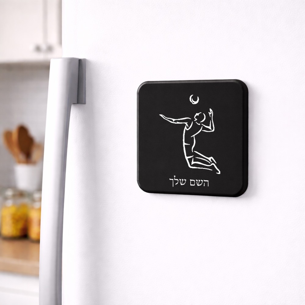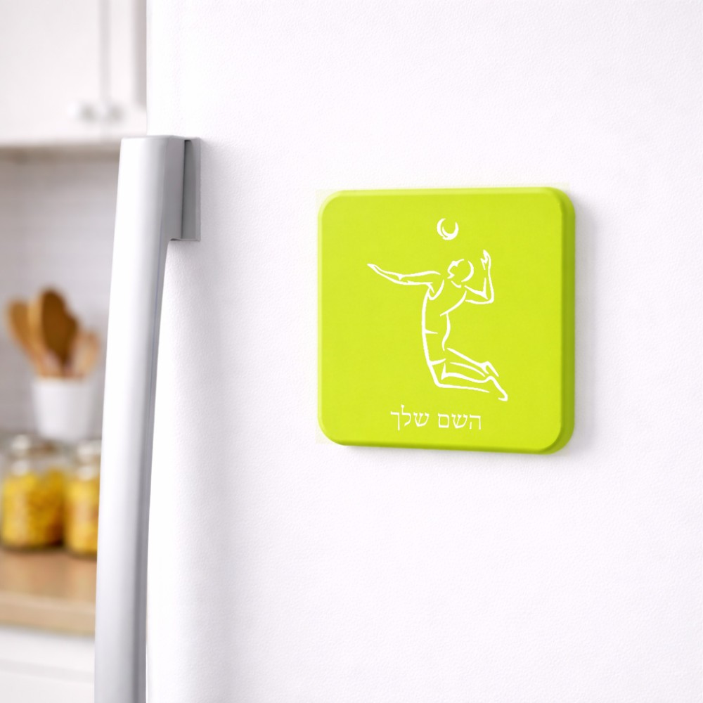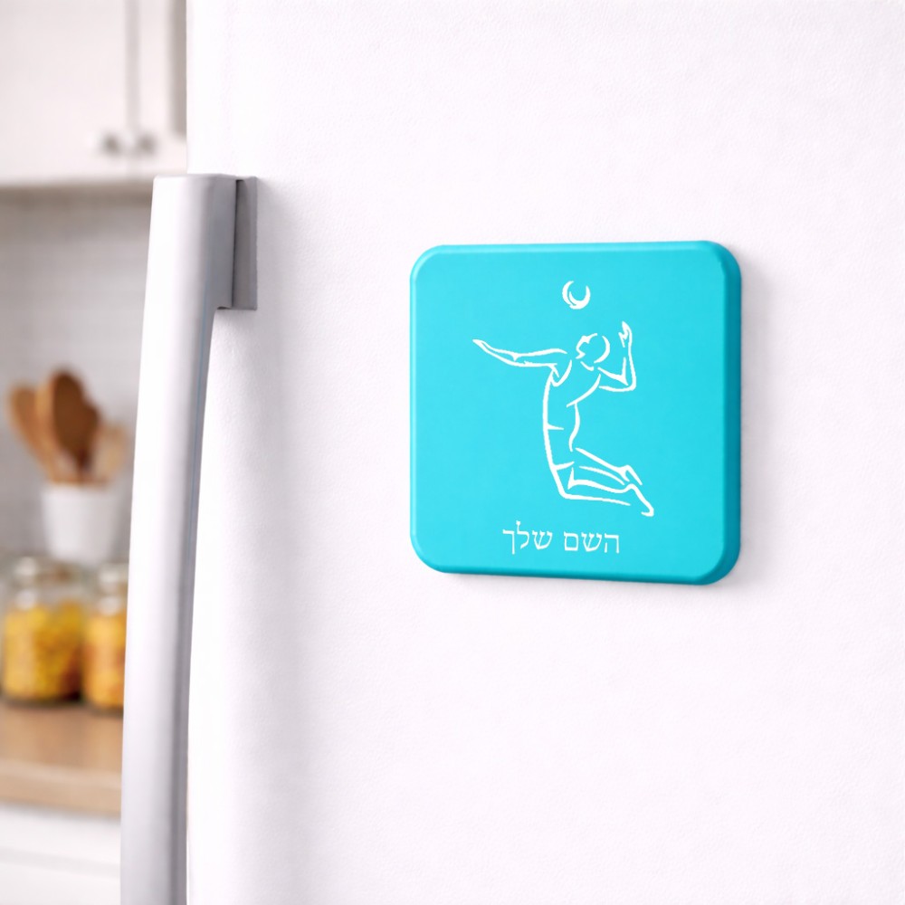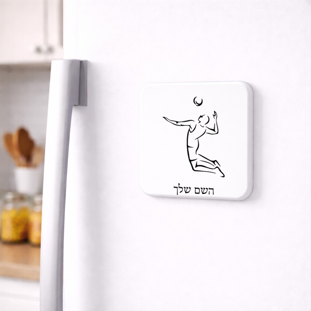 מגנט למקרר בעיצוב אישי עם השם שלך בעיצוב שחקן כדורעף גודל המגנט 6.5 × 6.5 ס"מ