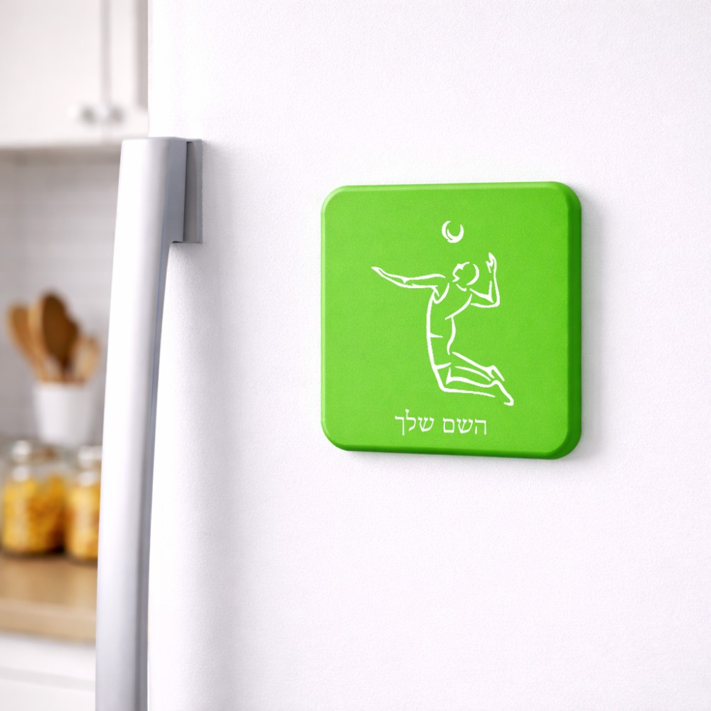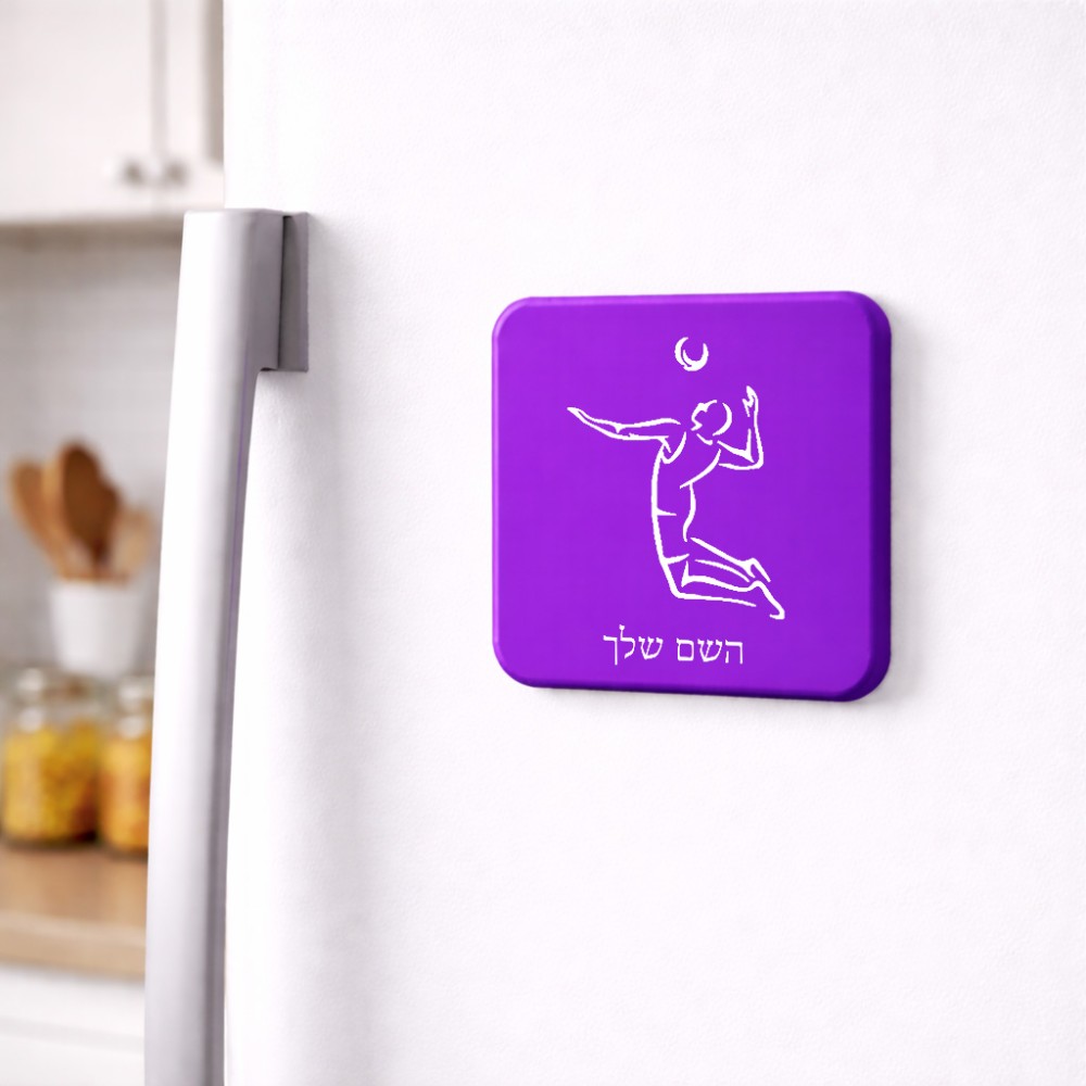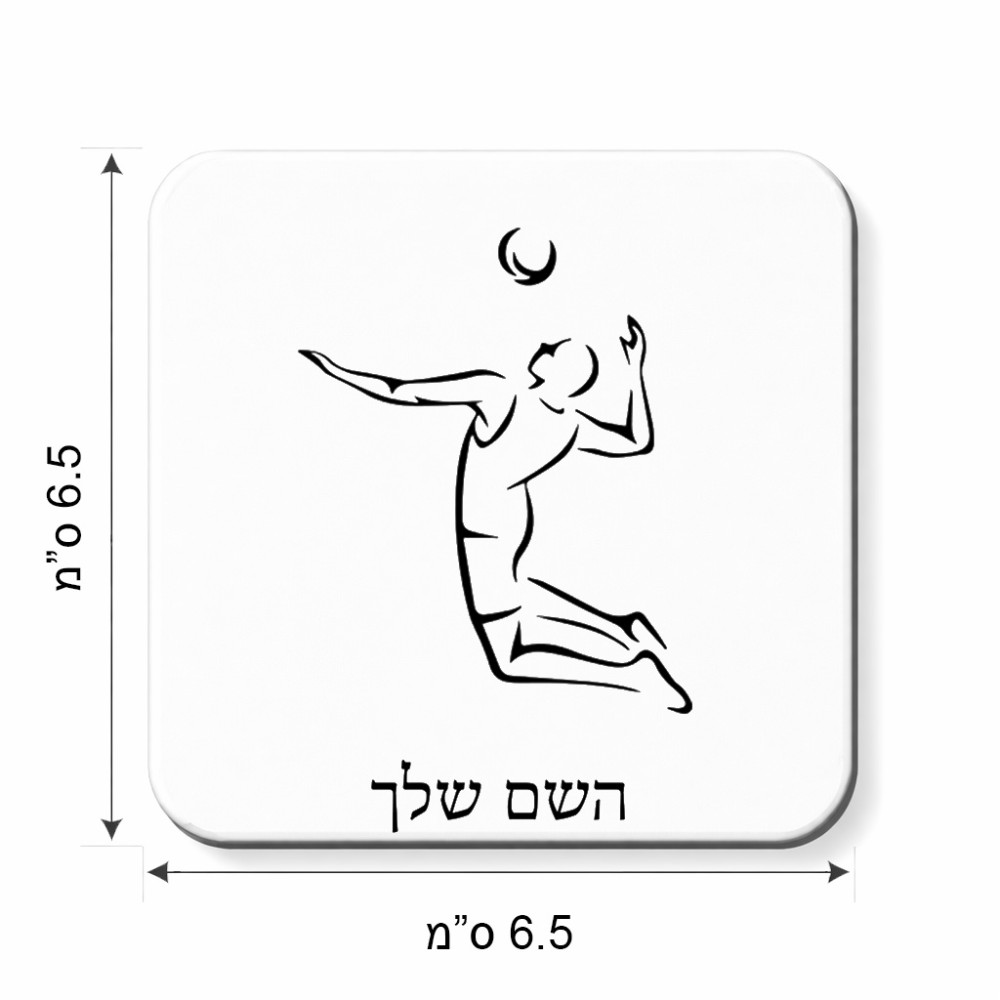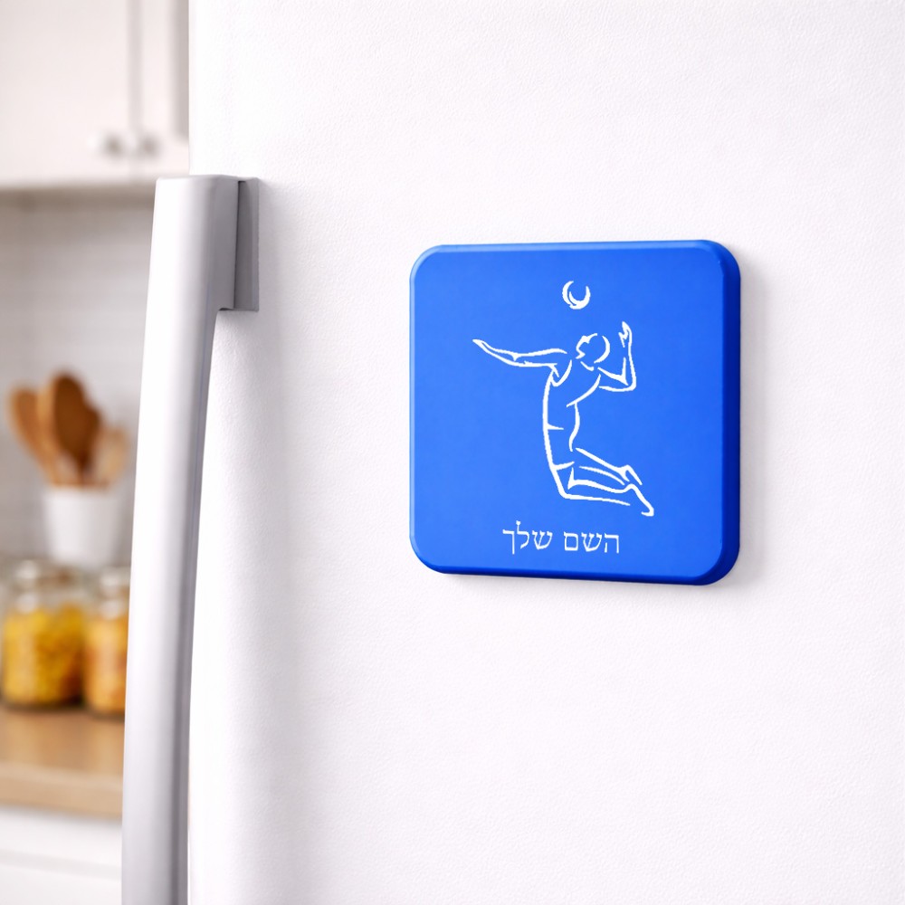מגנט למקרר בעיצוב אישי עם השם שלך בעיצוב שחקן כדורעף גודל המגנט 6.5 × 6.5 ס"מ. את השם המבוקש ניתן לציין בהזמנה, אם לא צויין אנחנו ניצור קשר לבירור.