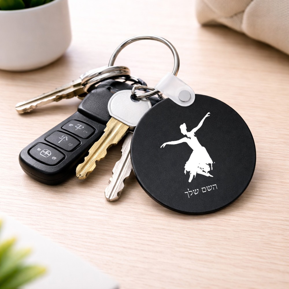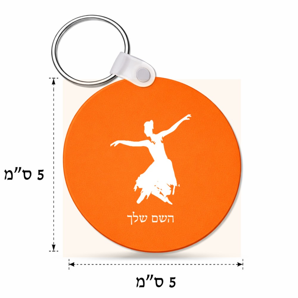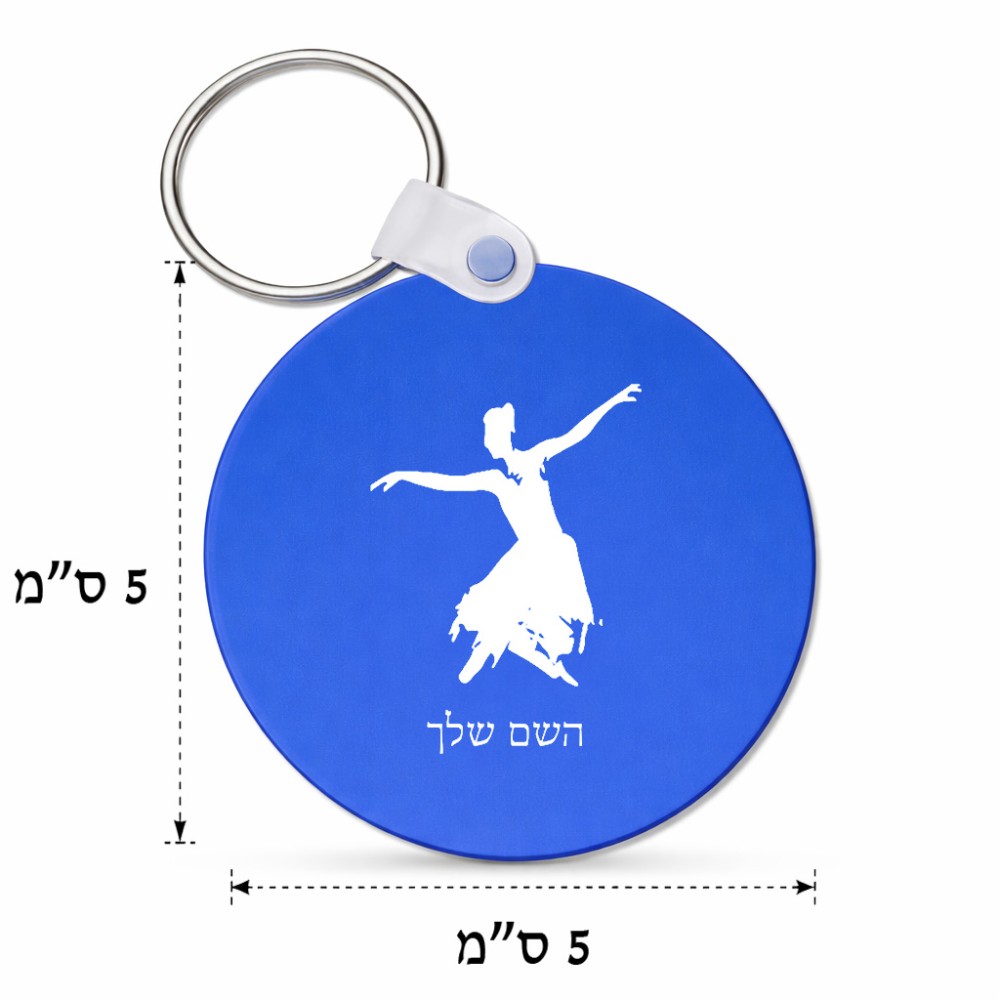 מחזיק מפתחות בצורת עיגול בעיצוב אישי עם השם שלך בעיצוב בלרינה גודל המחזיק 5 × 5 ס"מ. את השם המבוקש ניתן לציין בהזמנה, אם לא צויין אנחנו ניצור קשר לבירור.