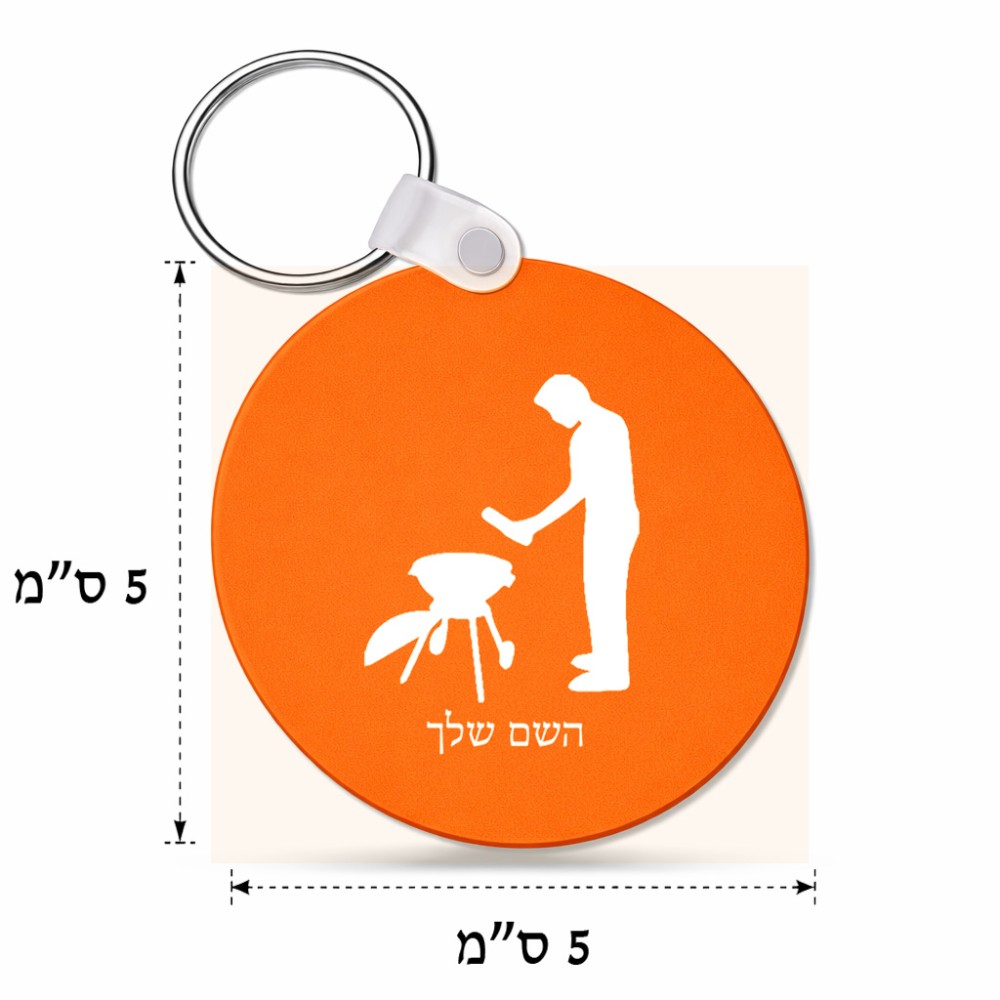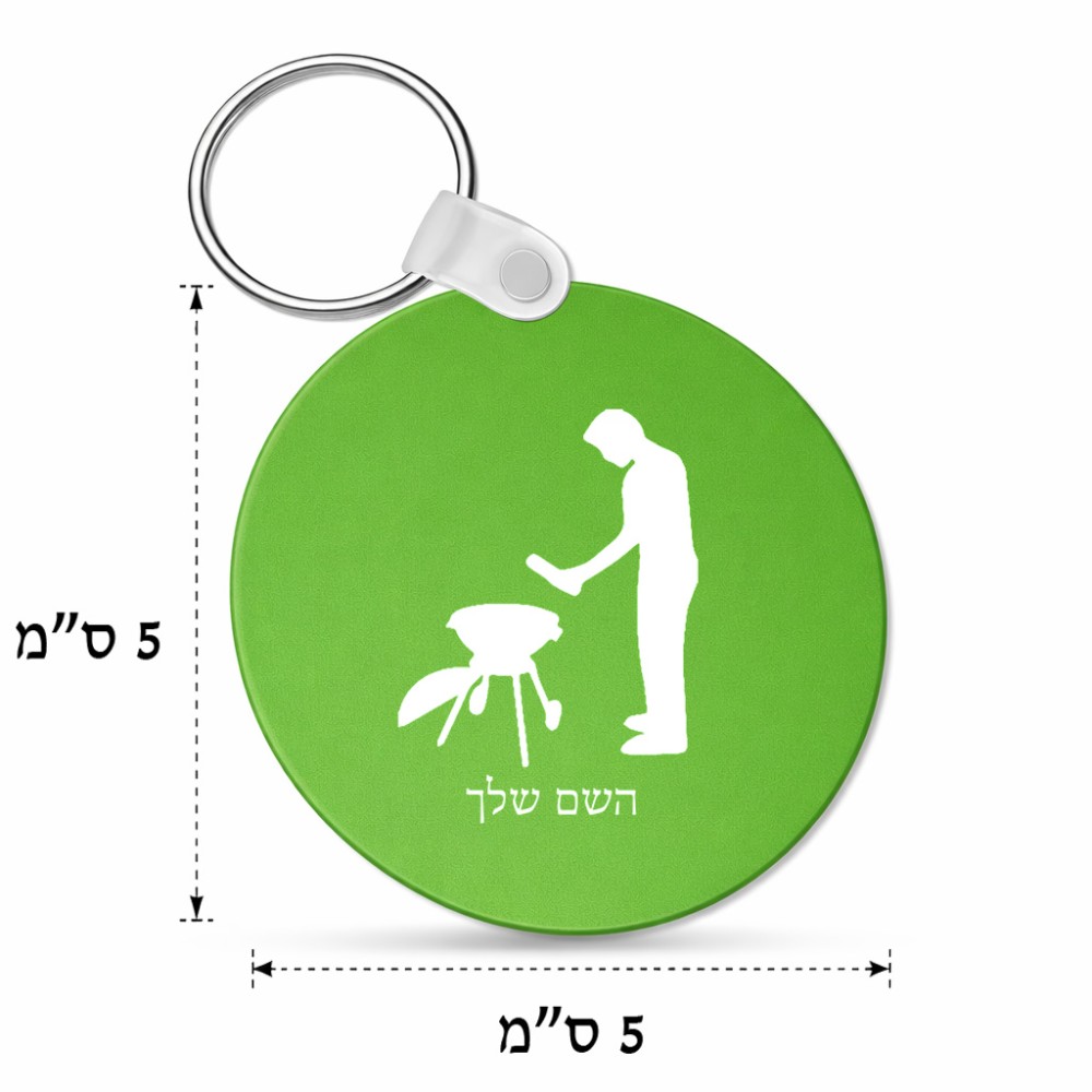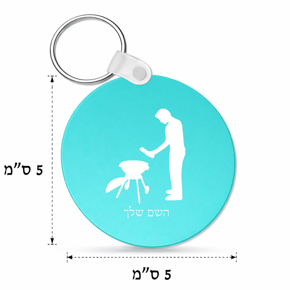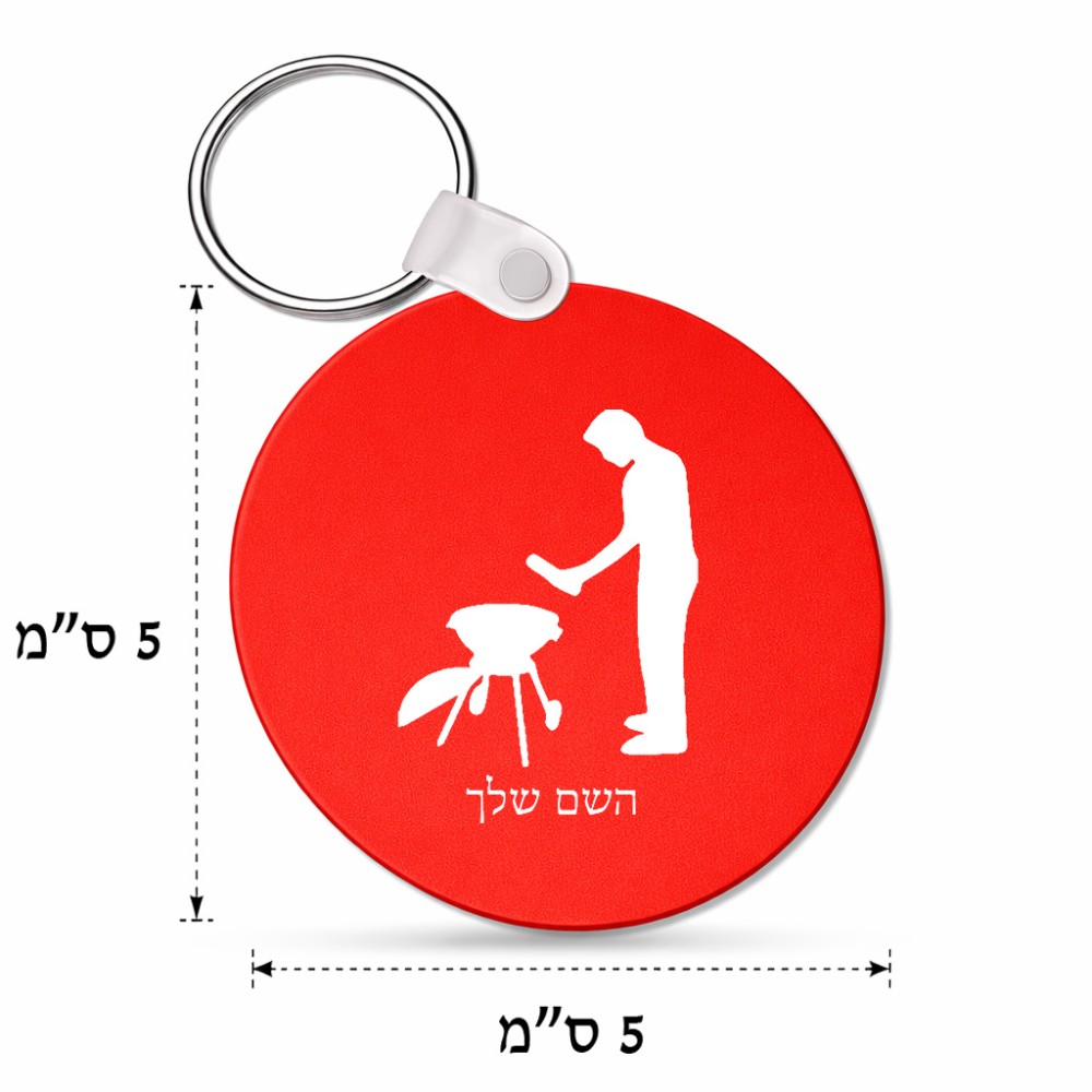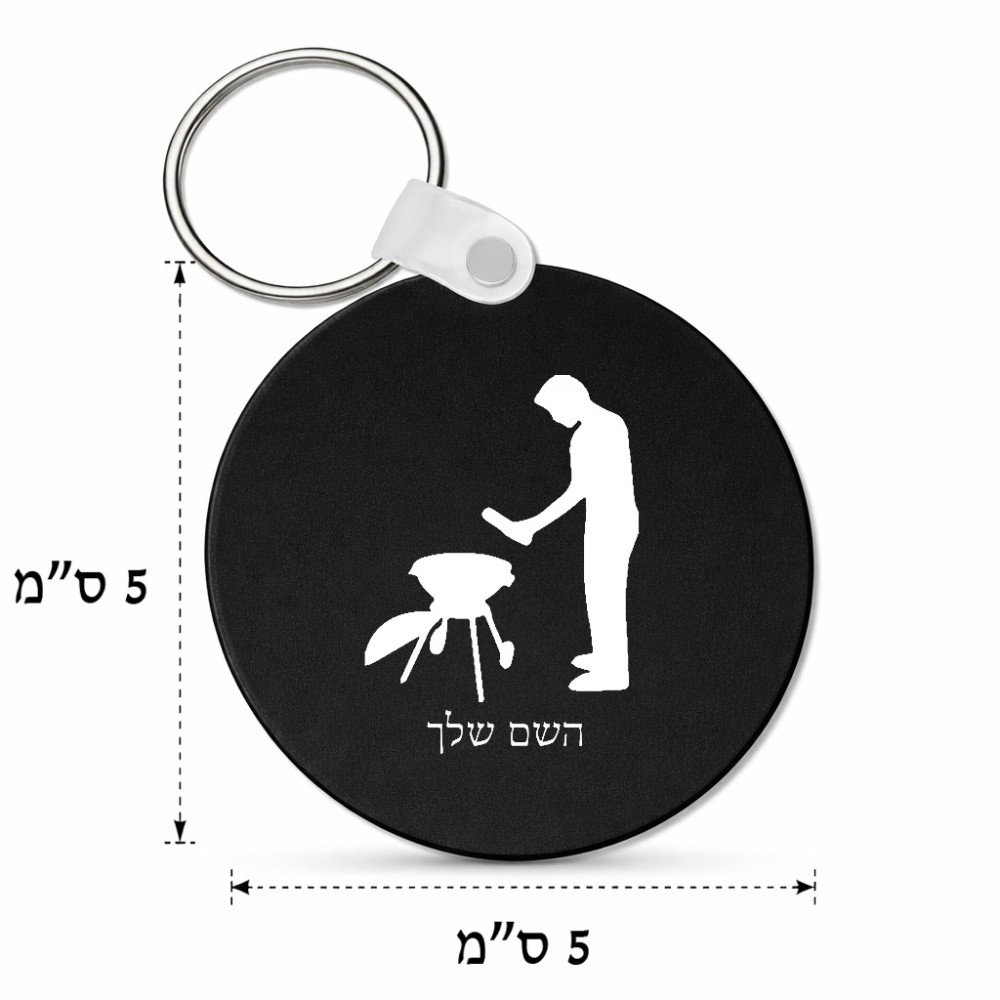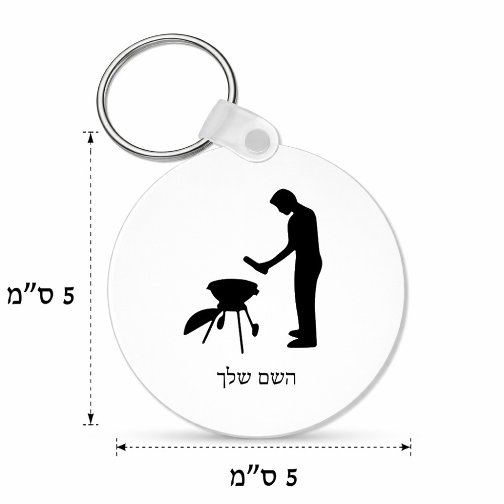 מחזיק מפתחות בצורת עיגול בעיצוב אישי עם השם שלך בעיצוב גריל ברביקיו גודל המחזיק 5 × 5 ס"מ. את השם המבוקש ניתן לציין בהזמנה, אם לא צויין אנחנו ניצור קשר לבירור.