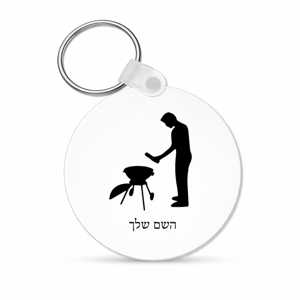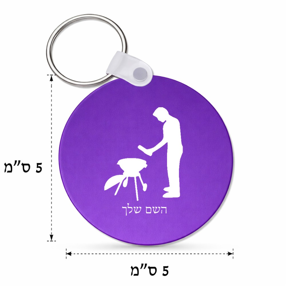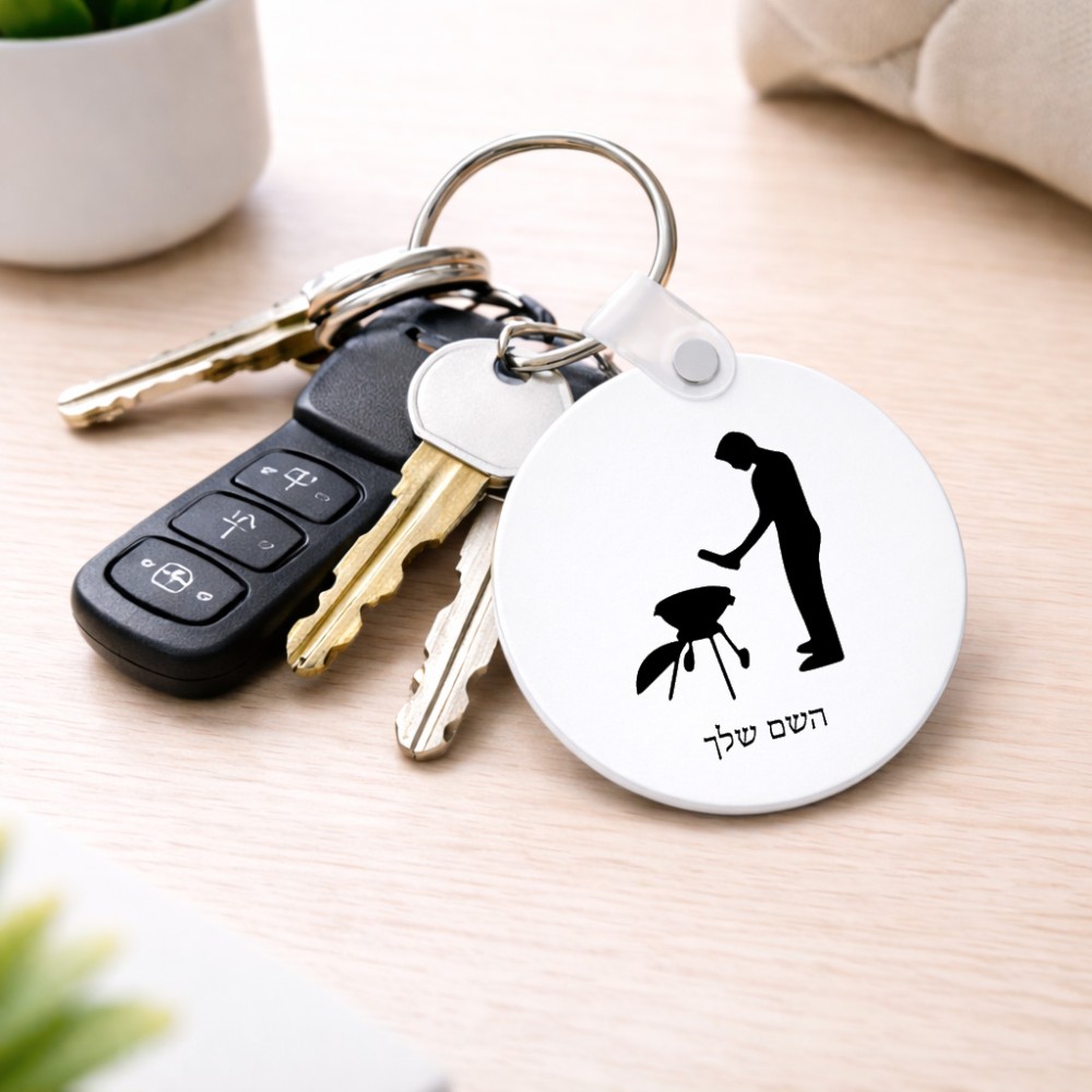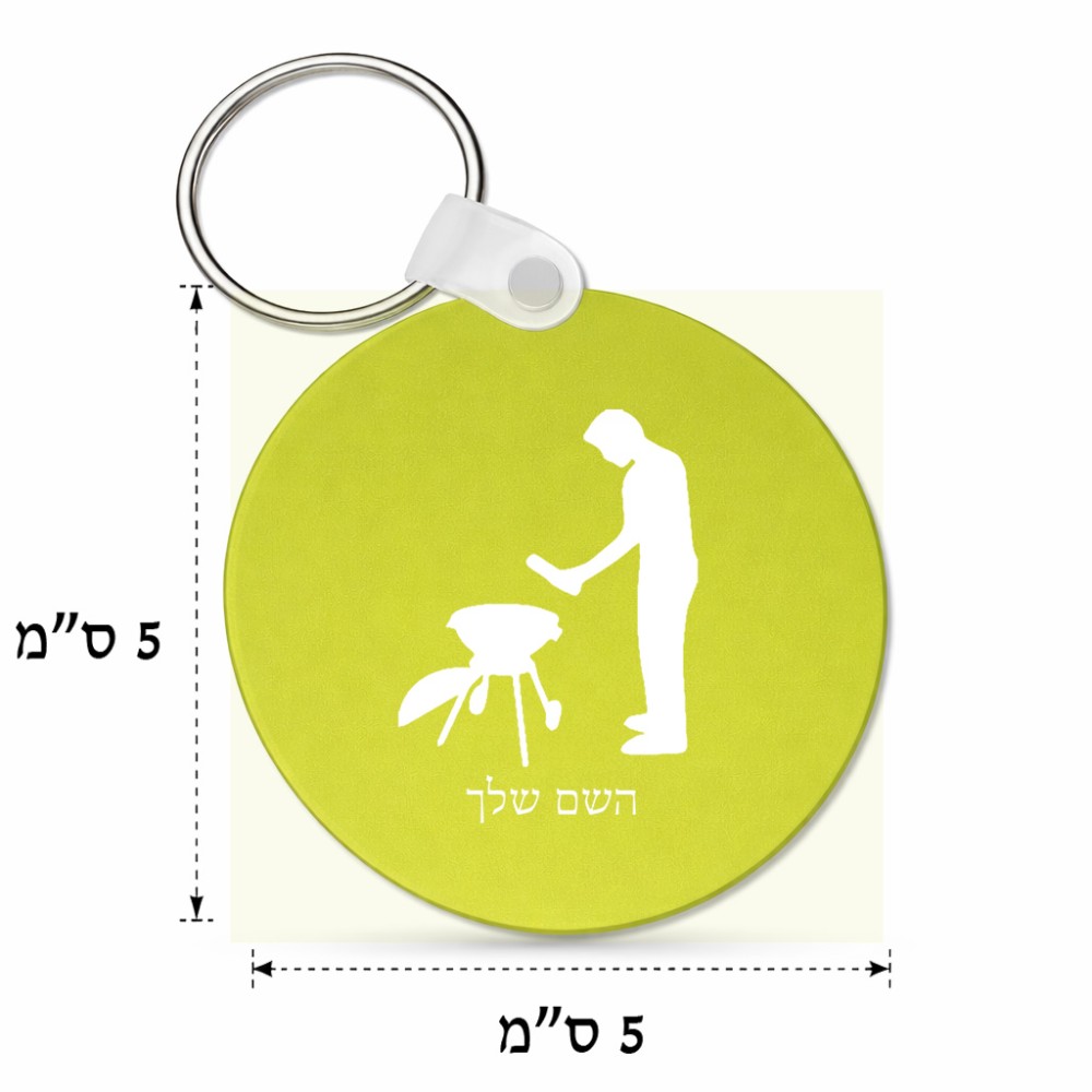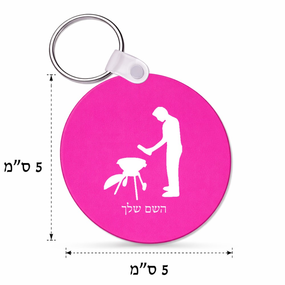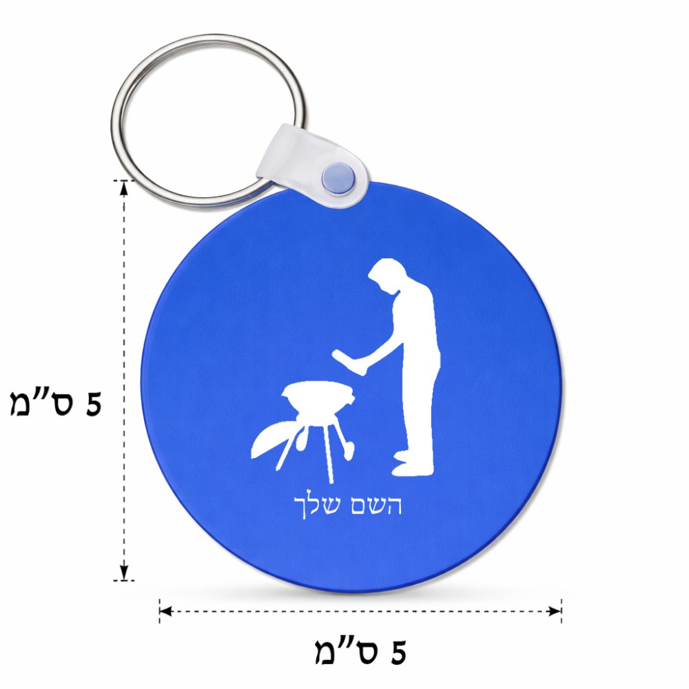 מחזיק מפתחות בצורת עיגול בעיצוב אישי עם השם שלך בעיצוב גריל ברביקיו גודל המחזיק 5 × 5 ס"מ. את השם המבוקש ניתן לציין בהזמנה, אם לא צויין אנחנו ניצור קשר לבירור.