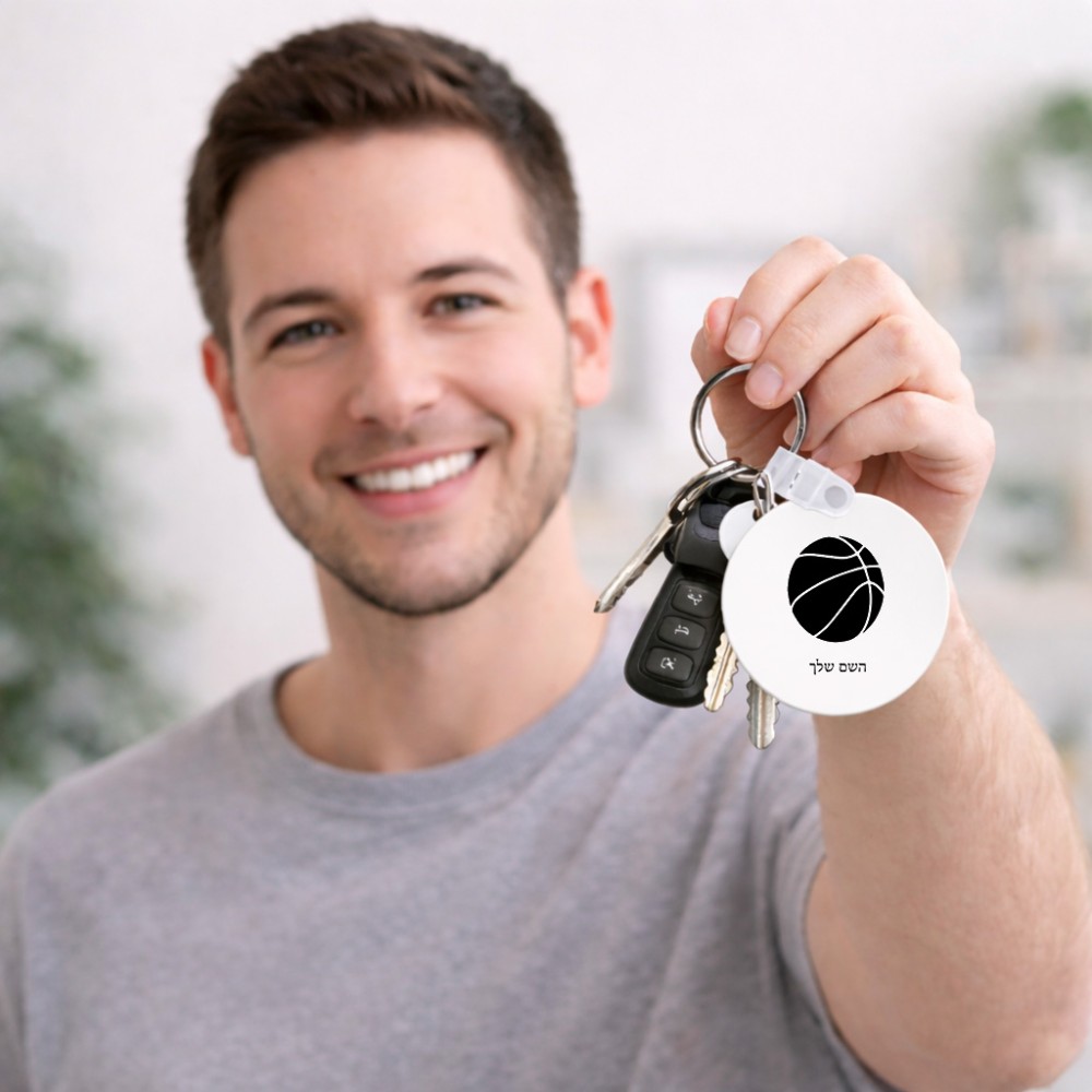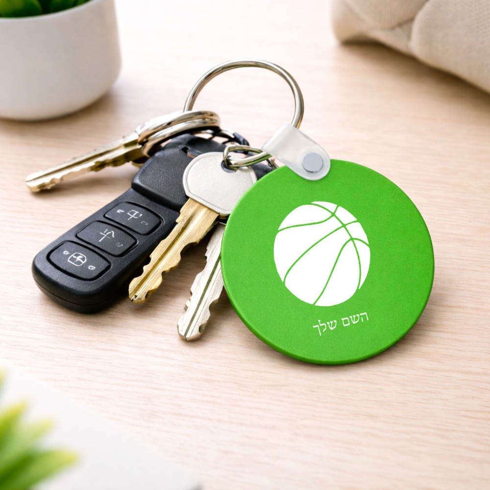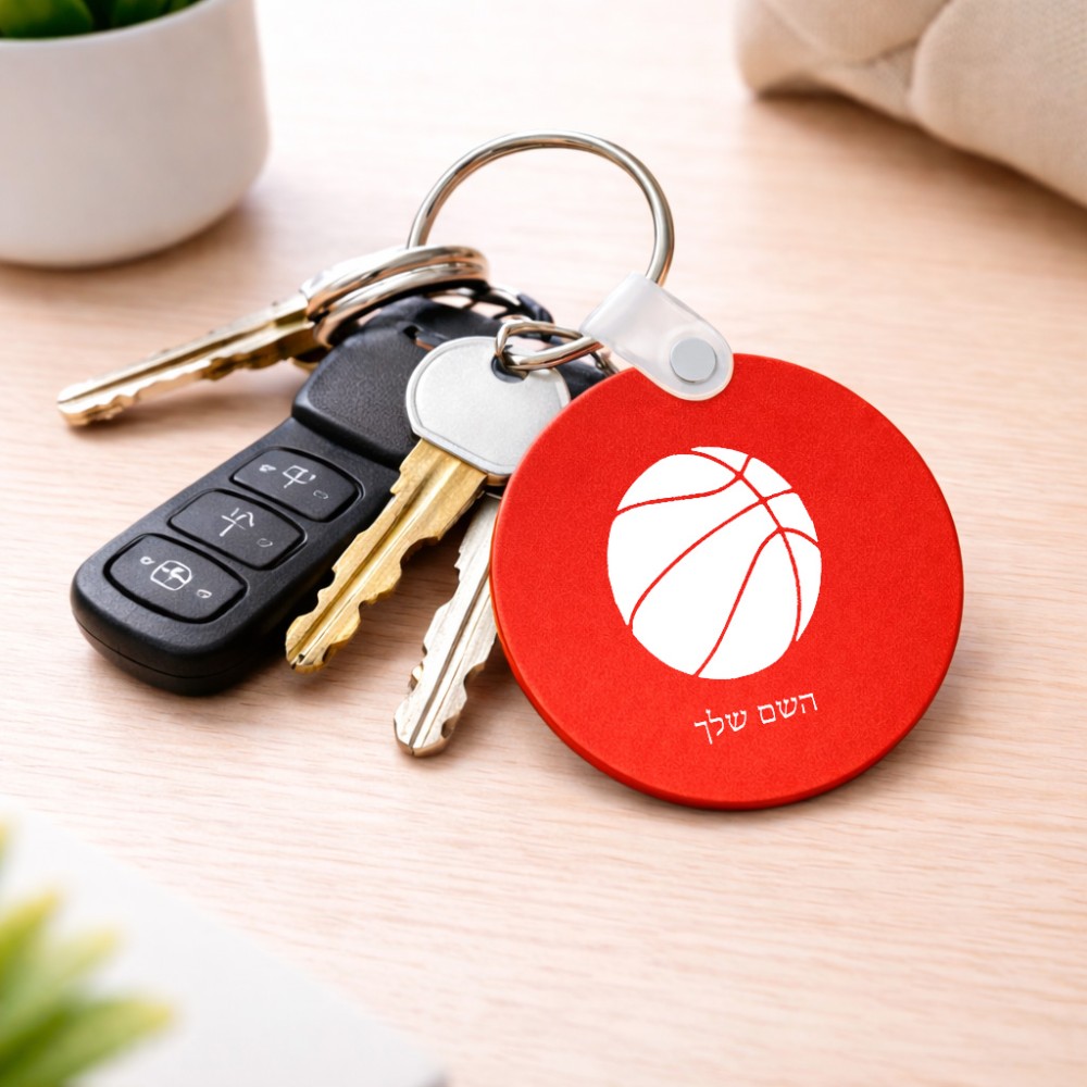 מחזיק מפתחות בצורת עיגול בעיצוב אישי עם השם שלך בעיצוב כדורסל גודל המחזיק 5 × 5 ס"מ. את השם המבוקש ניתן לציין בהזמנה, אם לא צויין אנחנו ניצור קשר לבירור.