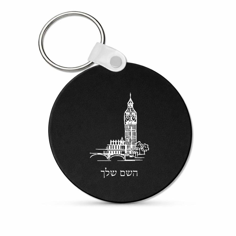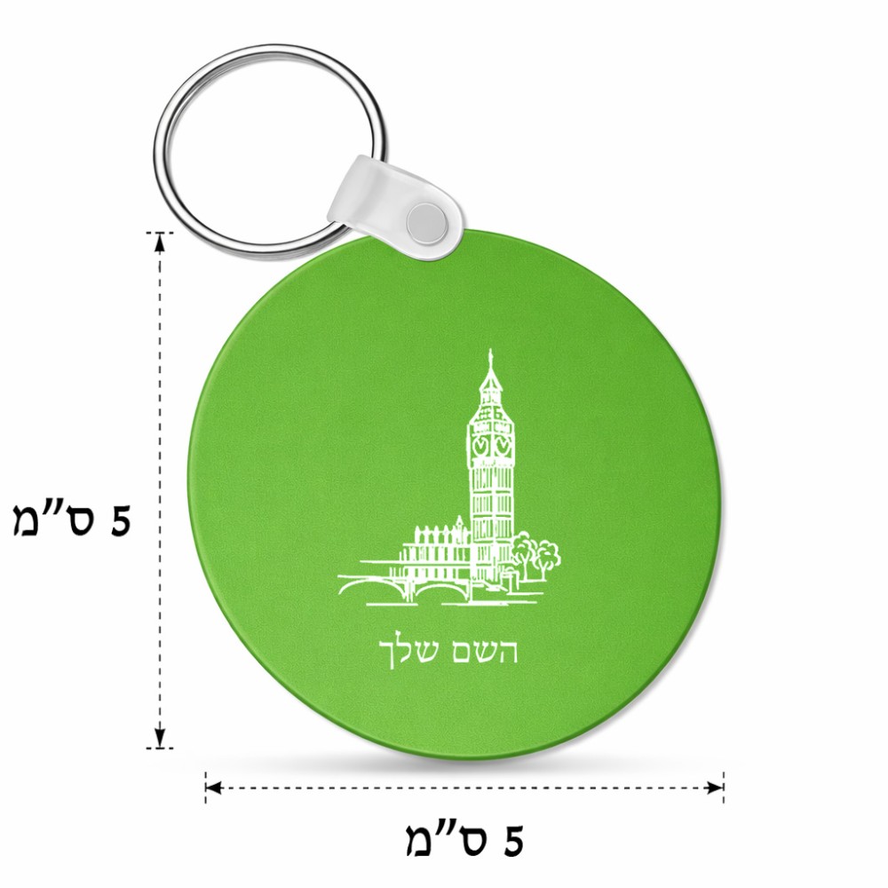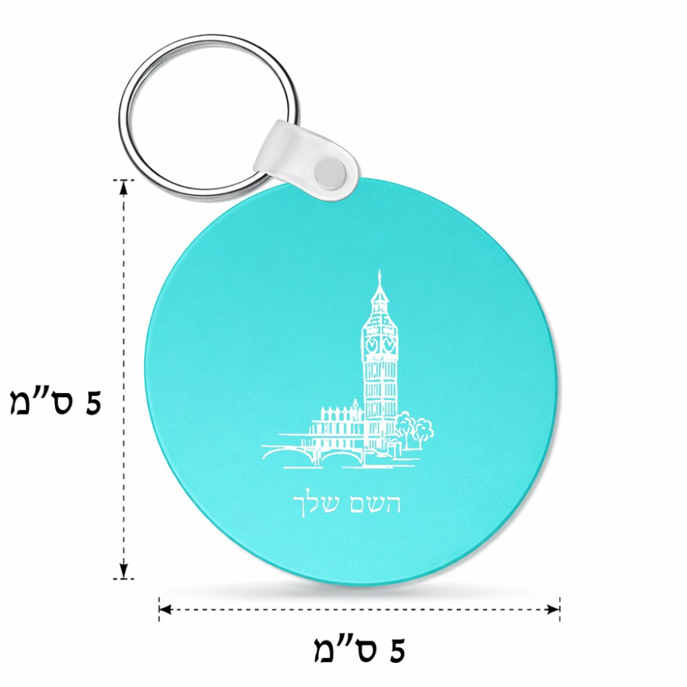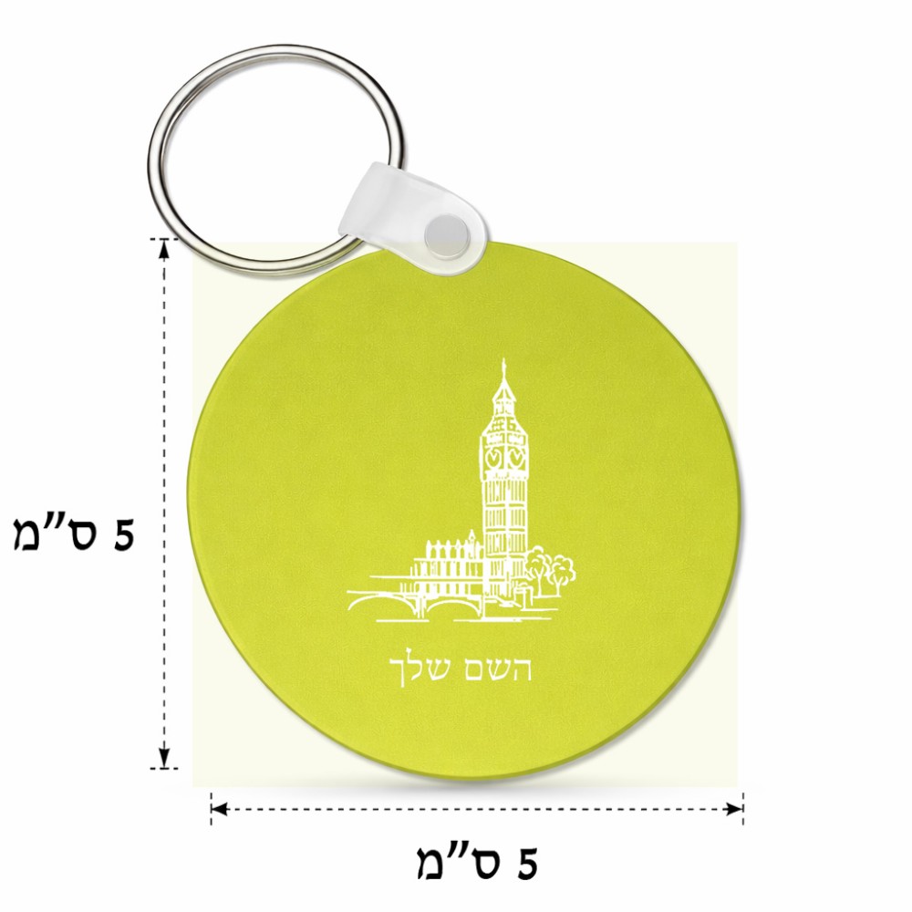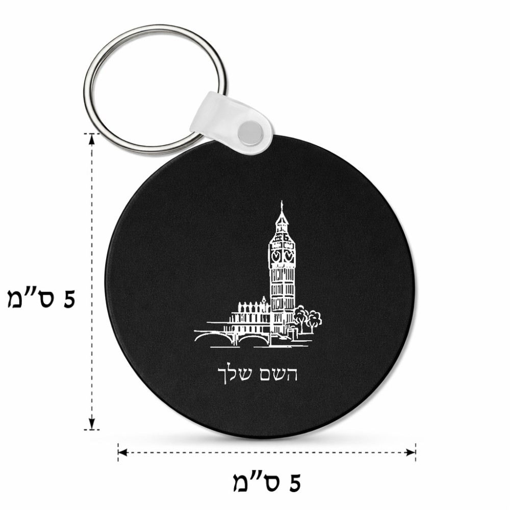 מחזיק מפתחות בצורת עיגול בעיצוב אישי עם השם שלך בעיצוב ביג בן גודל המחזיק 5 × 5 ס"מ. את השם המבוקש ניתן לציין בהזמנה, אם לא צויין אנחנו ניצור קשר לבירור.
