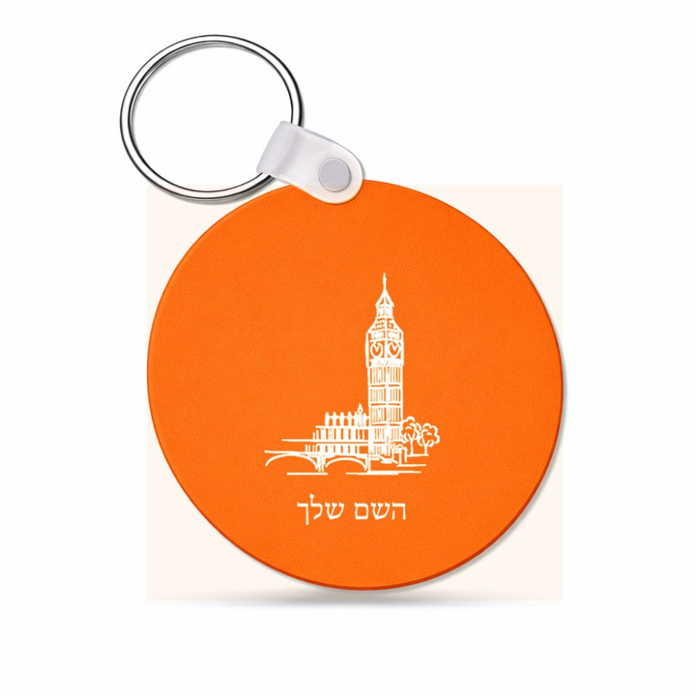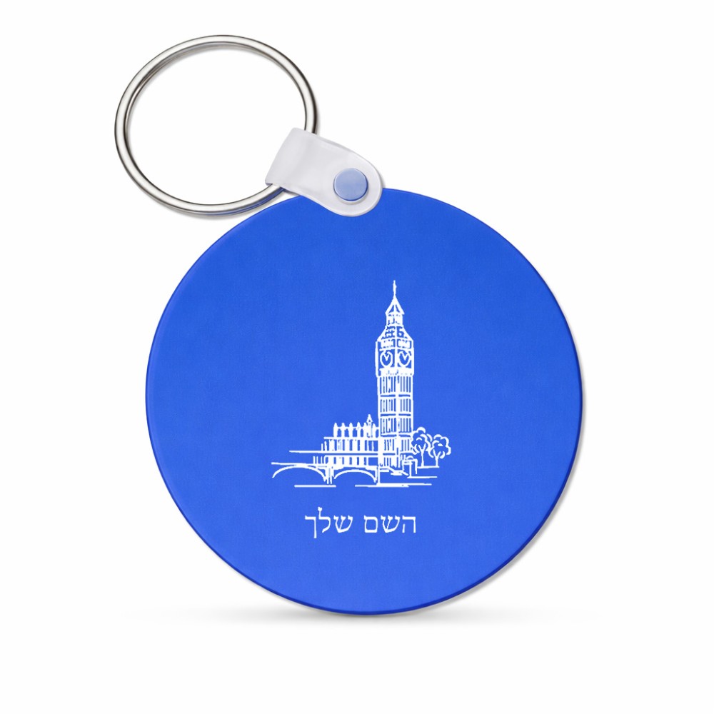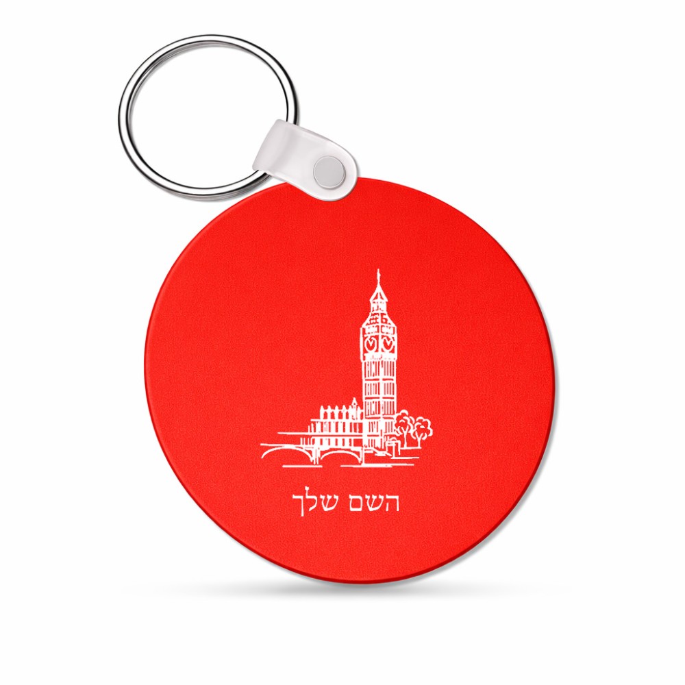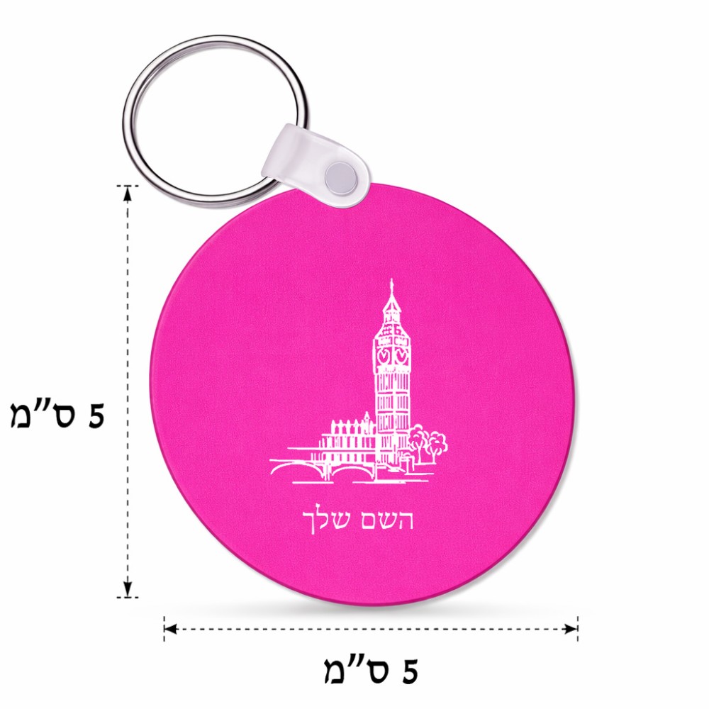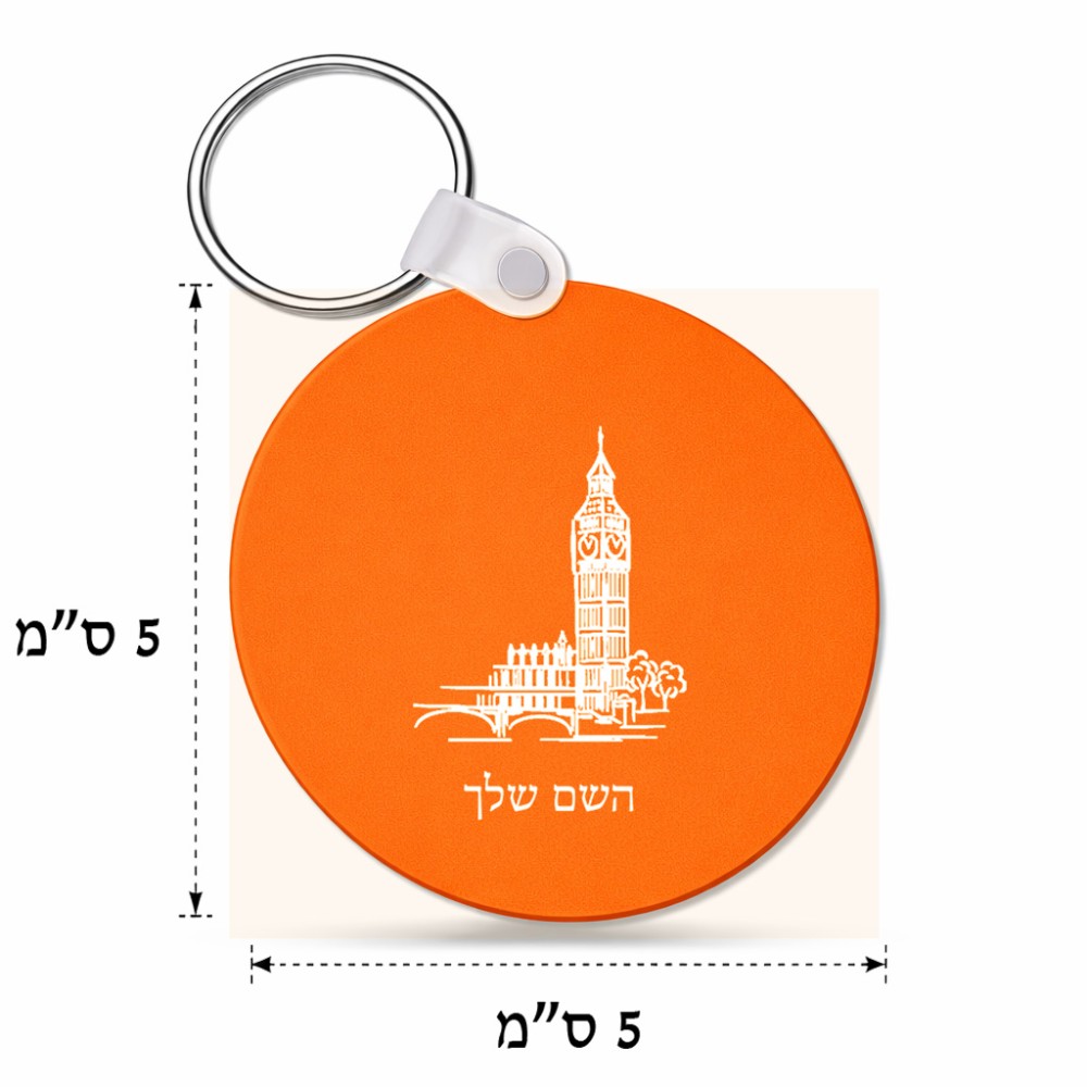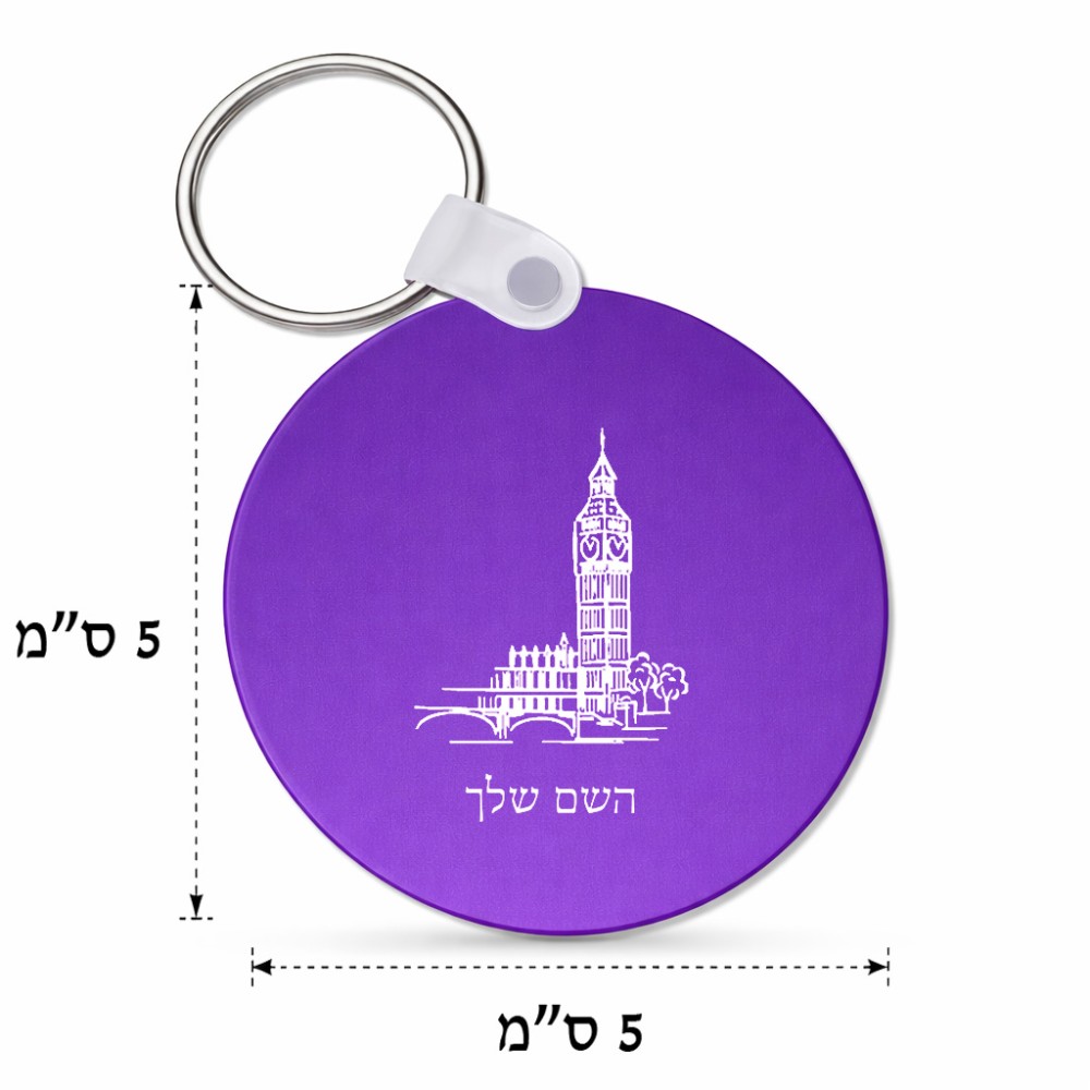 מחזיק מפתחות בצורת עיגול בעיצוב אישי עם השם שלך בעיצוב ביג בן גודל המחזיק 5 × 5 ס"מ. את השם המבוקש ניתן לציין בהזמנה, אם לא צויין אנחנו ניצור קשר לבירור.