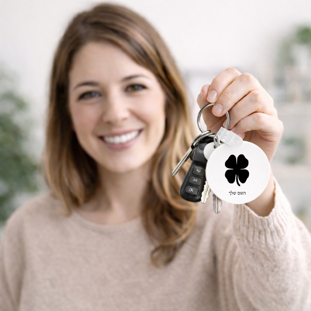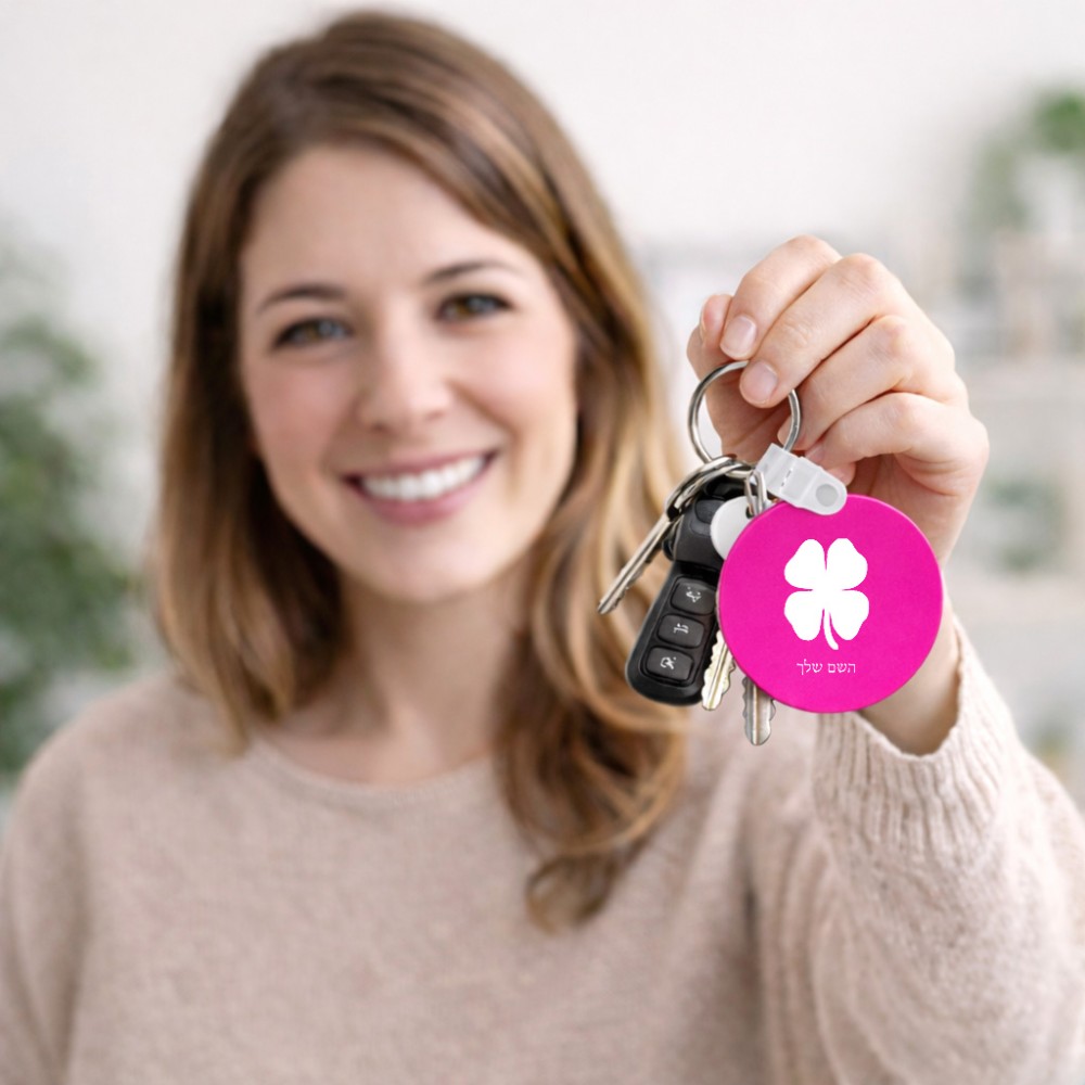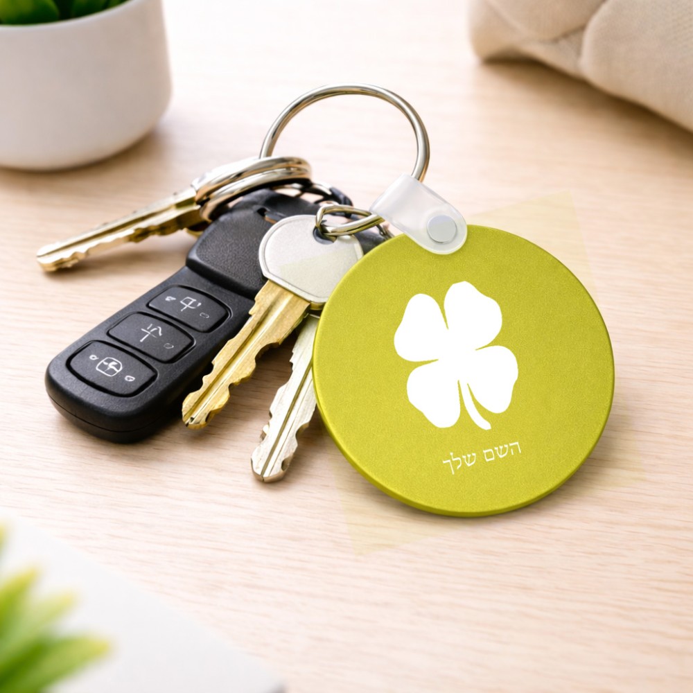 מחזיק מפתחות בצורת עיגול בעיצוב אישי עם השם שלך בעיצוב קלבר גודל המחזיק 5 × 5 ס"מ. את השם המבוקש ניתן לציין בהזמנה, אם לא צויין אנחנו ניצור קשר לבירור.