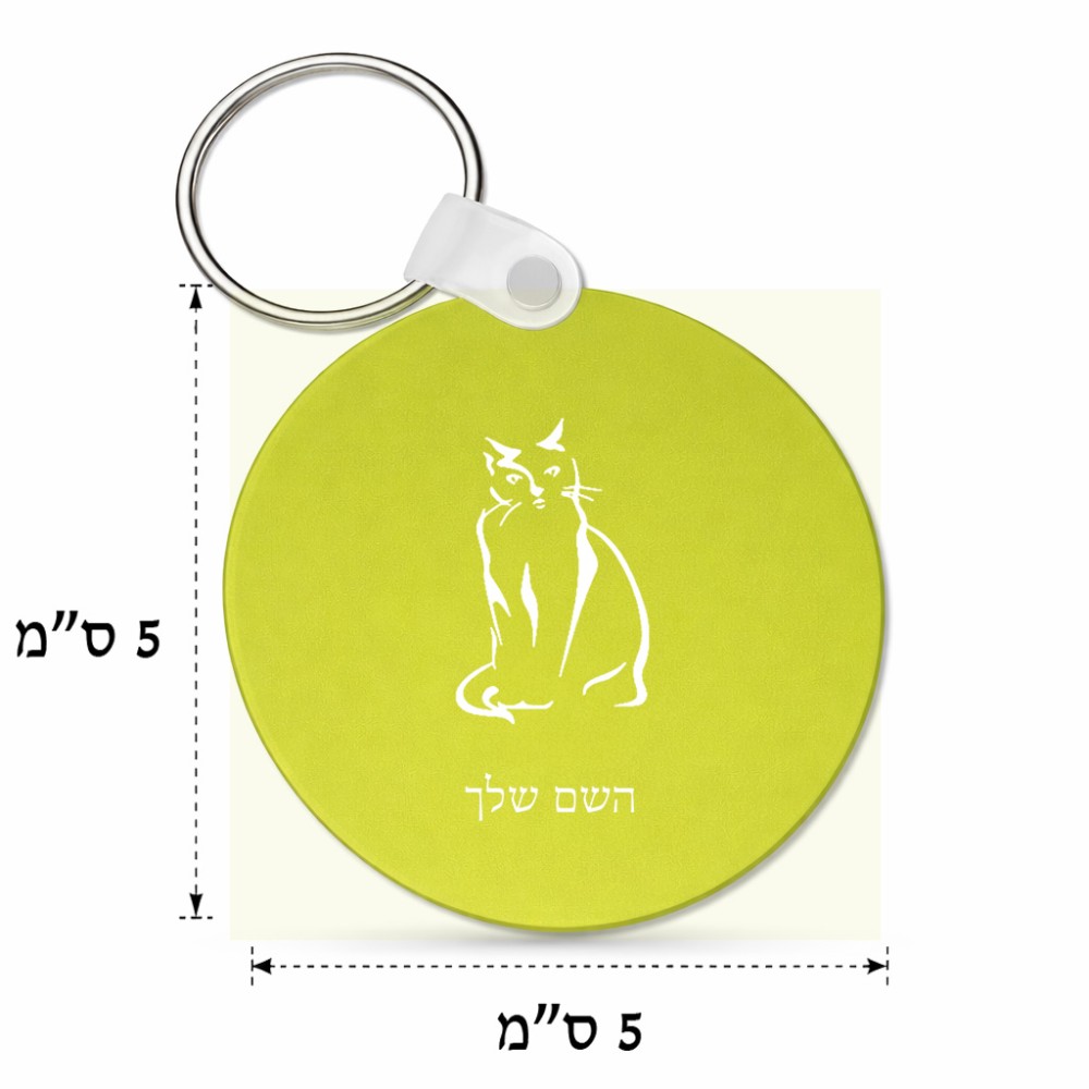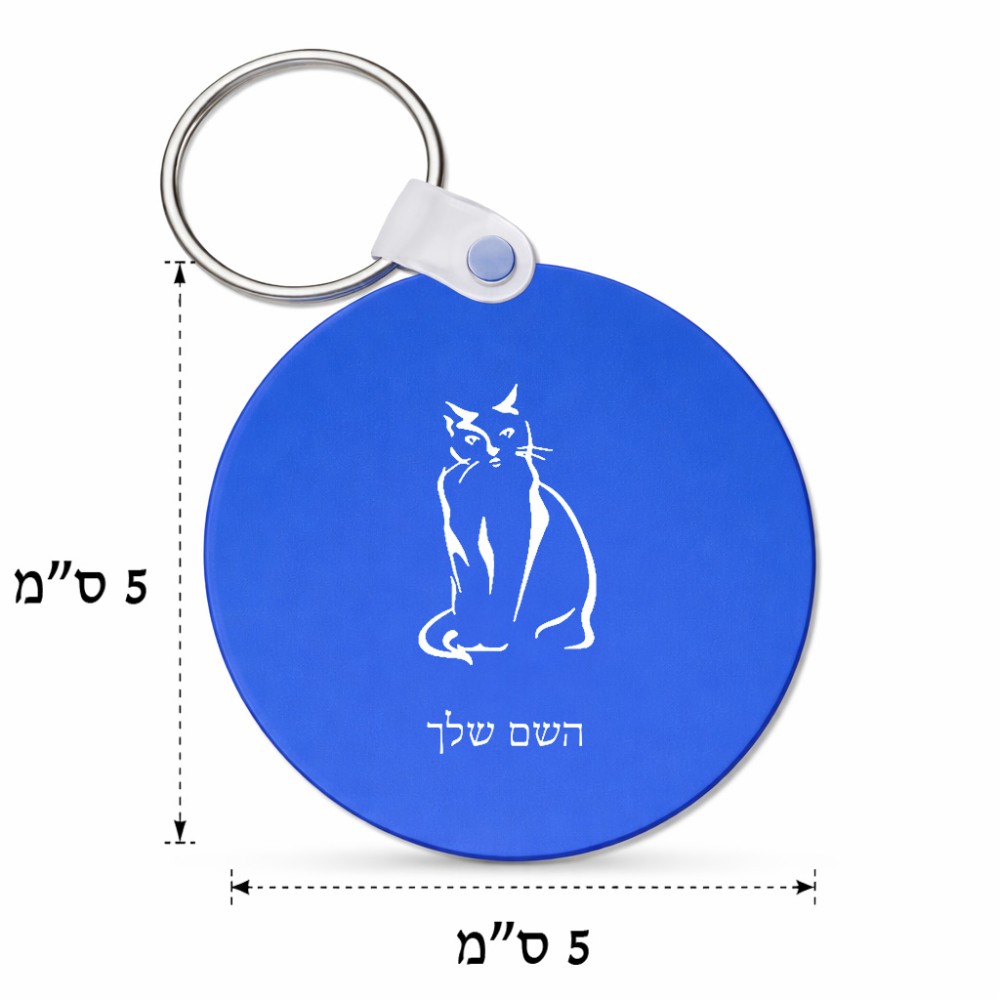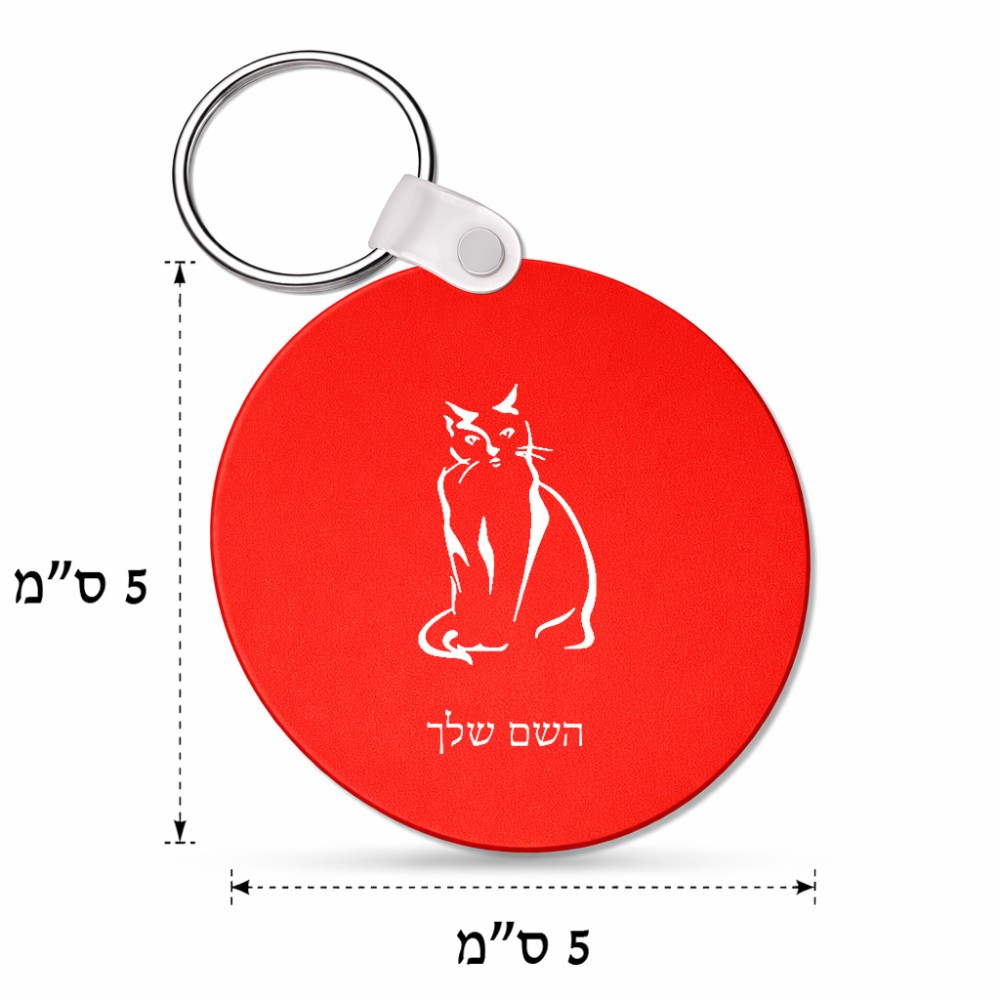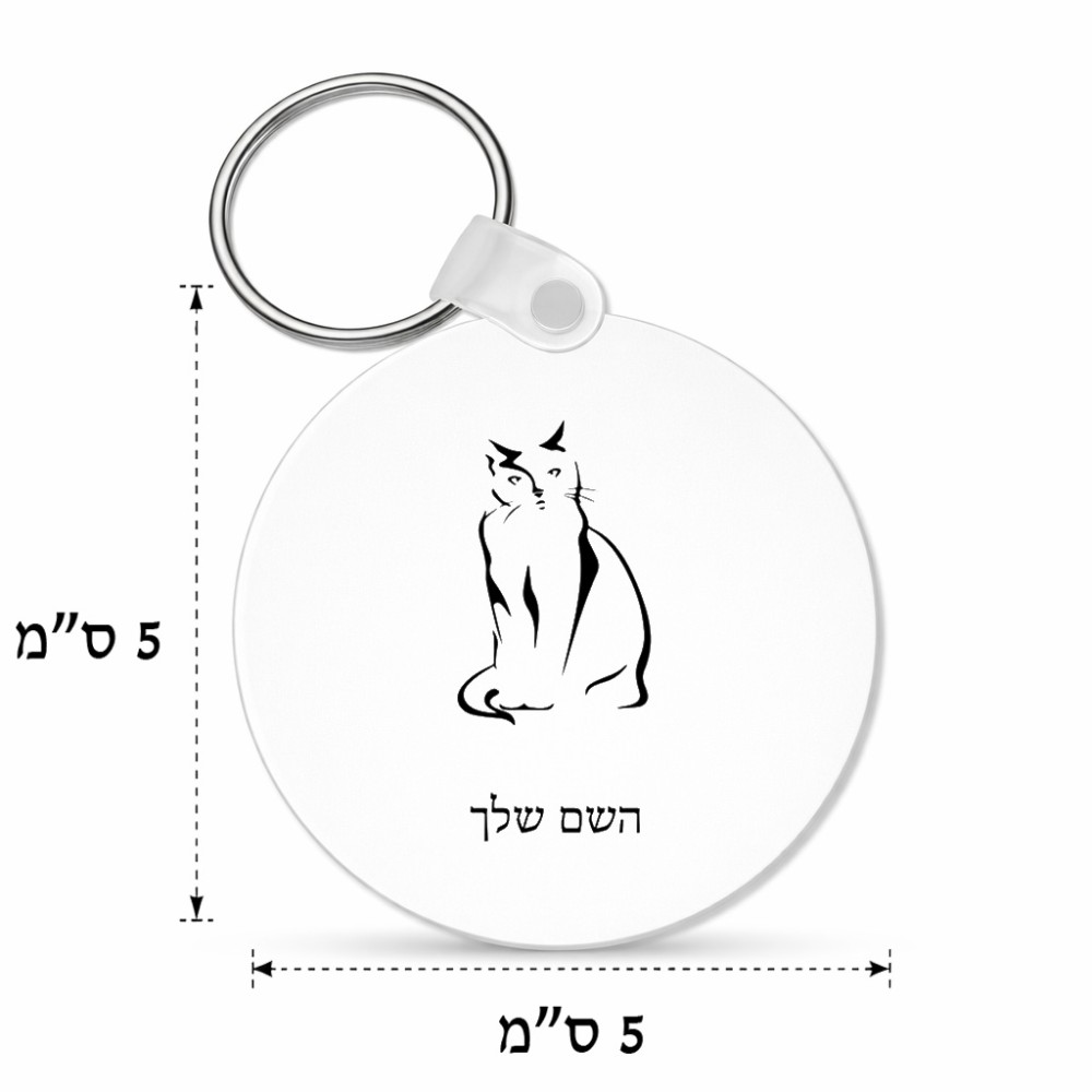 מחזיק מפתחות בצורת עיגול בעיצוב אישי עם השם שלך בעיצוב חתול גודל המחזיק 5 × 5 ס"מ. את השם המבוקש ניתן לציין בהזמנה, אם לא צויין אנחנו ניצור קשר לבירור.