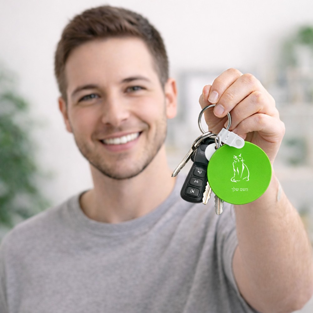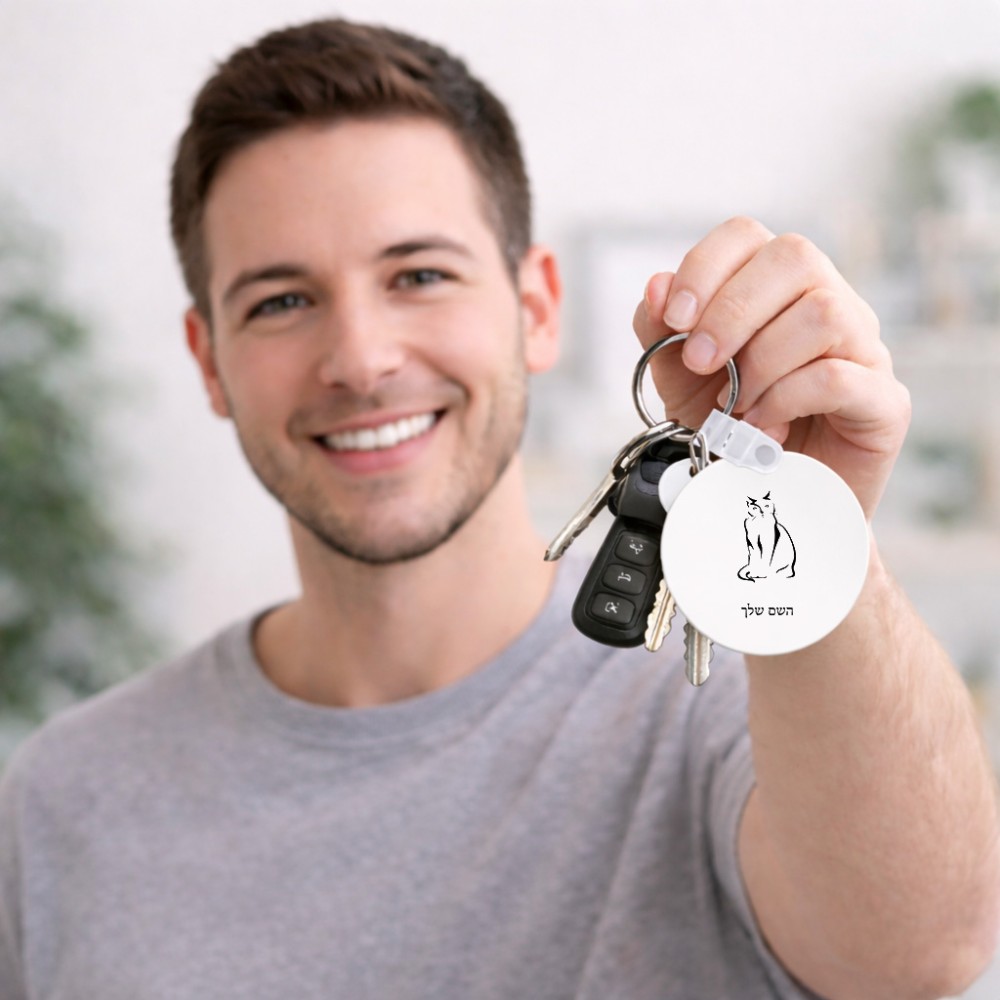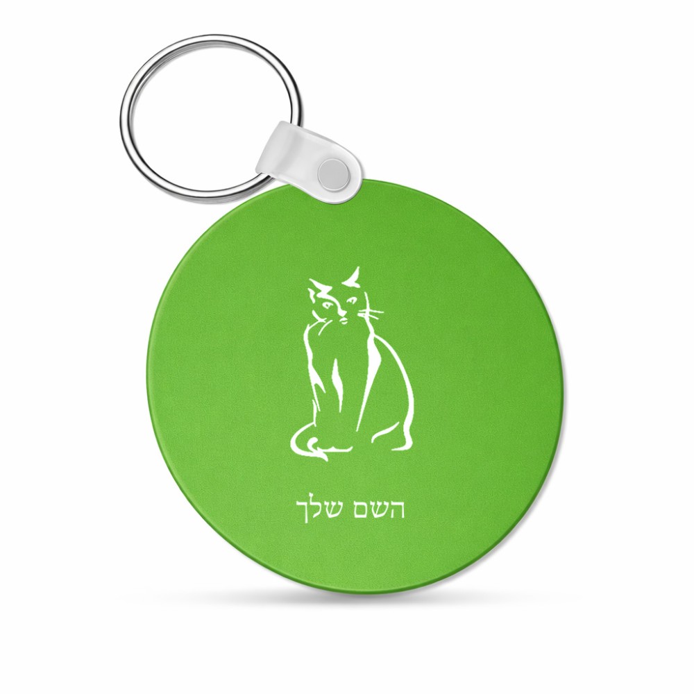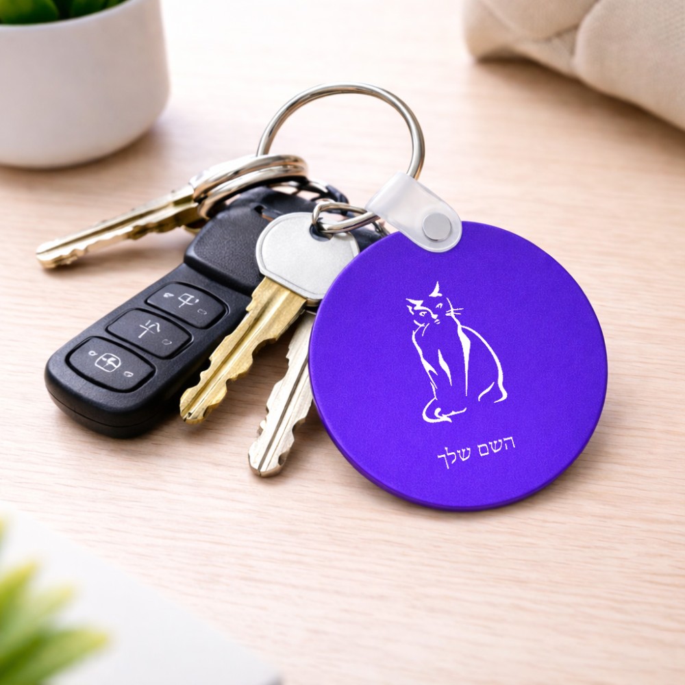 מחזיק מפתחות בצורת עיגול בעיצוב אישי עם השם שלך בעיצוב חתול גודל המחזיק 5 × 5 ס"מ. את השם המבוקש ניתן לציין בהזמנה, אם לא צויין אנחנו ניצור קשר לבירור.