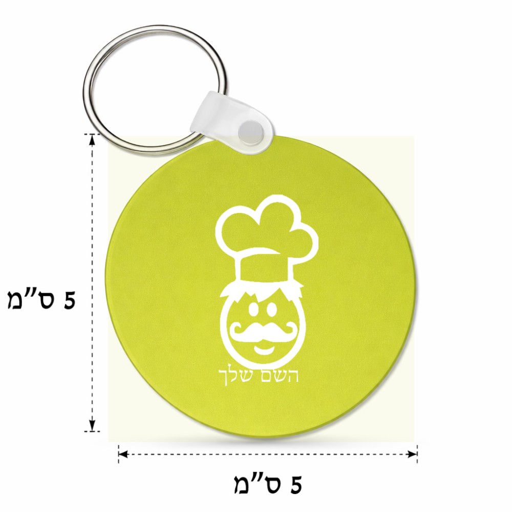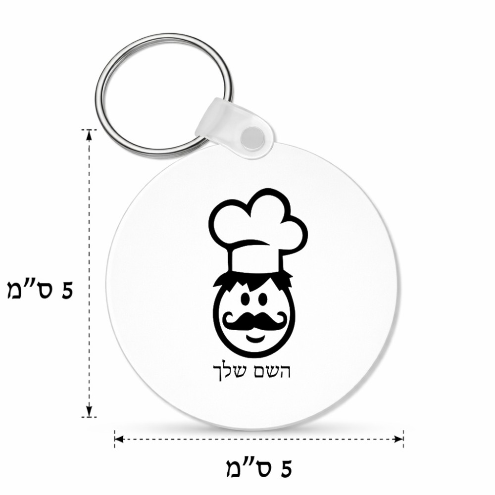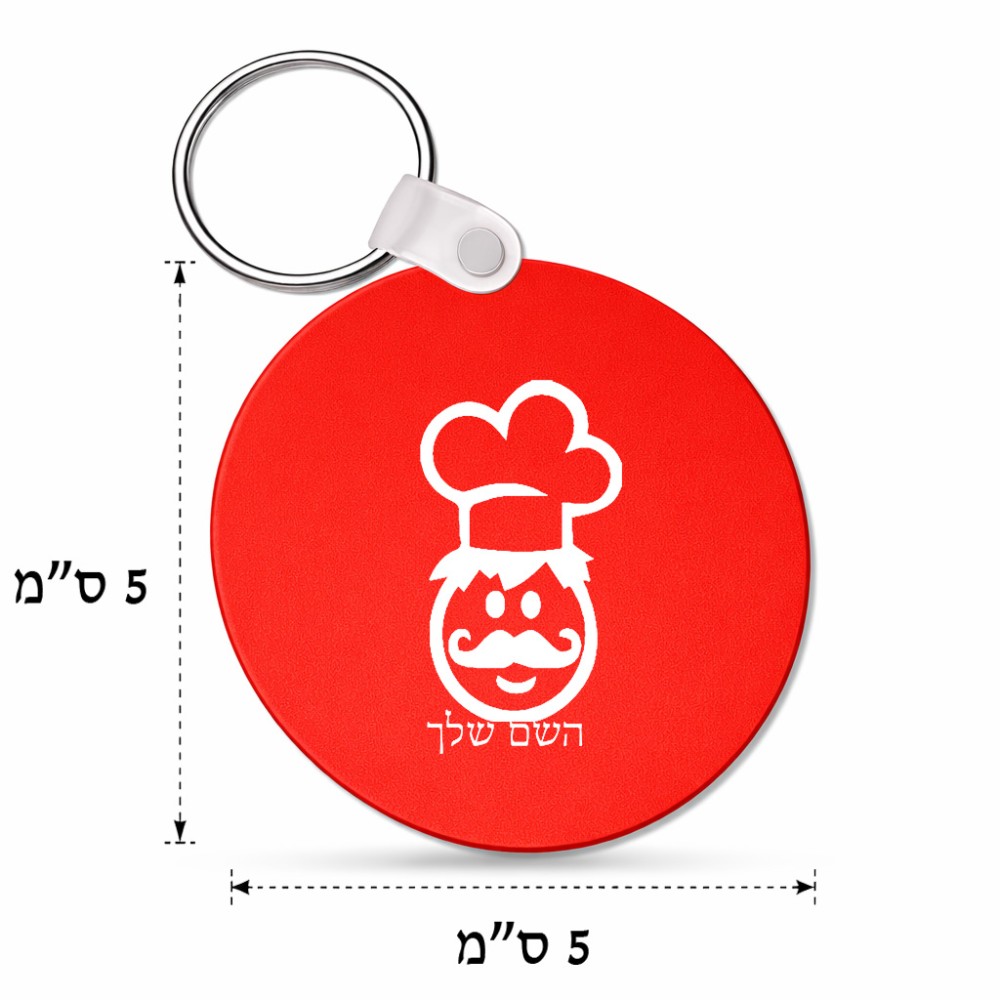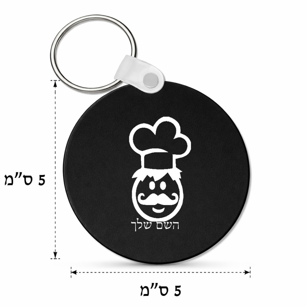 מחזיק מפתחות בצורת עיגול בעיצוב אישי עם השם שלך בעיצוב שף גודל המחזיק 5 × 5 ס"מ. את השם המבוקש ניתן לציין בהזמנה, אם לא צויין אנחנו ניצור קשר לבירור.