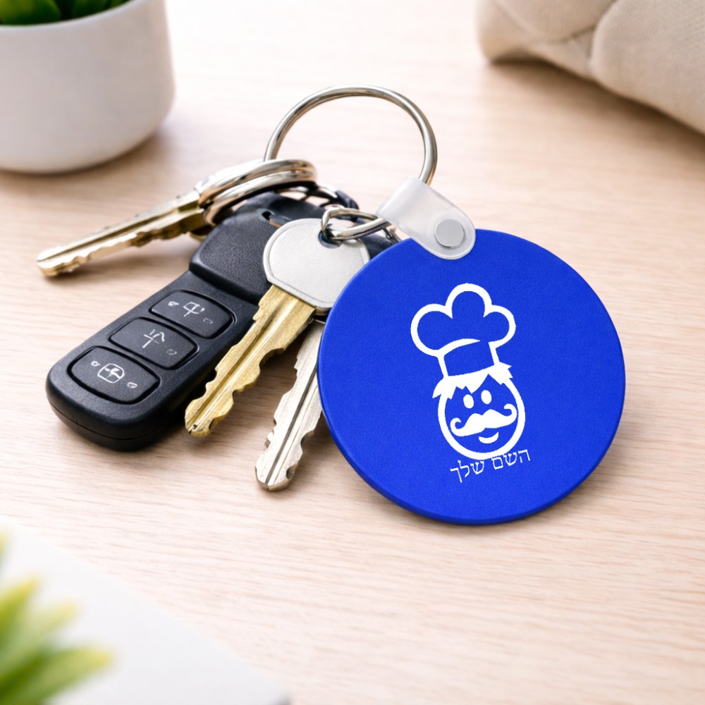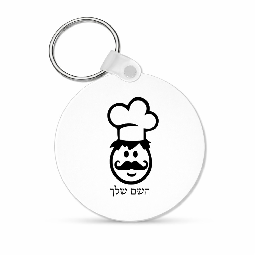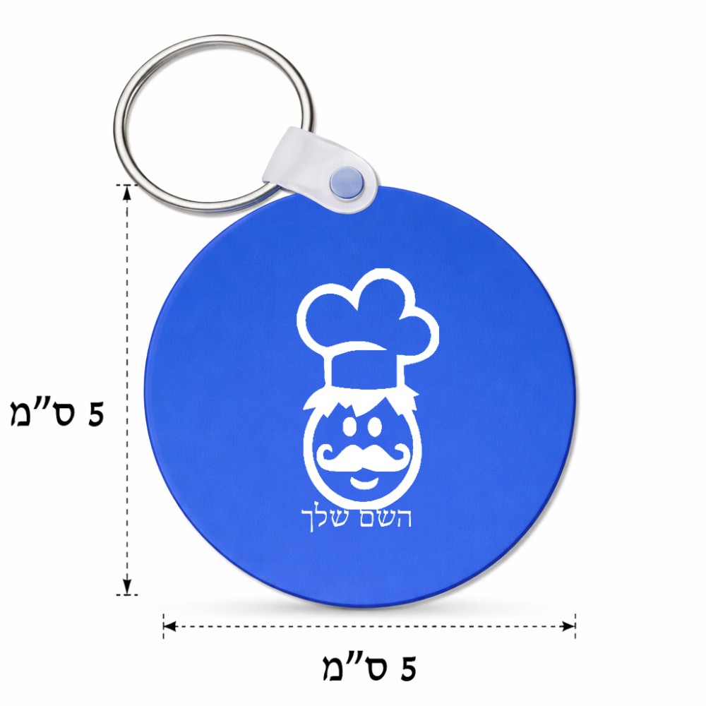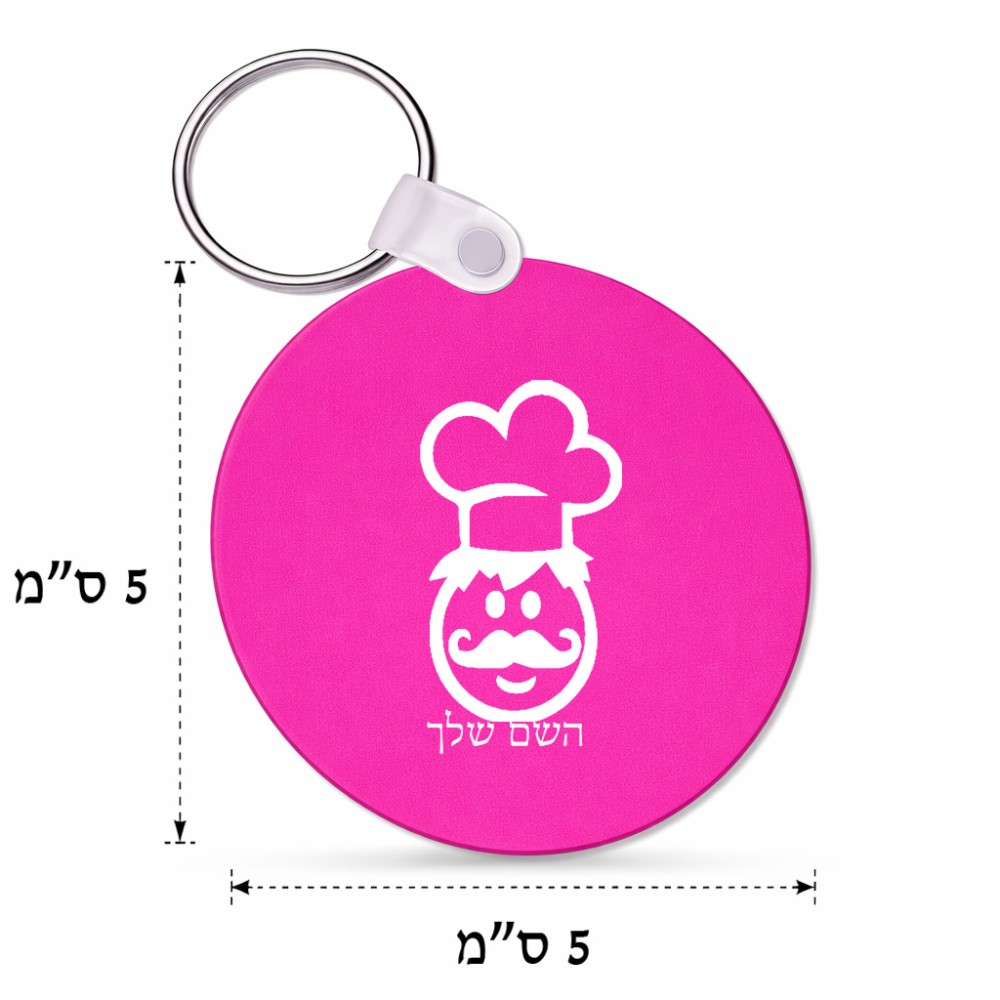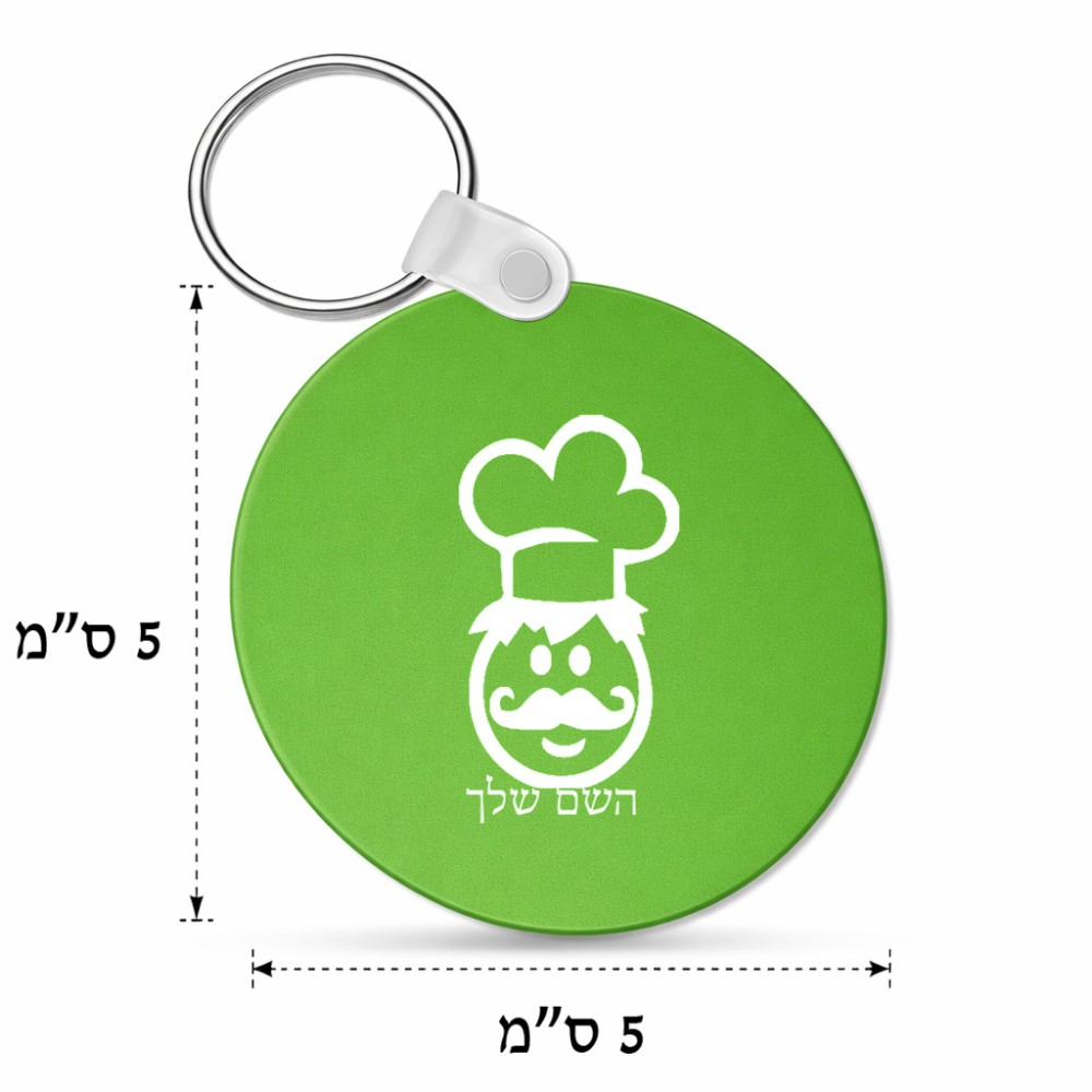 מחזיק מפתחות בצורת עיגול בעיצוב אישי עם השם שלך בעיצוב שף גודל המחזיק 5 × 5 ס"מ. את השם המבוקש ניתן לציין בהזמנה, אם לא צויין אנחנו ניצור קשר לבירור.