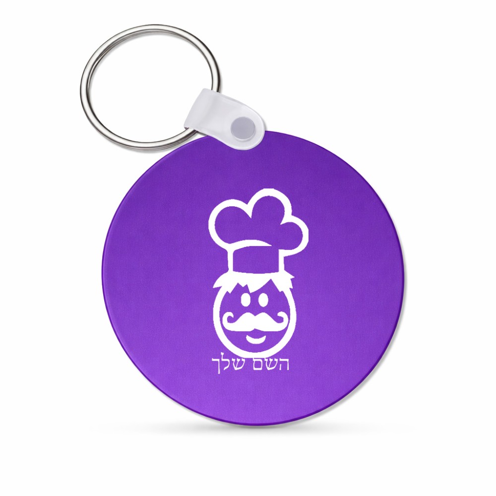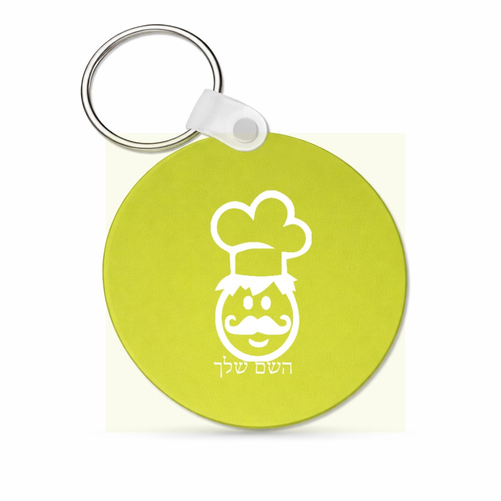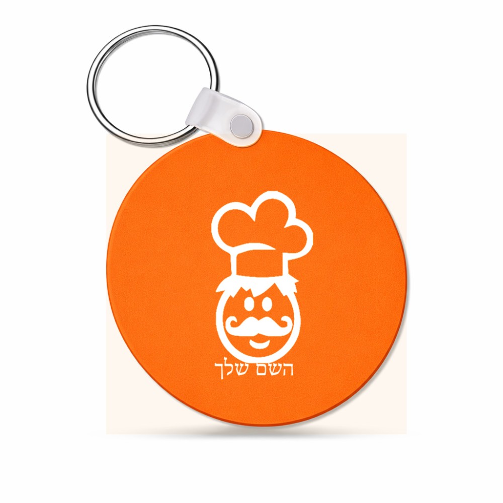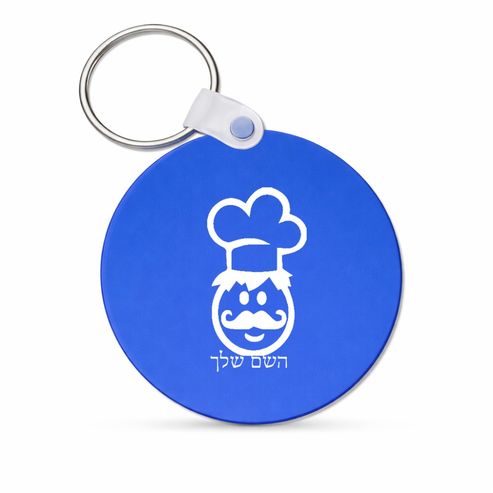 מחזיק מפתחות בצורת עיגול בעיצוב אישי עם השם שלך בעיצוב שף גודל המחזיק 5 × 5 ס"מ. את השם המבוקש ניתן לציין בהזמנה, אם לא צויין אנחנו ניצור קשר לבירור.